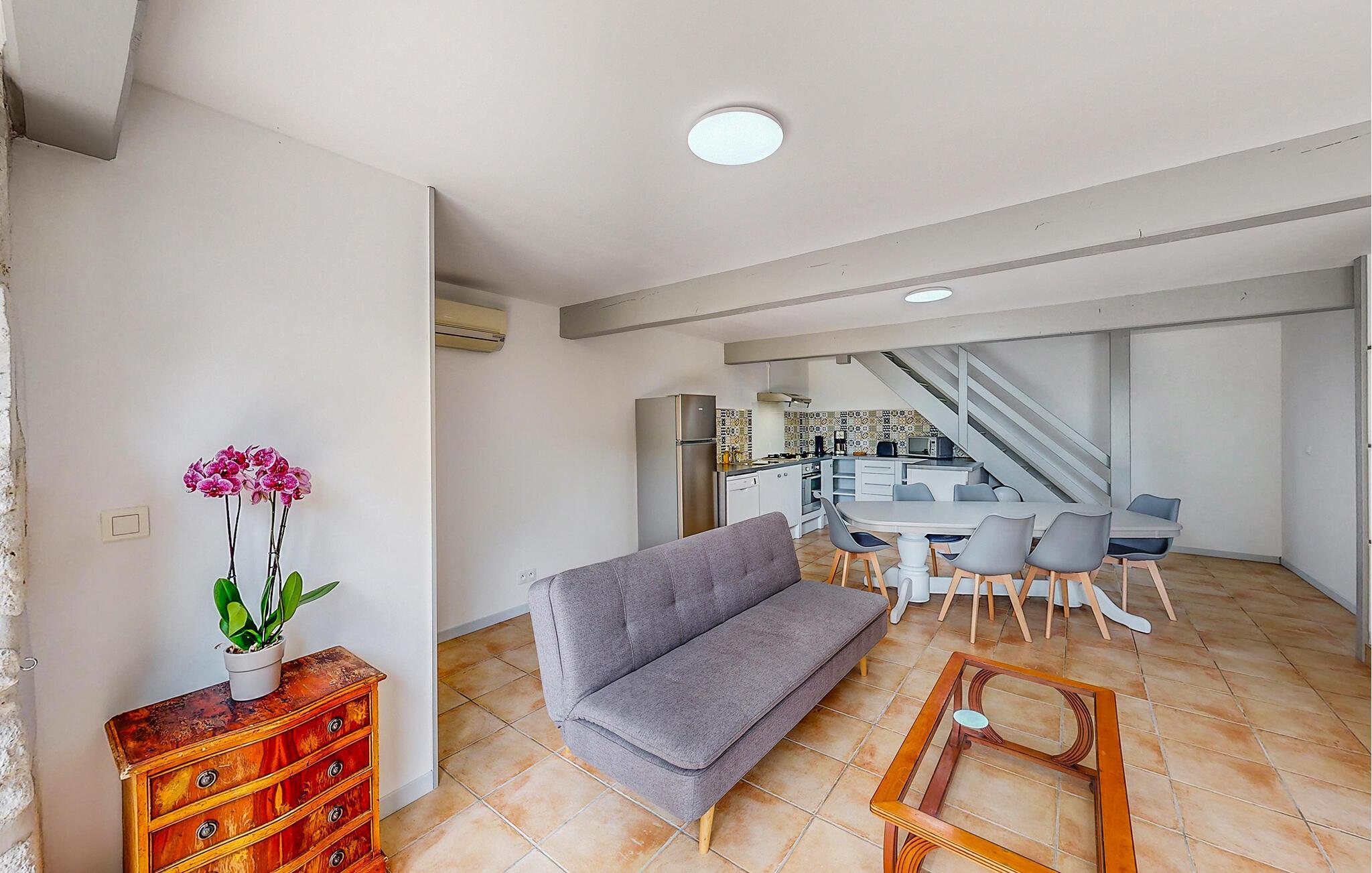 Tillbringa din semester i detta moderniserade stenhus och upplev en harmonisk blandning av traditionell charm och modern komfort. De ljusa, rymliga rummen skapar en inbjudande atmosfär som är idealisk för en avkopplande semester. De eleganta möblerna och de öppna planlösningarna ger en känsla av rymd och frihet.