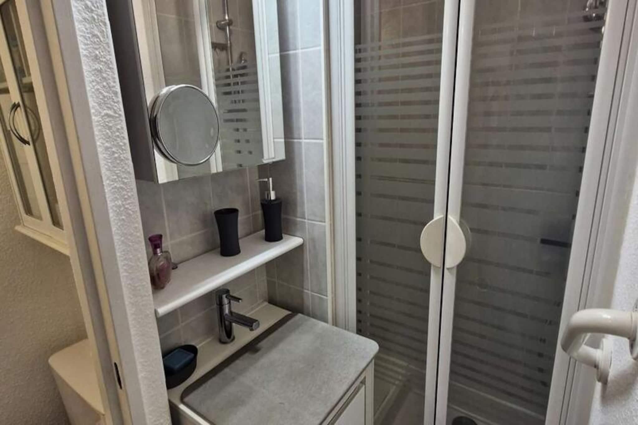 Vakna till det mjuka ljudet av vågor och soluppgångens gyllene nyanser från denna charmiga tvårumslägenhet, perfekt belägen bara 100 meter från stranden. Med sin balkong i österläge med fridfull havsutsikt är denna mysiga tillflyktsort ett perfekt val för par eller små familjer som söker en lugn kustflykt. Oavsett om du smuttar på ditt morgonkaffe eller varvar ner efter en dags utforskande, erbjuder balkongen den perfekta platsen att njuta av medelhavsatmosfären. \n\nInuti är lägenheten noggrant utformad för att maximera komfort och funktionalitet. Vardagsrummet har två bäddsoffor för enkla personer, medan det separata sovrummet har en bekväm dubbelsäng. Ett kompakt men välutrustat kök inkluderar elektrisk spishäll, ugn, mikrovågsugn och bordskylskåp, vilket säkerställer att du har allt som behövs för att laga läckra måltider. Moderna bekvämligheter som TV och värme ökar bekvämligheten, medan den privata parkeringsplatsen (#240) garanterar problemfri åtkomst under hela din vistelse. Lägenheten ligger på andra våningen med hiss och kombinerar praktiskhet med charm. \n\nOmgivningen är lika inbjudande, med en liten mataffär bara 50 meter bort för dina dagliga förnödenheter och stadens centrum en kort 900 meters promenad. Oavsett om du utforskar lokala butiker, äter på restauranger vid havet eller bara njuter av den orörda stranden, finns allt du behöver inom räckhåll. \n\nDenna förtjusande lägenhet erbjuder den perfekta blandningen av avkoppling och tillgänglighet, vilket gör den till ett utmärkt val för din nästa Medelhavssemester. Låt havets skönhet och regionens charm skapa oförglömliga minnen under din vistelse.