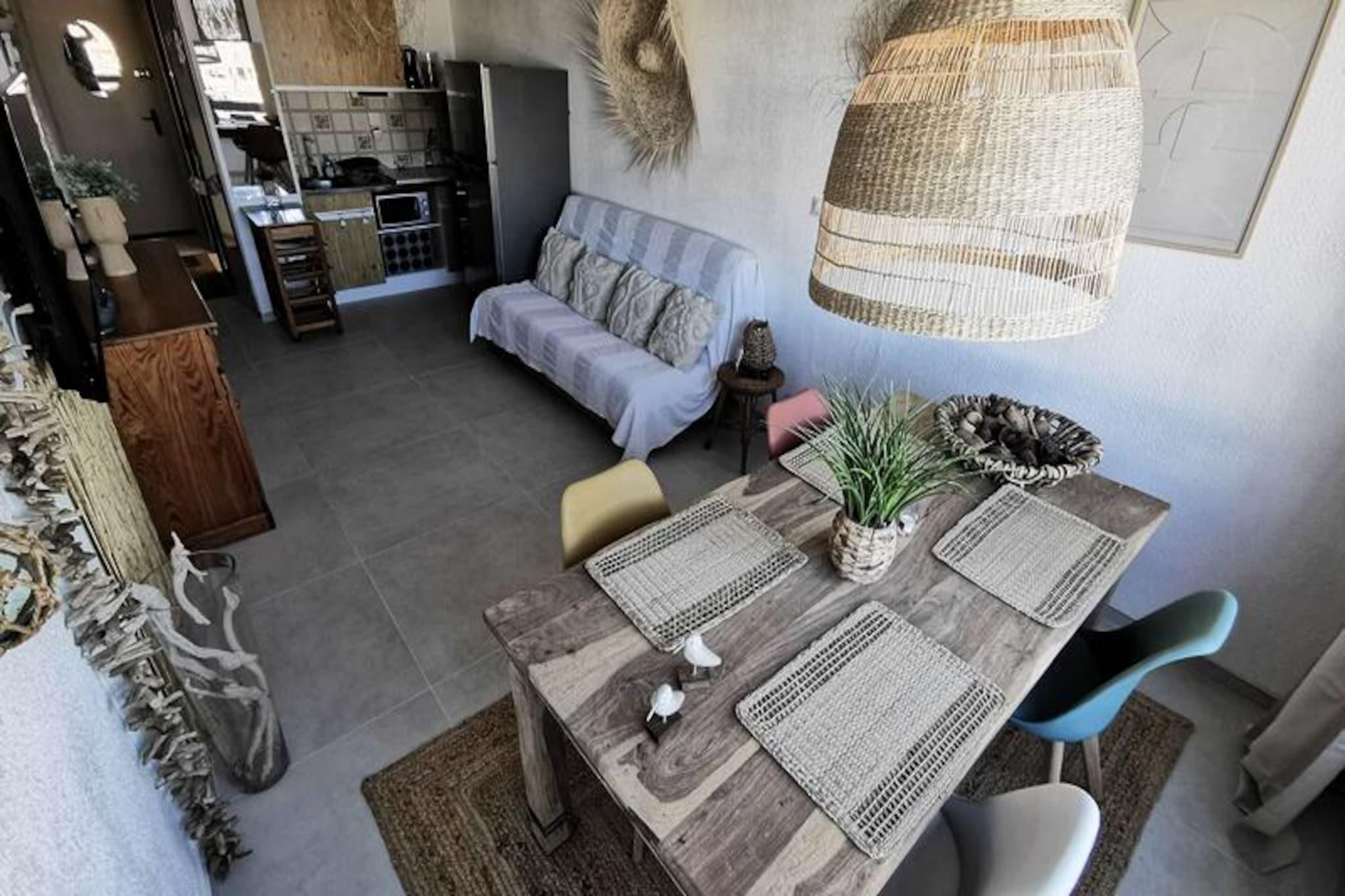 Med utsikt över den fridfulla marinan erbjuder denna charmiga tvårumslägenhet en härlig tillflyktsort för upp till fyra gäster. Med sitt västläge kan du njuta av den nedgående solens gyllene nyanser medan du varvar ner i ditt eget privata utrymme. Den lugna atmosfären i marinan, i kombination med den milda havsbrisen, skapar den perfekta bakgrunden för en avkopplande semester. Oavsett om du planerar en romantisk resa eller en liten familjesemester, lovar denna lägenhet en mysig och minnesvärd vistelse. Inuti är lägenheten noggrant utformad för att maximera komfort och funktionalitet. Vardagsrummet har en bekväm bäddsoffa för två personer, medan det separata sovrummet erbjuder en plyschig dubbelsäng för vilsamma nätter. Det välutrustade köket har en elektrisk spishäll, miniugn, mikrovågsugn, kyl-frys och till och med en tvättmaskin, vilket garanterar alla bekvämligheter i ett hem. Med luftkonditionering och en TV kommer din vistelse att vara lika bekväm som den är trevlig. Den 38 m² stora ytan är perfekt lämpad för en avkopplande semester vid havet. Lägenheten ligger bara 600 meter från stranden och bara 200 meter från stadens centrum och erbjuder det bästa av två världar: enkel tillgång till sandstränder och ett pulserande lokalt liv. Njut av lugna promenader längs marinan, utforska charmiga butiker eller njut av utsökt regional mat på närliggande restauranger. För extra bekvämlighet inkluderar fastigheten en privat, bevakad parkeringsplats, vilket garanterar sinnesro under hela din vistelse. Oavsett om du dras av Medelhavets lockelse eller marinans charm, är denna lägenhet din port till en oförglömlig semesterupplevelse. Låt kustens skönhet och komforten i denna inbjudande oas skapa bestående minnen för dig och dina nära och kära.
