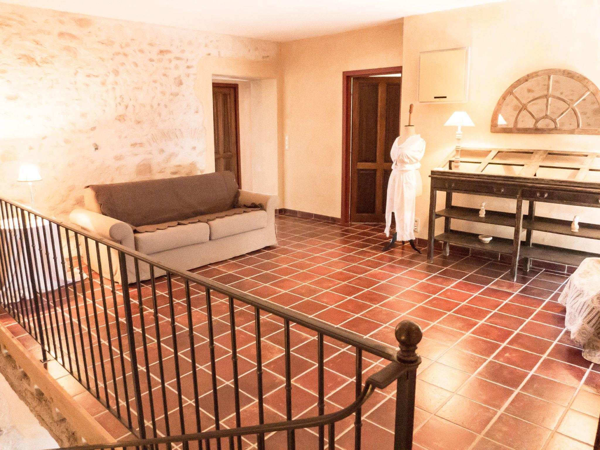 Description of mas 1. On the ground floor: large living room of nearly 100 m² with separate kitchen, dining room and lounge area. 1 independent toilet. Upstairs, 1 bedroom with king size bedroom and private bathroom with bath, double sinks and toilet, 1 twin bedroom with 2 beds 1m x 2m and private bathroom with walk-in shower, double sinks and WC. On the 2nd floor, 1 king size bedroom and private bathroom with bath, large basin, 1 twin bedroom with 2 beds 1m x 2m and private bathroom with shower and double sinks, separate toilet and large terrace of 150 m² with garden lounge with beautiful views.