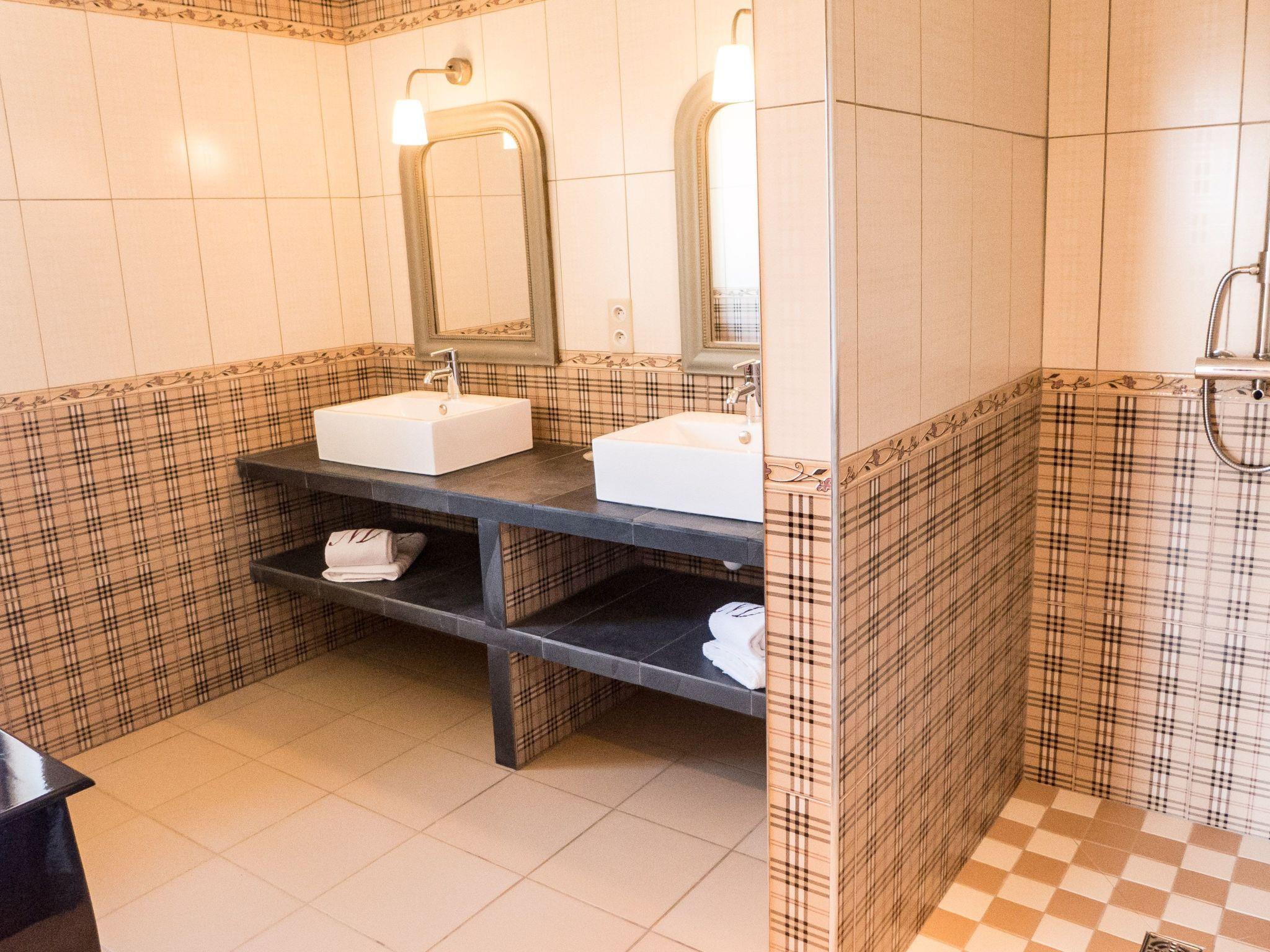 Description of mas 2. On the ground floor : large living room of nearly 100 m² with separate kitchen, dining room and lounge area. 1 king size bedroom and private bathroom with shower, bath and double sinks. 1 independent toilet. Upstairs, 1 king size bedroom, 1 twin bedroom with 2 beds 1m x 2m, 1 independant bathroom with bath, shower and double basins, 1 other twin bedroom with 2 beds 1m x 2m and bathroom private with shower, double sinks and WC. Independent toilet.