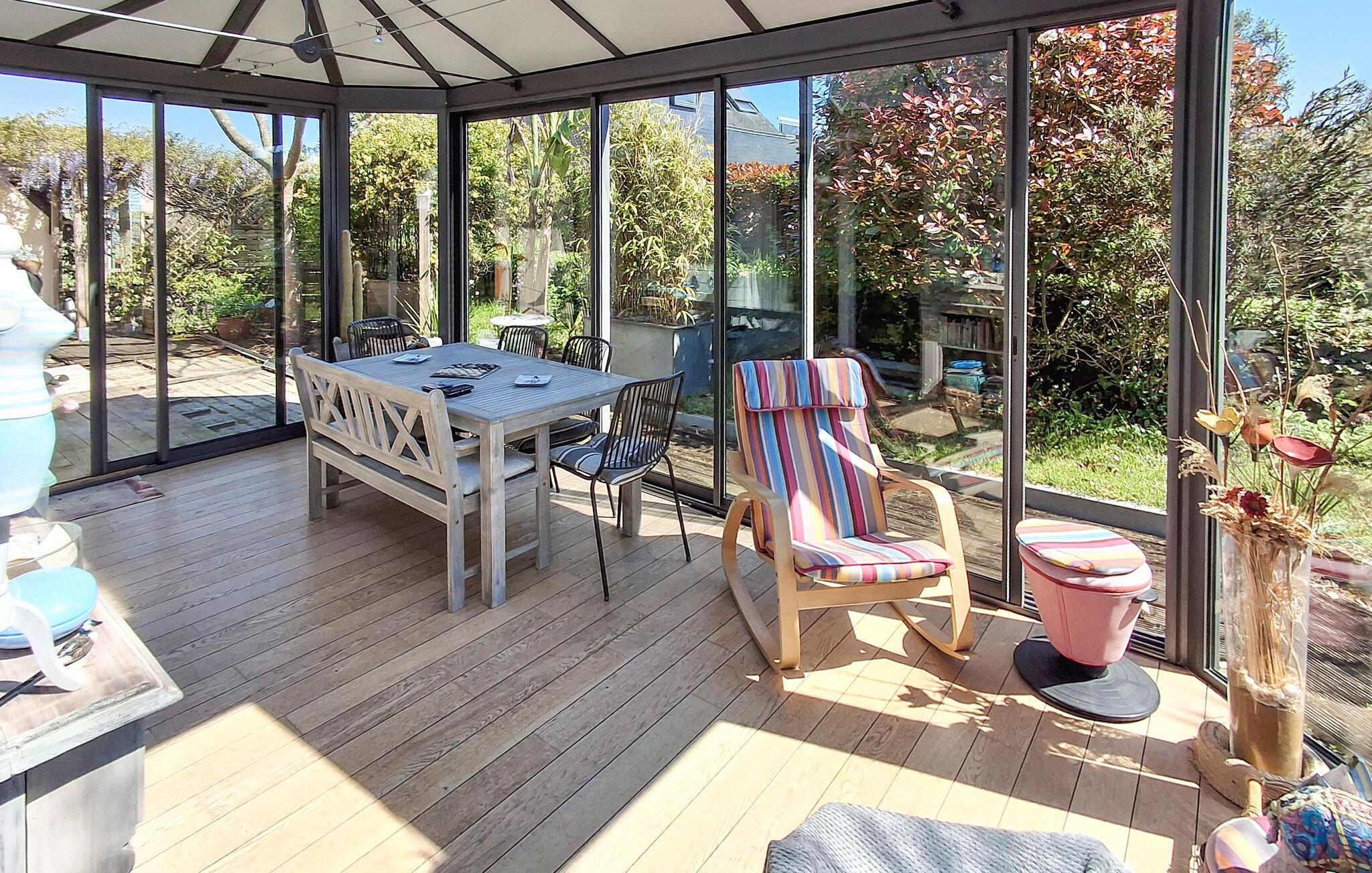 Njut av en avkopplande semester i detta semesterhus med vinterträdgård och vackert utomhusområde.