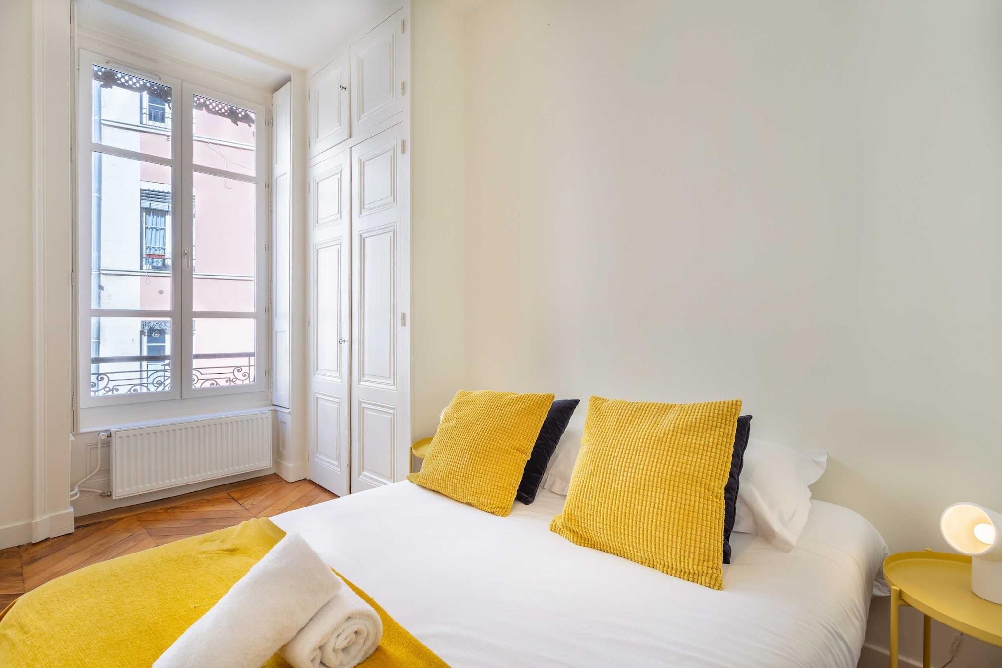 Lägenhet med mycket karaktär, renoverad och inredd av en arkitekt. null Lägenhet med mycket karaktär, renoverad och inredd av en arkitekt. Du kan njuta av dess ljusa och lugna atmosfär under din vistelse. Den har utformats med högklassiga tjänster för att tillfredsställa dina minsta önskningar. Lägenheten ligger på tredje våningen med hiss. Boende Denna helt renoverade och utrustade lägenhet rymmer upp till 4 personer med ett sovrum utrustat med en dubbelsäng (160x190), ett andra sovrum utrustat med en dubbelsäng (140x190). För din bekvämlighet erbjuder lägenheten två privata badrum och en separat toalett. Du kommer att dra nytta av hela lägenheten och kan använda alla faciliteter. Obegränsat internet, utrustat kök, kaffebryggare, tvättmaskin och mycket mer. Tillgång för resenärer Tillgång till hela boendet (delas inte med ägaren).