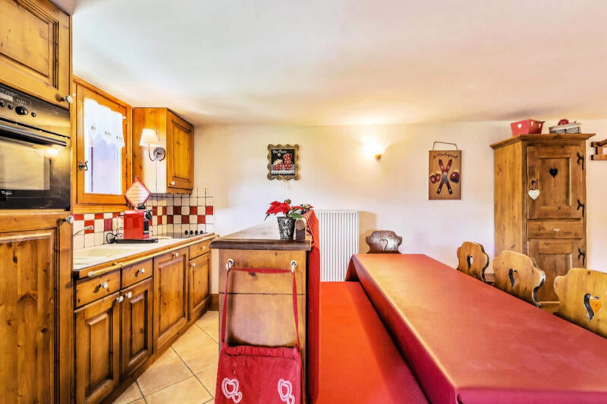 Denna rymliga lägenhet i chaletstil i de franska alperna rymmer upp till 9 gäster med tre sovrum, varav två med dubbelsängar och ett med fyra enkelsängar i våningssängar. Det finns också en mezzanin med en queen size-säng. Vardagsrummet har en soffa, matbord och tre badrum. Lägenheten har en privat balkong med fantastisk utsikt över bergen och är husdjursvänlig (extra avgift tillkommer), vilket garanterar en bekväm tillflyktsort för familjer eller grupper. Idealiskt beläget nära Les 3 Vallées skidbackar, erbjuder lägenheten enkel tillgång till 600 km skidåkning. Icke-skidåkare kan njuta av snöskor, hundspann och utforska närliggande kaféer, restauranger och marknader. Residenset erbjuder hälsofaciliteter, inklusive en uppvärmd inomhuspool, bastu och fitnesscenter, perfekt för att varva ner efter utomhusaktiviteter. Lägenheten har ett fullt utrustat kök med öppen planlösning, moderna apparater och rymliga badrum med badkar och dusch. Separata toaletter ger bekvämlighet. Ytterligare bekvämligheter inkluderar ett skidskåp, parkering under tak (i ??mån av tillgång) och Wi-Fi (mot tillägg). Denna fastighet erbjuder den idealiska miljön för en minnesvärd vistelse i hjärtat av Alperna.