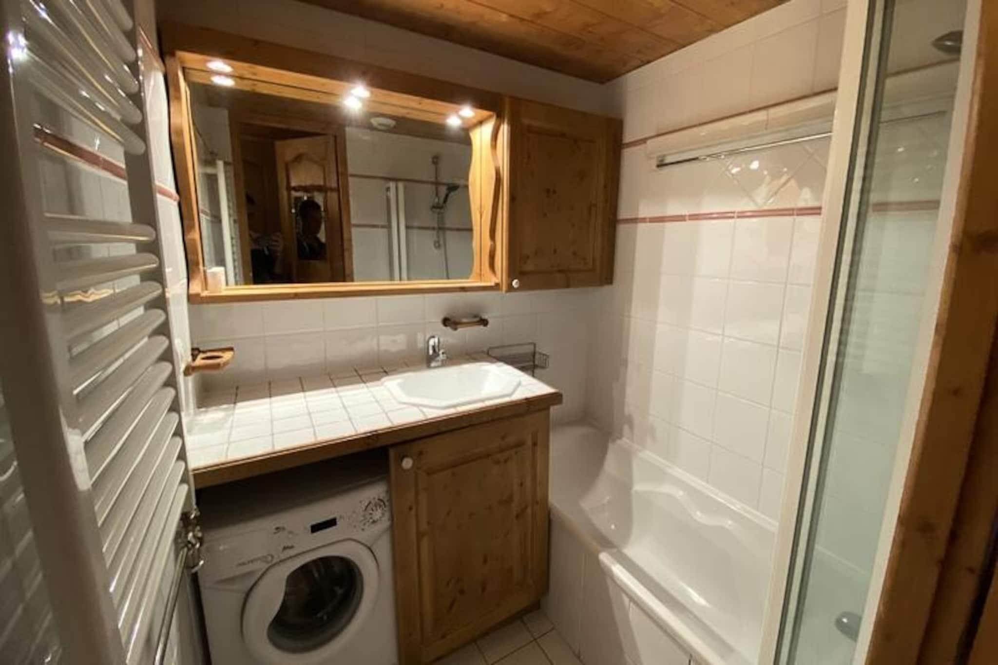 Denna charmiga lägenhet, inbäddad i hjärtat av Alperna, rymmer upp till 6 gäster med ett sovrum med dubbelsäng och ett andra sovrum med två enkelsängar. Vardagsrummet har en utdragbar soffa som ger extra sovutrymme. Husdjur är tillåtna mot en extra avgift. Fastigheten erbjuder gratis Wi-Fi (beroende på tillgänglighet) och moderna bekvämligheter för en bekväm vistelse, inklusive en täckt parkeringsanläggning (med reservation). Lägenheten ligger inom det berömda skidområdet 3 Vallées och erbjuder direkt tillgång till över 600 km skidbackar. För dem som letar efter aktiviteter som inte åker skidor, erbjuder området snöskovandring och hundspann. I närheten hittar du mysiga kaféer, lokala marknader och restauranger där du kan njuta av läckra alpina rätter, vilket gör detta till en perfekt bas för att utforska regionen. Lägenheten har ett fullt utrustat kök och matplats i öppen planlösning, perfekt för att laga mat. Badrummet har ett badkar och ett separat duschrum för extra bekvämlighet. Det finns även en separat toalett. Ytterligare bekvämligheter inkluderar tillgång till en uppvärmd inomhuspool, bastu och spa, vilket garanterar en avkopplande och trevlig vistelse.