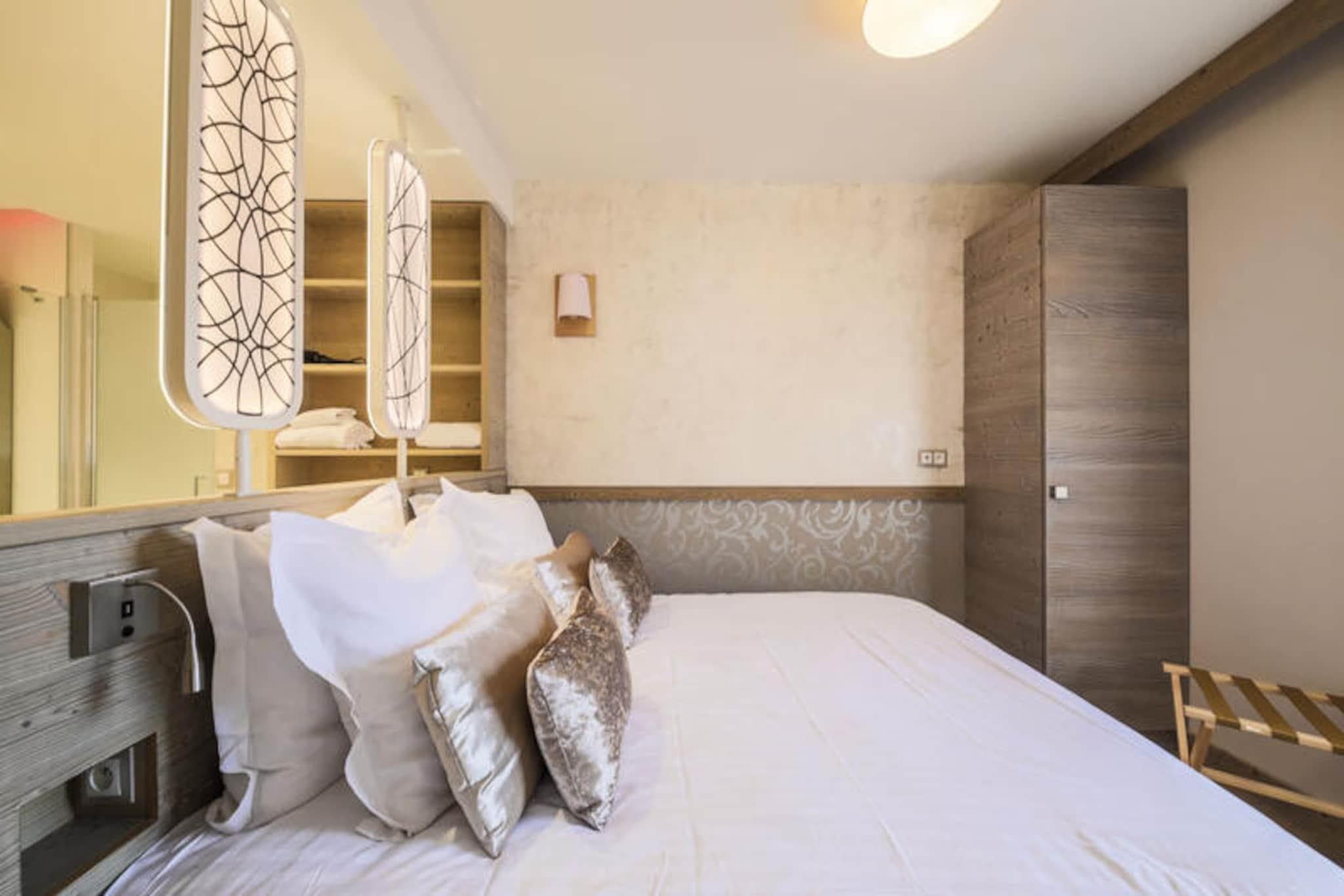 Det prestigefyllda residenset L'Hévana ligger inbäddat i hjärtat av Méribel och erbjuder en lyxig och bekväm vistelse, bara 250 meter från den första blå skidbacken i världens största skidområde, de tre dalarna. Detta femstjärniga premiumboende, som öppnade i december 2019, har 92 vackert designade lägenheter med modern inredning. Residenset erbjuder en rad premiumtjänster, inklusive en fantastisk inomhuspool, en utomhusjacuzzi, ett hamam, ett fitnesscenter och en bar. Gästerna kan också njuta av förmånliga priser på Deep Nature Spa, tillgängligt med förbokning. Detta boende ligger bara några steg från hjärtat av Méribel, och är perfekt beläget för skid-entusiaster och de som vill utforska ortens livliga atmosfär. Receptionen, som är öppen 24/7, ser till att alla dina behov tillgodoses, inklusive hjälp med aktiviteter och information om lokala attraktioner. Även om transfer från SNCF-stationen inte tillhandahålls, tar pendelservice från större stationer, inklusive Genève och Moutiers, gästerna direkt till närheten av L'Hévana. Lägenheterna har en rymlig planlösning, inklusive ett vardagsrum med bäddsoffa, en köksdel, två sovrum (ett med dubbelsäng och ett med två enkelsängar), och två badrum, ett med bubbelbadkar och bastu. Ytterligare bekvämligheter inkluderar sängkläder och handdukar, parkering under tak och fri tillgång till boendets hälsofaciliteter, inklusive bastu, hamam och bubbelpool utomhus. Gästerna har också tillgång till daglig tillgång till inomhuspoolen och en balkong i varje lägenhet.