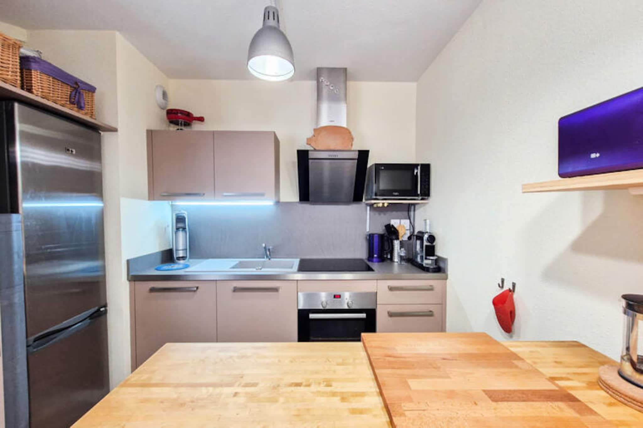 I det fridfulla Flaine Forêt-distriktet erbjuder denna vackert renoverade lägenhet på bottenvåningen en perfekt tillflyktsort för bergsentusiaster. Med sitt söderläge och en rymlig terrass kan gästerna njuta av den hisnande alpina utsikten medan de njuter av den friska bergsluften. Bara 350 meter från backarna och skidskolans mötesplatser, och med butiker och en busshållplats i närheten, kombinerar denna bostad lugn och ro med tillgänglighet, vilket gör den idealisk för både vinter- och sommarresor. \n\nLägenheten är 61 m² stor och är omsorgsfullt utformad för att rymma upp till sex gäster. Den har två mysiga dubbelrum, ett med eget duschrum, och ett bekvämt vardagsrum med en bäddsoffa och TV. Det moderna köket, integrerat i vardagsrummet, är fullt utrustat med ett stort kylskåp, keramikhäll, ugn, diskmaskin, mikrovågsugn och kapselkaffebryggare, vilket garanterar alla bekvämligheter i ett hem. Ytterligare bekvämligheter inkluderar ett badrum med badkar och tvättmaskin/torktumlare, en separat toalett och ett skidförvaringsskåp för bekvämlighet. Plastgolvet ger en modern touch, medan täckena lovar en mysig natts sömn. Observera att boendet är rökfritt, och sängkläder och handdukar ingår inte.\n\nUnder sommarsäsongen kan gäster som bor sex nätter eller fler njuta av den exklusiva\