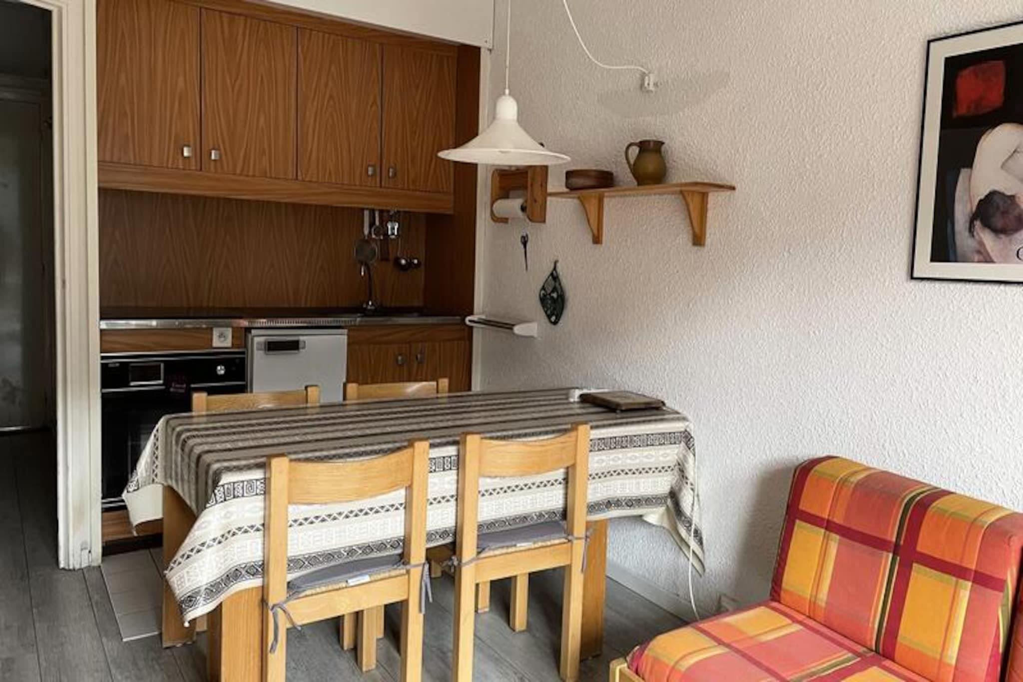 I hjärtat av det pittoreska Flaine Forêt-distriktet erbjuder denna mysiga studio en härlig alpin tillflyktsort bara 150 meter från backarna och skidskolans mötesplatser. Perfekt beläget för både vintersportsentusiaster och sommaräventyrare, är residenset omgivet av charmiga butiker och bekvämligheter, vilket garanterar bekvämlighet i varje hörn. Från sin balkong i söderläge kan du njuta av den fridfulla utsikten över bergen och den friska alpina luften, vilket gör varje ögonblick till en fräsch fläkt. \n\nStudioen är designad för att rymma upp till fyra gäster och är omsorgsfullt inredd med en våningssäng i entrén och en bekväm bäddsoffa för två personer i vardagsrummet. Pentryt är utrustat med moderna apparater, inklusive en Vito keramikhäll, ugn och mikrovågsugn, vilket gör det enkelt att laga rejäla måltider efter en dag av utforskande. Koppla av i vardagsrummet med en stor platt-TV eller varva ner i badrummet med badkar för ett avkopplande dopp. Praktiska detaljer som ett skidförvaringsskåp och täcken garanterar en problemfri vistelse, medan balkongen i söderläge inbjuder dig att sola. \n\nFlaine är en destination som är öppen året runt och erbjuder spännande skidbackar på vintern och en mängd aktiviteter på sommaren, tack vare det inkluderade \