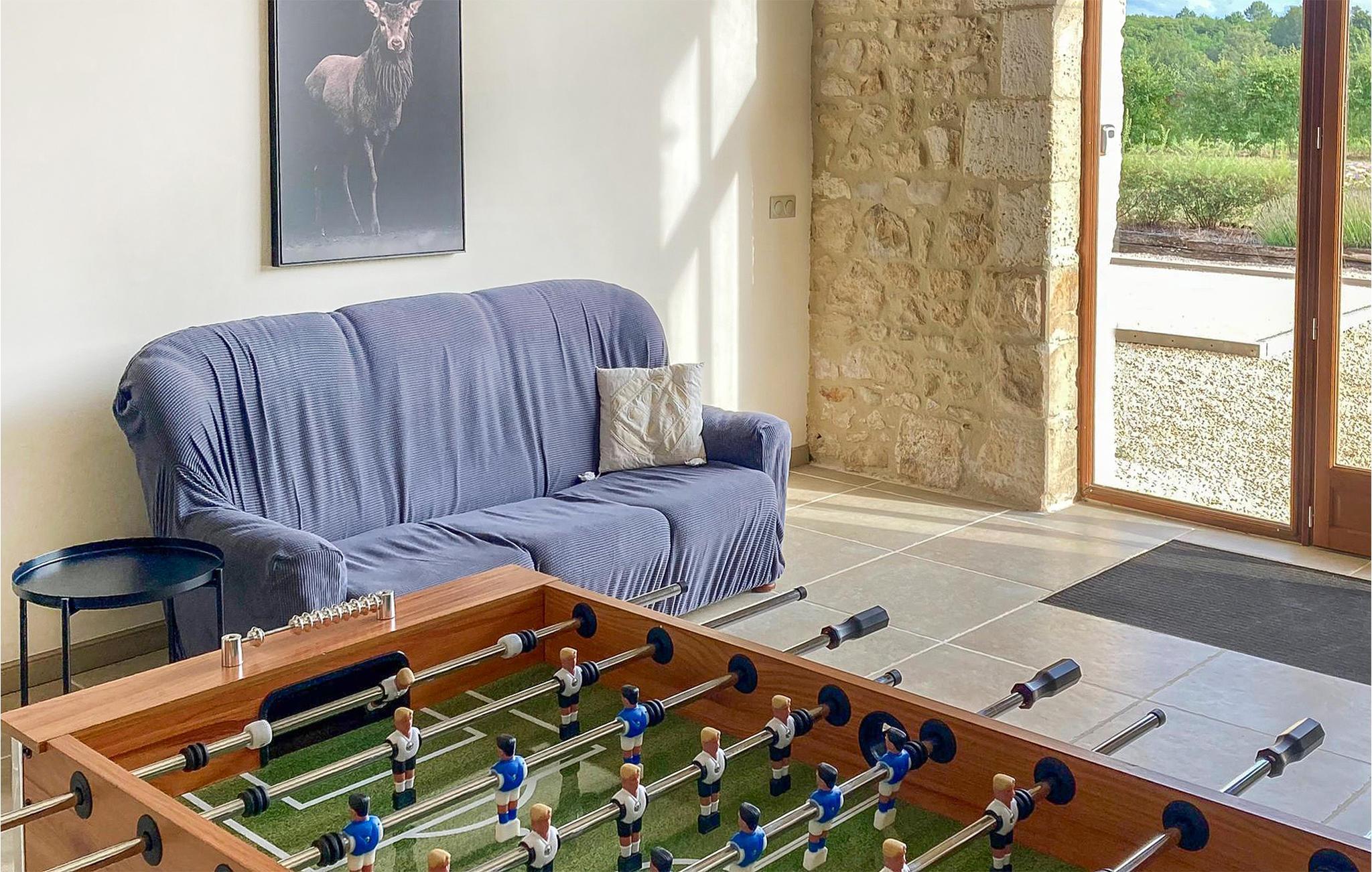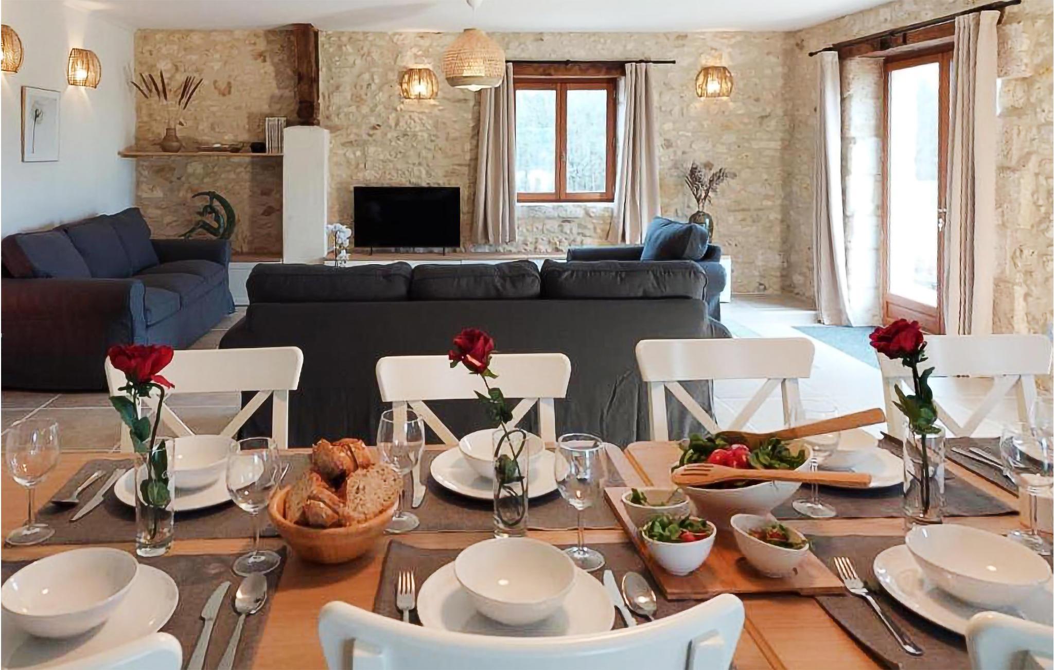 En dröm för hela familjen omgiven av ängar, skogar och åkrar. Koppla av i detta charmiga, rymliga och bekväma semesterhus som inte lämnar något övrigt att önska. Njut av vilsamma nätter i de kärleksfullt inredda sovrummen eller umgås i matköket, det mysiga och ljusa vardagsrummet eller i lekrummet. Du kan också avnjuta dina måltider utomhus i skuggan av stenmurarna och uppleva trädgården och landskapet runt omkring dig medan du simmar i poolen eller på solstolen.