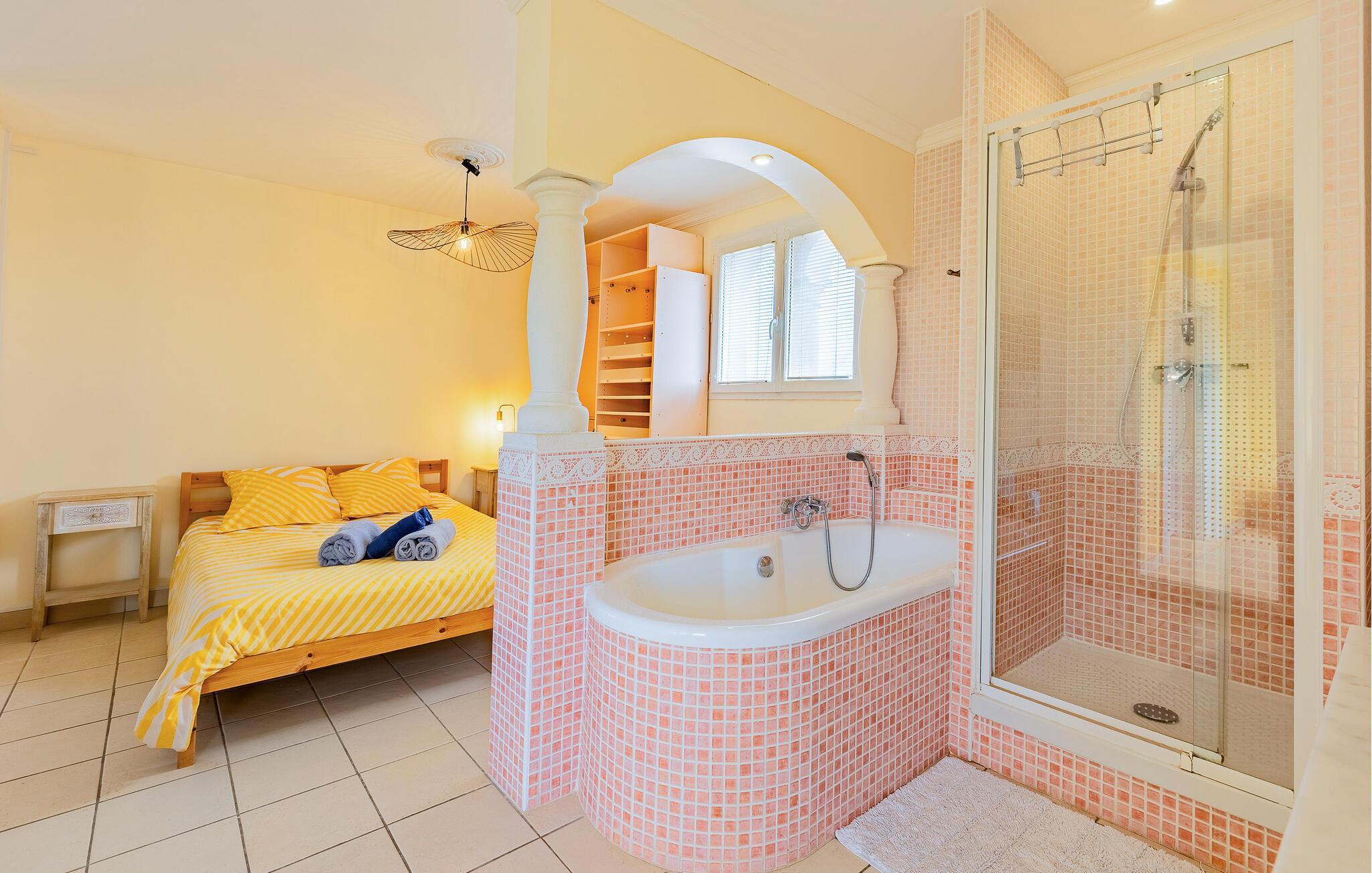 Denna charmiga villa i Marseillan lovar dig en lyckad semester i Hérault. Den är ljus och bekvämt inredd, och av de stora sovrummen på bottenvåningen är ett av dem utrustat med eget badrum. Det rymliga sovrummet på övervåningen, också med eget badrum, är möblerat med två dubbelsängar och har tillgång till en trevlig och solig terrass. Marseillan bjuder in dig till att lata dig på sina stränder och har några överraskningar i beredskap för dig. I Marseillan kan du besöka huset där grunden till den berömda vermouth Noilly Prat skapades. Ge dina barn en dag på nöjesparken Marseillan-Plage eller på Piratlandet, som också är mycket roligt för små semesterfirare. Bouzigues är känt för sina utsökta ostron, som smakar ännu bättre med utsikt över lagunen Étang de Thau, och i Agde ligger den vackra stranden Grande Conque vid dina fötter. Akvariet i Cap d'Agde är en upplevelse för stora och små. Med det här semesterhuset har du utsikter till en fantastisk familjesemester i Hérault.