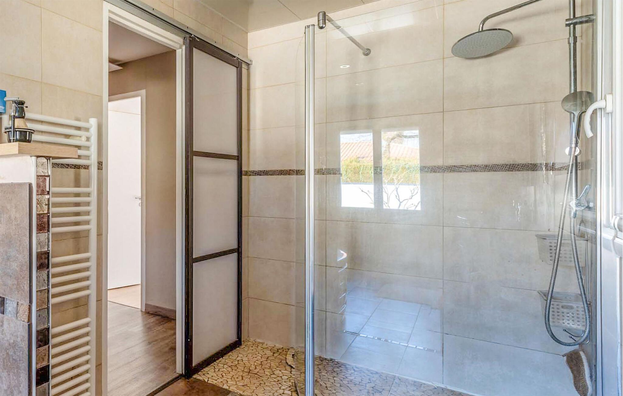 Detta charmiga semesterhus på bottenvåningen erbjuder dig en elegant och mysig atmosfär för en avkopplande vistelse. Det ljusa vardagsrummet inbjuder dig att dröja dig kvar med sina moderna möbler och varma färger. I det välutrustade köket med öppen planlösning kan du enkelt laga läckra måltider som du sedan kan njuta av vid matbordet eller utomhus. De mysiga sovrummen lovar vilsamma nätter, medan badrummet ger extra komfort med sina trevliga möbler.