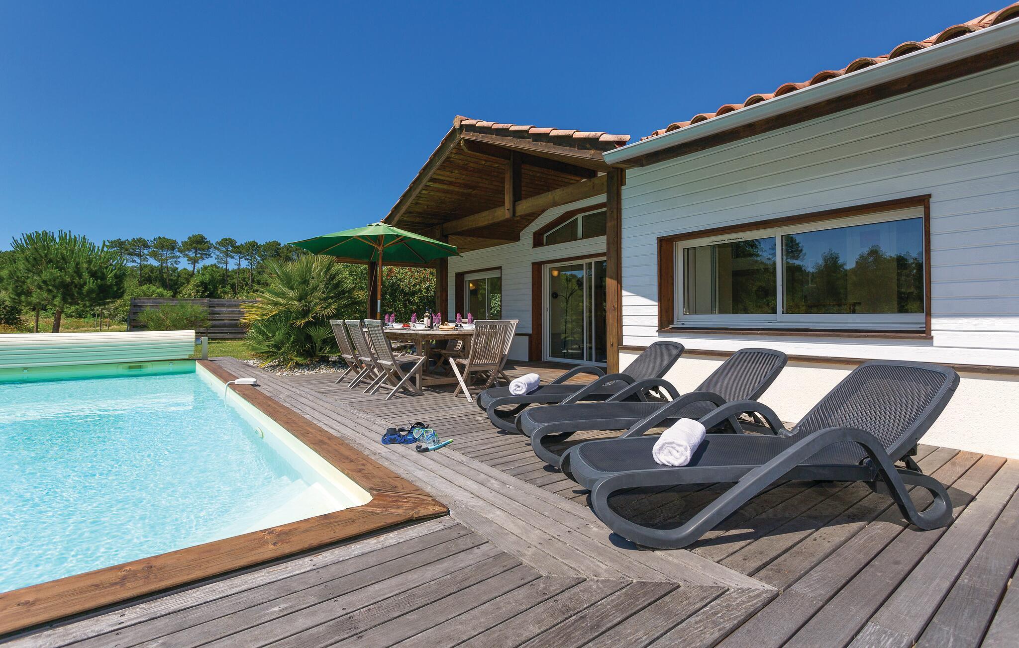 Inte långt från Atlanten med sina långa sandstränder och mitt i den berömda golfbanan Moliets väntar dessa bekväma och moderna villor i en semesterpark, som alla har en privat pool med en underbar terrass som kan användas under säsongen och beroende på vädret.