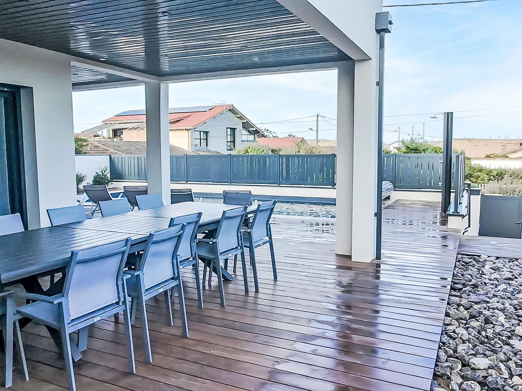 Beautiful villa "Villa Dune". In a central, busy position, 200 m from the sea, 200 m from the beach, in a cul-de-sac. Private: property 450 m2 (fenced), swimming pool (5 x 10 m, depth 110 - 140 cm, seasonal availability: 01.Apr. - 30.Oct.). Parking (for 3 cars) at the house. Grocery 350 m, supermarket 3.5 km, restaurant 160 m, bakery 350 m, bus stop 250 m, sandy beach "Moliets" 200 m. Sports harbour 30 km, golf course (18 hole) 1.2 km, surf school 200 m, sailing school 9.6 km, tennis 1.4 km, riding stable 4.5 km. Nearby attractions: Le Courant d'Huchet 800 m, Hossegor 27 km, Capbreton 29 km, Dax 38 km. Well-known lakes can easily be reached: Port d'Albret 12 km.
