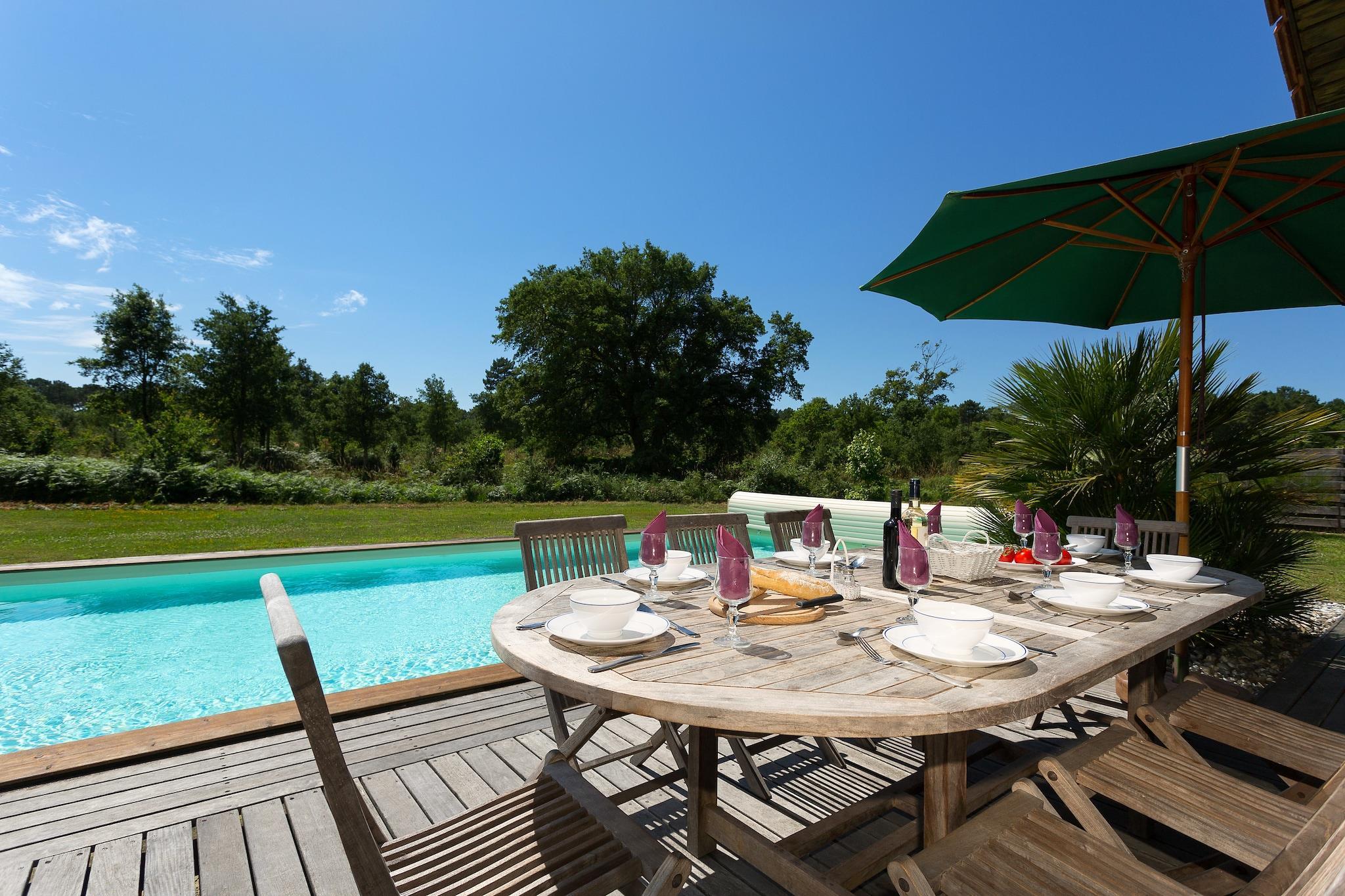 Rymlig familjevilla med privat pool och skuggig trädgård Välkommen till din idylliska kustnära reträtt i Moliets! Denna charmiga villa på 110 m² är designad för komfort och avkoppling, med fyra sovrum, tre moderna badrum och ett ljust vardagsrum med öppen spis och satellit-TV. Köket i öppen planlösning är fullt utrustat med ugn, mikrovågsugn och diskmaskin, perfekt för familjefester eller romantiska middagar. Utanför hittar du en vacker privat pool (öppen april–oktober), omgiven av en skuggig trädgård, en träterrass och eleganta utemöbler – perfekt för långa luncher, siesta eller stjärnskådningskvällar. Natur, stränder och husdjursvänligt nöje Inbäddad mellan Atlanten och Landes fridfulla tallskog, erbjuder denna villa den perfekta balansen mellan avskildhet och tillgänglighet. Bara 1,2 km från Moliets breda sandstränder kan du cykla eller promenera längs natursköna stigar direkt från din dörr. Husdjur är varmt välkomna, och de kommer att älska de husdjursvänliga promenaderna vid kusten, skogsstigarna och till och med lokala evenemang som hundstrandträffar och djurmarknader utomhus under sommaren. Oavsett om det är en omgång att hämta i trädgården eller ett plask vid den närliggande sjön, är denna vistelse verkligen för hela familjen. Gourmetsmaker och avslappnade vibbar Efter en dag i solen kan du utforska Moliets livliga matscen – färska ostron, grillad fisk, baskiska tapas och fina viner väntar på strandkaféer och golfbanor. Lokala bondemarknader erbjuder de bästa regionala smakerna, medan barer i närheten serverar utsikt över solnedgången och signaturcocktails.