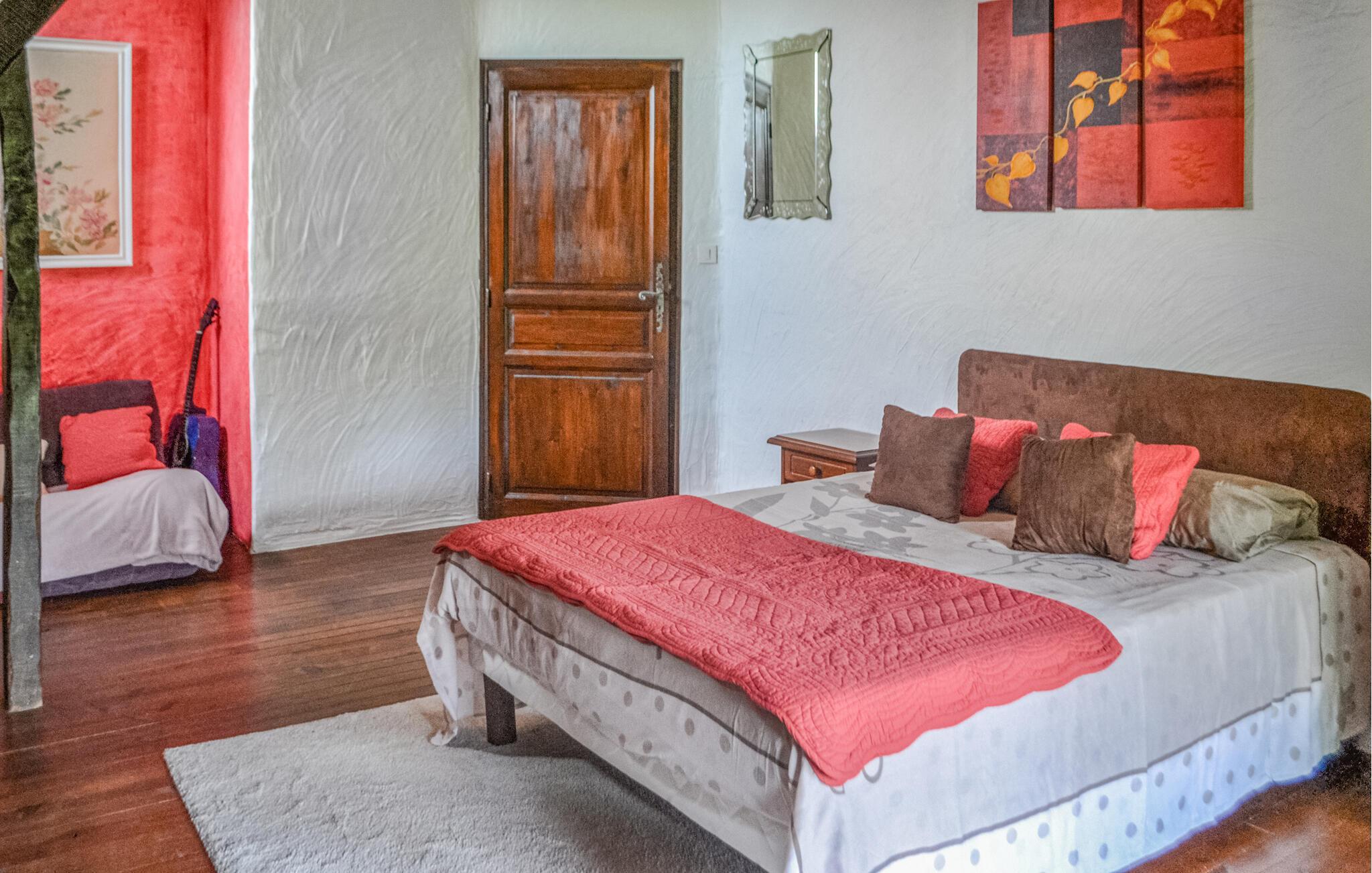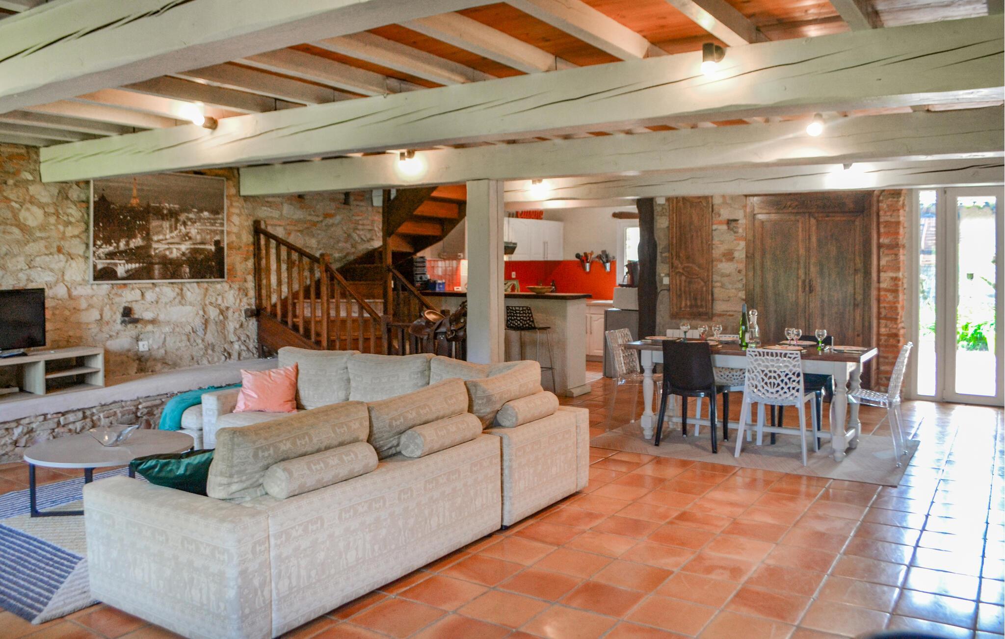 På den öppna terrassen kan du njuta av den underbara utsikten över det omgivande landskapet, medan den gemensamma trädgården med grill och pool inbjuder till umgänge. Den gemensamma poolen erbjuder förfriskningar och nöje, och det finns också en studsmatta, bordtennisbord och bordsfotboll för barn. Det andra badrummet ligger i en uthusbyggnad och kan delas med andra gäster.