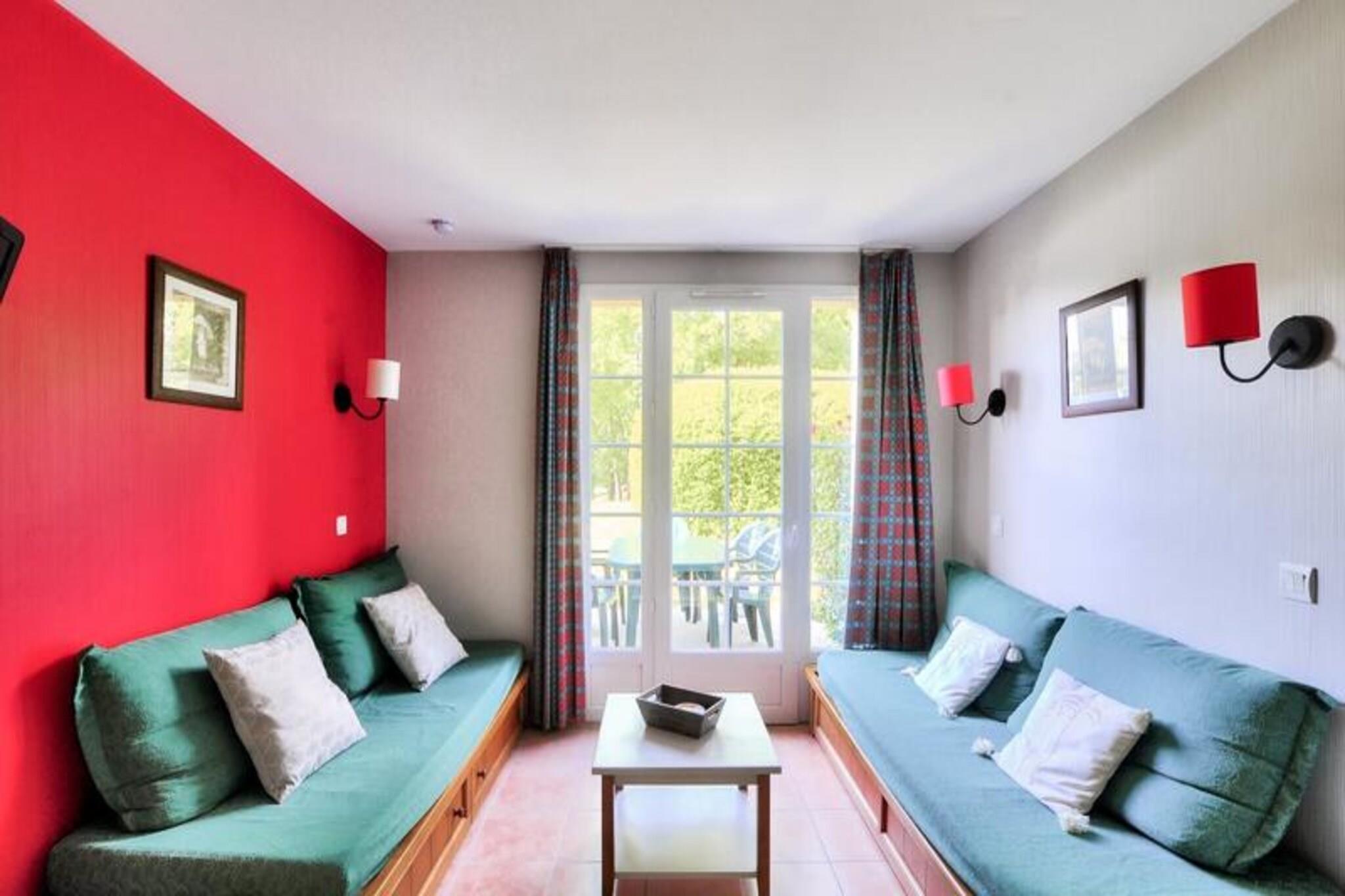 Denna charmiga etagelägenhet erbjuder bekvämt boende med ett sovrum med en dubbelsäng. I vardagsrumsdelen finns en bäddsoffa och en utdragbar säng, perfekt för ytterligare gäster. Lägenheten är husdjursvänlig, så att du kan ta med dig dina lurviga följeslagare mot en liten avgift. Med en privat parkeringsplats och en terrass kan du njuta av de fridfulla omgivningarna och varva ner i lugn och ro. Lägenheten är fullt utrustad för att säkerställa en avkopplande vistelse, med tillgång till Wi-Fi mot en extra kostnad. Denna lägenhet ligger i hjärtat av byn, inom gångavstånd från lokala butiker, kaféer och marknader, vilket gör den till en idealisk bas för att utforska området. Du kan enkelt besöka närliggande kulturella platser, inklusive slott och kulturarv. För dem som gillar utomhusaktiviteter finns vandringsleder, cykling och ridleder i närheten, medan vattenentusiaster kan njuta av den kommunala poolen bara 150 meter bort eller besöka den naturliga sjön i Lougratte under sommarmånaderna. Lägenheten har ett kök i amerikansk stil, fullt utrustat för att laga mat under din vistelse. Badrummet har ett badkar med duschpelare, en separat toalett och gott om förvaringsutrymme. Ytterligare bekvämligheter inkluderar en TV och en särskild parkeringsplats utanför. Med en privat terrass med utsikt över skogen kan du njuta av den fridfulla atmosfären på detta charmiga läge.