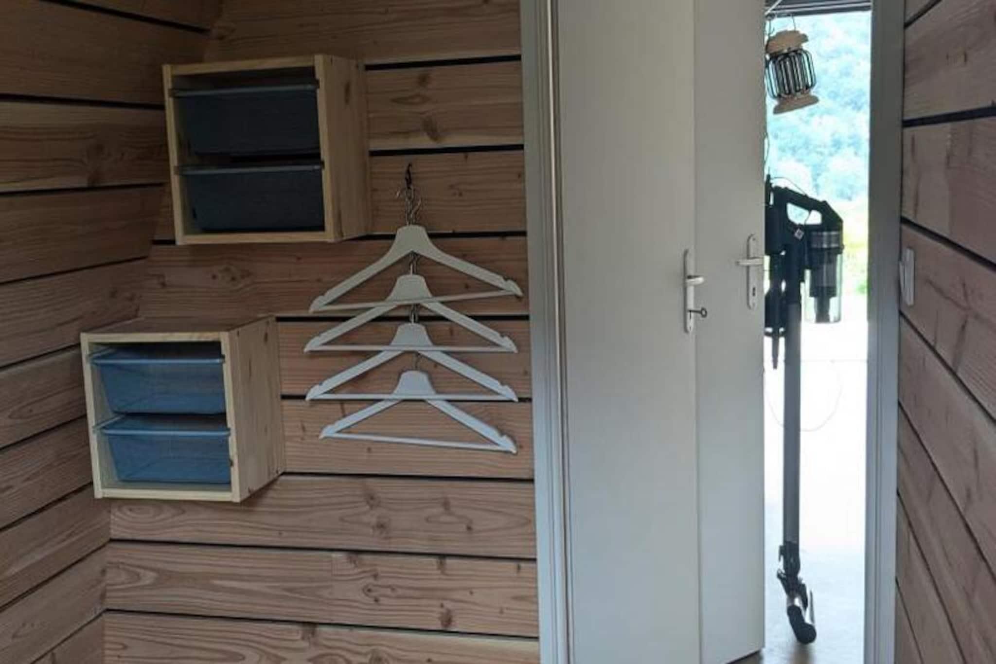 Gömd mitt i södra Frankrikes fridfulla landskap erbjuder denna charmiga trästuga en lugn tillflyktsort för dem som söker lugn och komfort. Omgiven av frodig grönska och badande i naturligt ljus, inbjuder varje Pigne dig att varva ner och återknyta kontakten med naturen. Oavsett om du smuttar på kaffe på solstolarna utomhus eller njuter av en lugn kväll i det mysiga vardagsrummet, lovar denna reträtt en uppfriskande tillflyktsort från vardagens stress och stress. Inuti har stugan en noggrant utformad planlösning på 34 m². Två inbjudande sovrum ger vilsamma nätter, varav ett har en dubbelsäng och det andra två enkelsängar. Det moderna badrummet med dusch och handfat garanterar bekvämlighet, medan den separata toaletten ger extra avskildhet. Vardagsrummet kombinerar funktionalitet och charm, med ett pentry utrustat med kylskåp, induktionshäll, mikrovågsugn och kaffebryggare. Ett matbord för fyra och en loungedel med en tvåsitssoffa och TV-möbel kompletterar interiören och skapar ett utrymme där avkoppling kommer naturligt. Gå ut för att hitta solstolar och soffbord, perfekta för att njuta av solskenet eller en måltid utomhus. Med sängkläder, handdukar och slutstädning inkluderade, tillsammans med gratis toalettartiklar som kaffebönor, te och tvål, har varje detalj noggrant övervägts för att garantera en smidig vistelse. Privat parkering finns tillgänglig, vilket gör det enkelt att utforska omgivningarna. Oavsett om du planerar en romantisk semester eller en familjesemester, erbjuder denna stuga den perfekta blandningen av komfort och natur. Fly till denna idylliska oas och skapa minnen som varar livet ut.