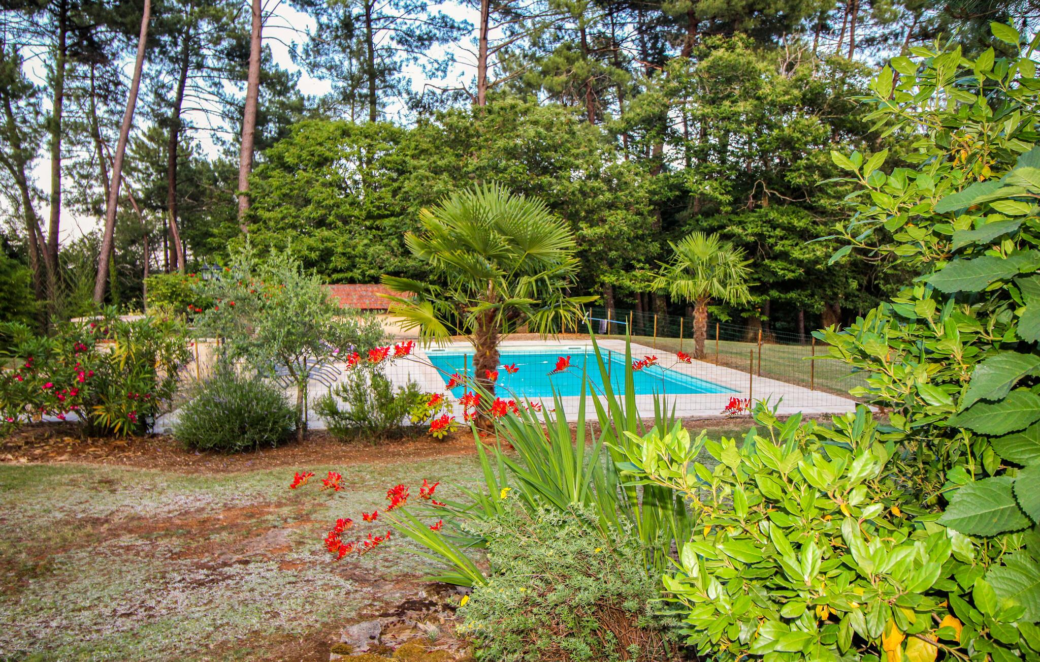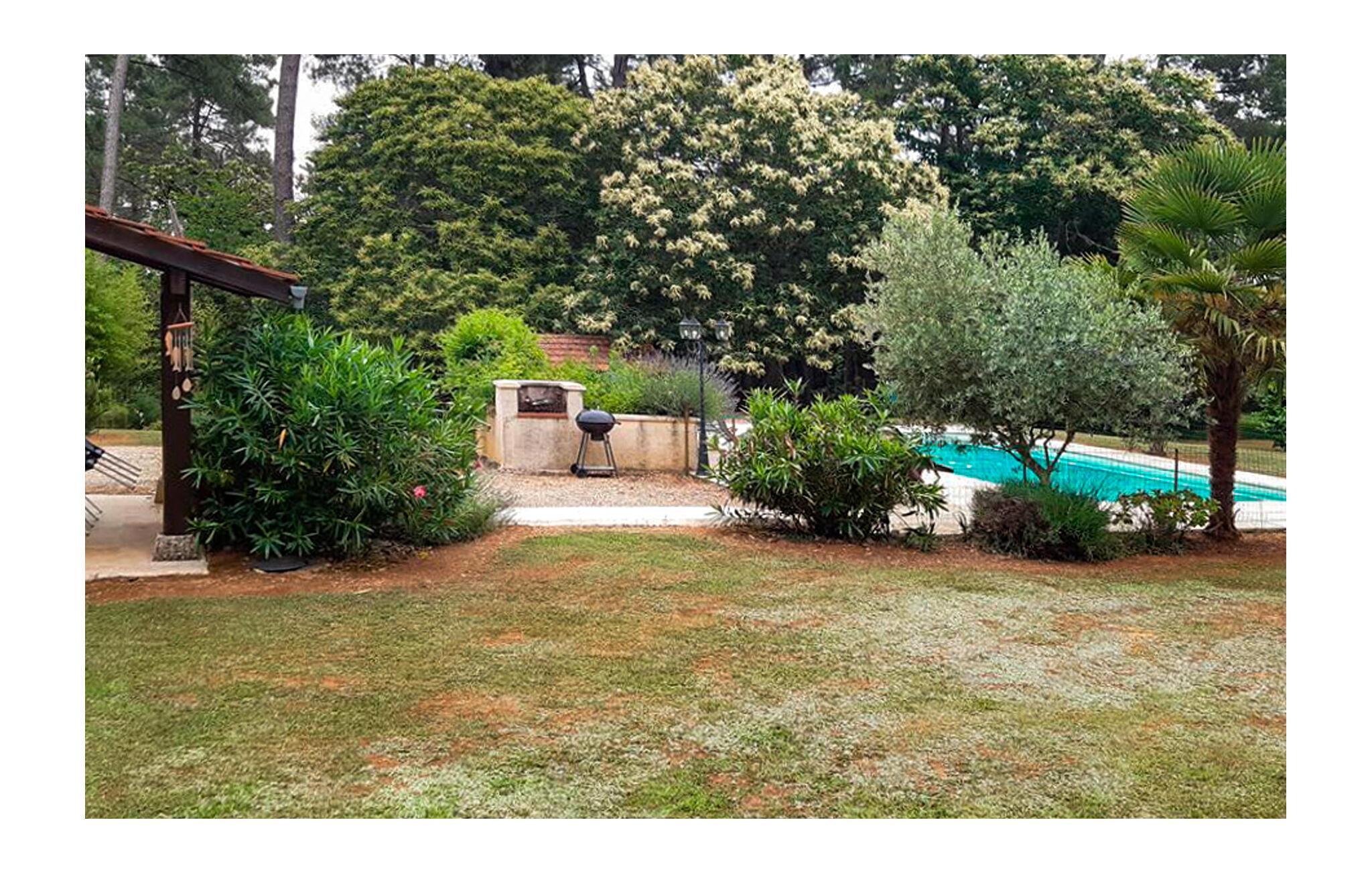 Gå ut i den välskötta trädgården, som erbjuder gott om utrymme för avkoppling och motion med blommande buskar och träd. Ta ett uppfriskande dopp i den inhägnade poolen eller koppla av på solstolarna i skuggan. Använd den täckta terrassen för uteservering och förbered din kvällsmåltid på grillen. Området som omger huset är rymligt, grönt och erbjuder många retreater.