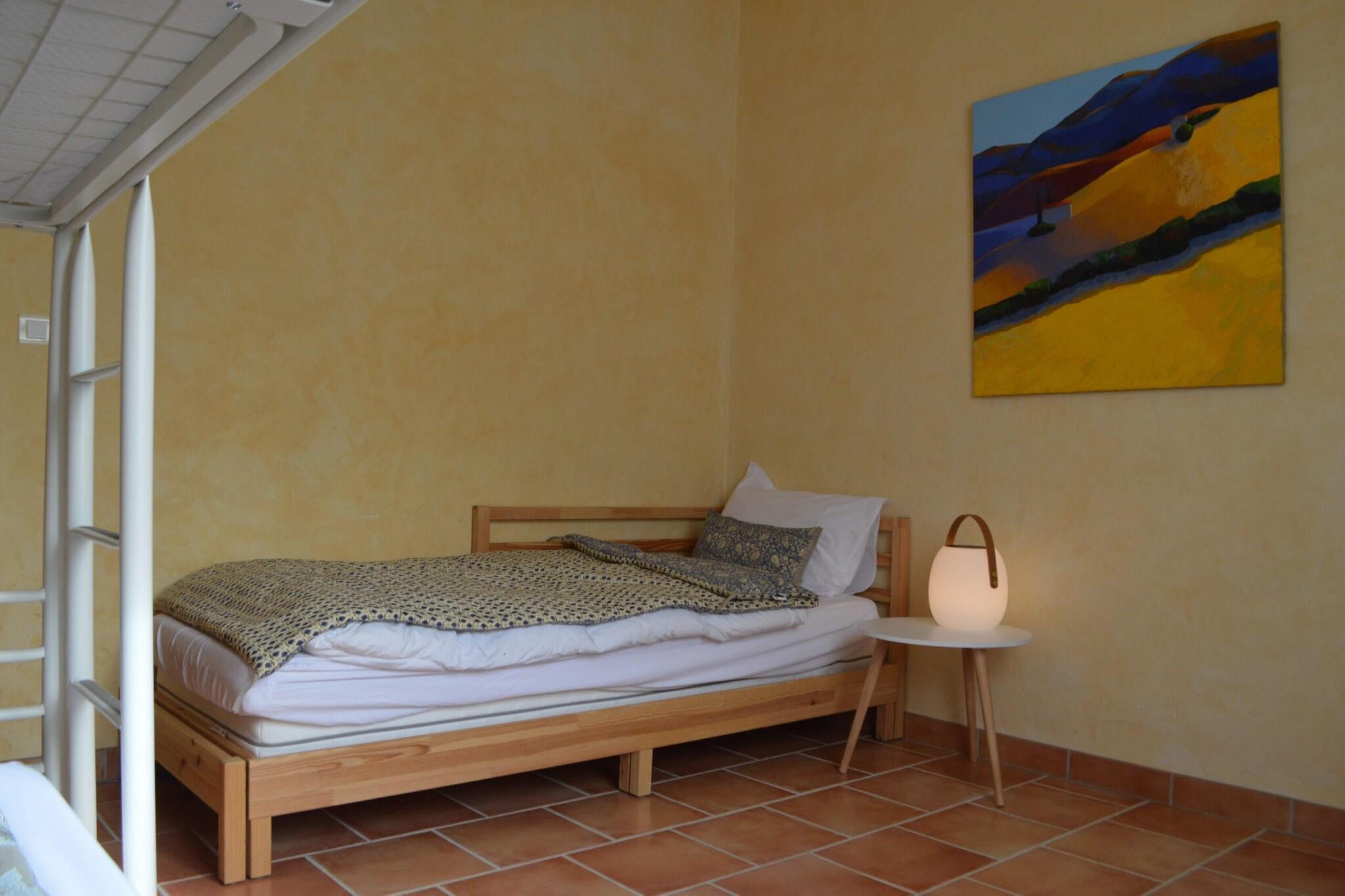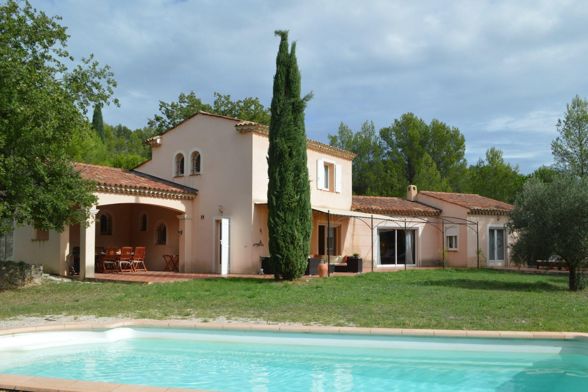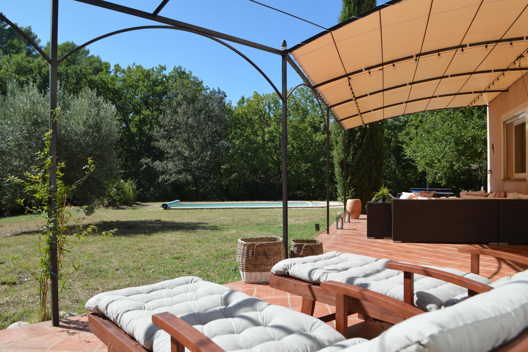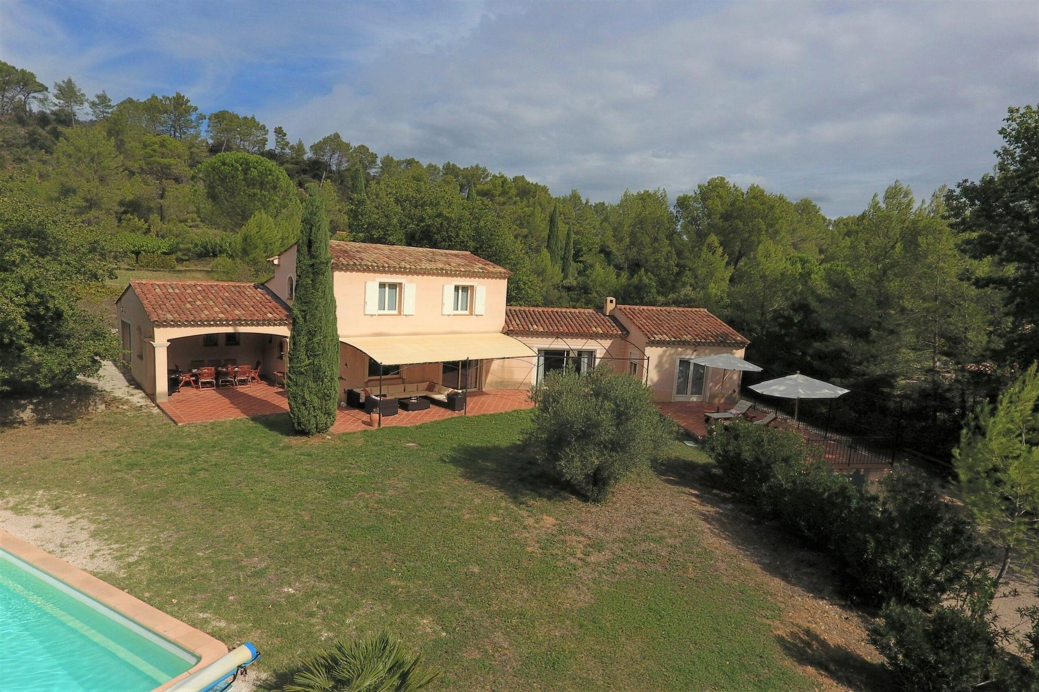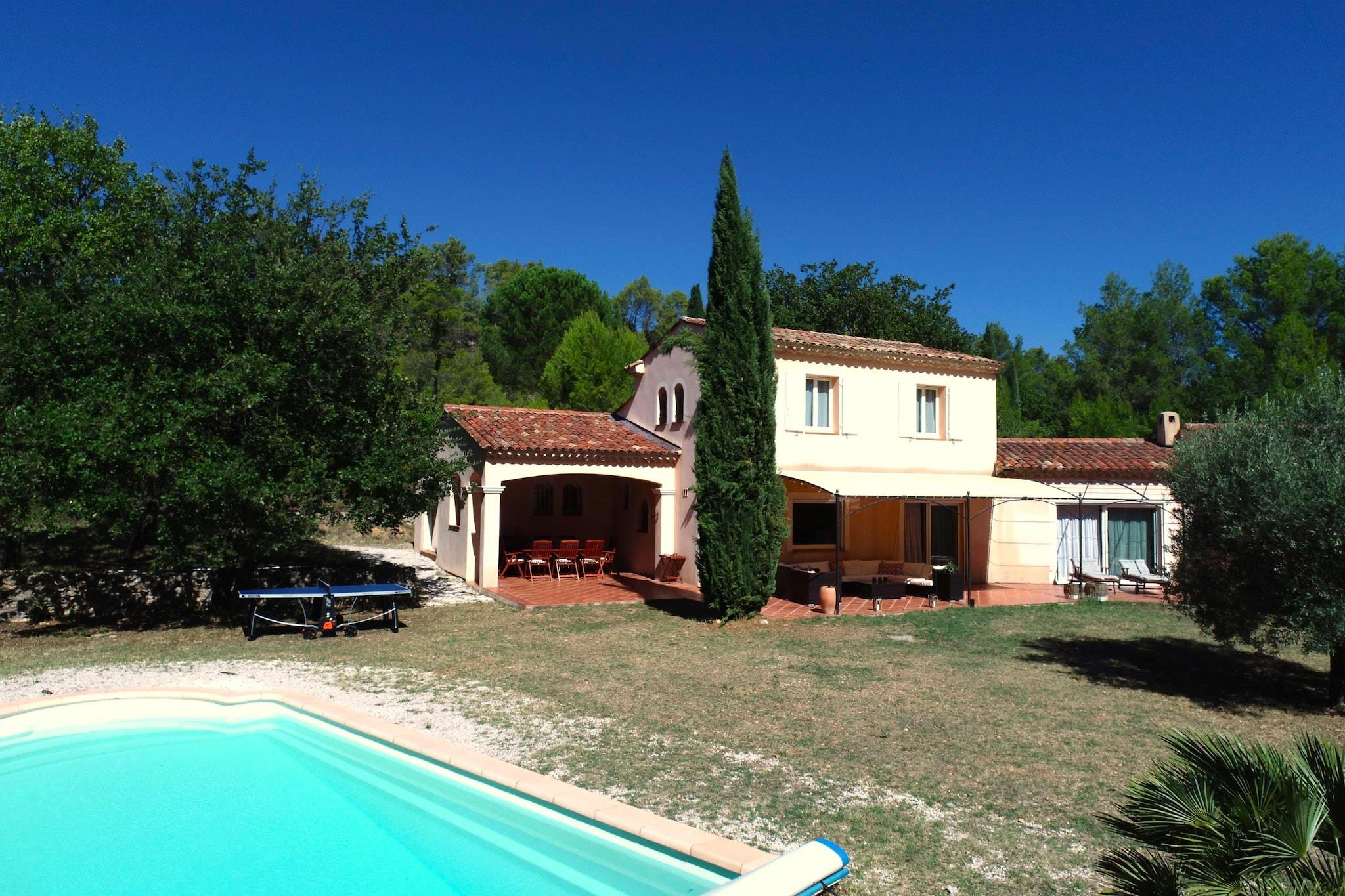 Du når den öppna domänen La Maison de Lisa via en lugn landsväg och en karakteristisk uppfart. Du hittar en härlig privat pool, en vacker trädgård och massor av komfort. Det är ett idealiskt val för semester med familj eller vänner. Montfort-sur-Argens är en charmig medeltida by i Var. Det är omgivet av ett vackert landskap av vingårdar, olivträd och böljande kullar. Huvudattraktionen är slottet Montfort; en imponerande fästning från 1000-talet som står på toppen av en kulle och erbjuder vackra vyer. Själva byn är hem för vackra hus, pittoreska gator och en autentisk atmosfär. Dessutom är det en idealisk bas för att utforska de närliggande vingårdarna och landsbygden, eller för en avkopplande dag vid kusten, som ligger bara 30 minuters bilresa bort. Villan är omgiven av en grästrädgård med höga träd i kanten. Poolen har trappsteg och du kan njuta av trevliga stunder med dina nära och kära på 1 av de 2 täckta terrasserna, varav 1 är utrustad med en stor plancha och ett rymligt matbord. Unna dig själv en valfri drink i den stora loungen eller koppla av med en god bok vid vattnet. Inomhus ligger det attraktiva vardagsrummet med öppet kök (inklusive frukostbar och amerikanskt kylskåp) i ett långt rum med typisk provensalsk inredning. På södra sidan hittar du ett stort antal fönster med skjutfönster och dörr till altan. I vardagsrummet med L-soffa har du en TV med Chromecast och Fiber WiFi. En pallkamin ger atmosfär och värme kallare kvällar vår och höst. Det finns även en kontorsplats och ett praktiskt matbord i anslutning till köket. Alla områden är luftkonditionerade. Garaget är inte tillgängligt för gäster.