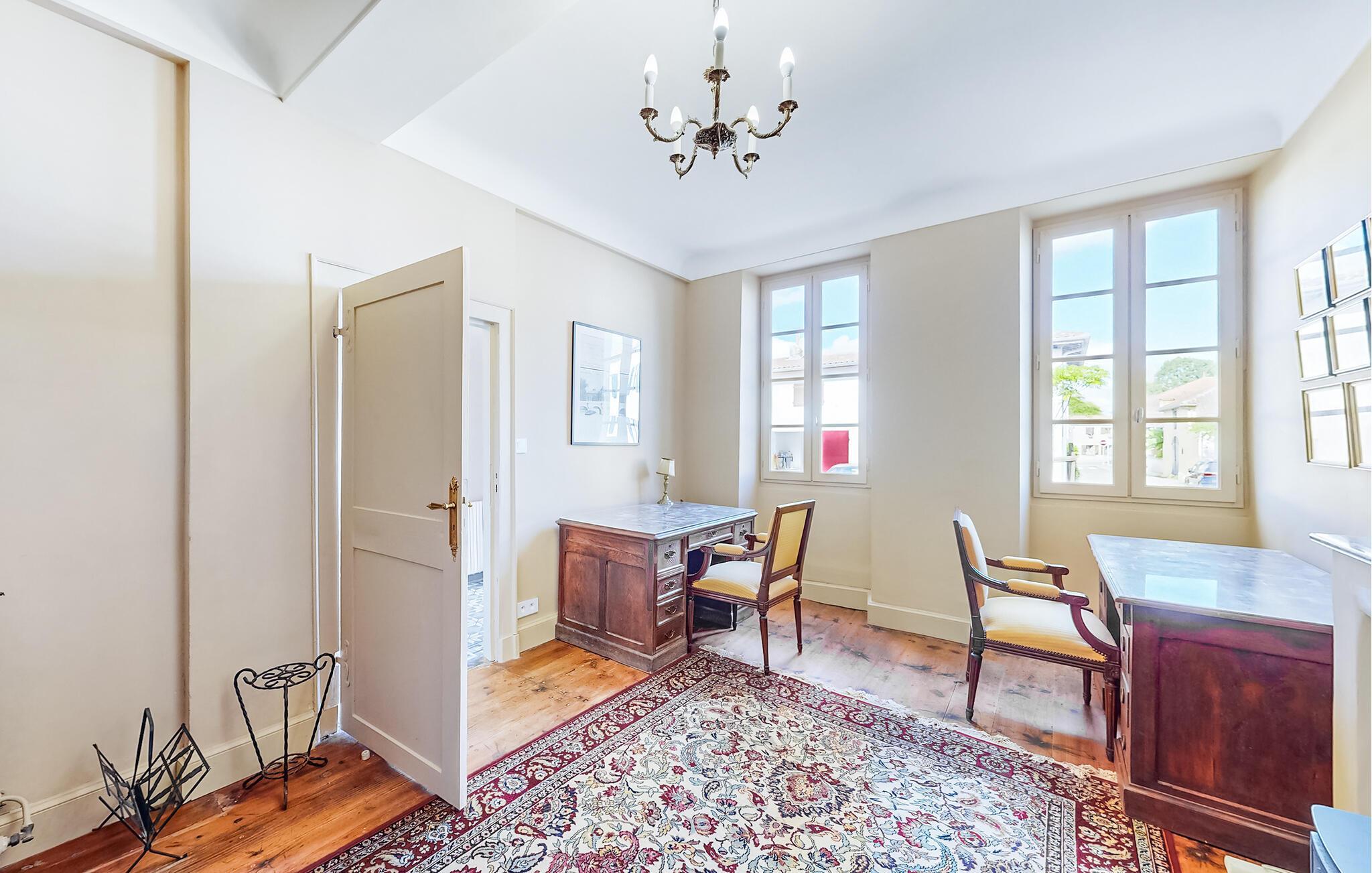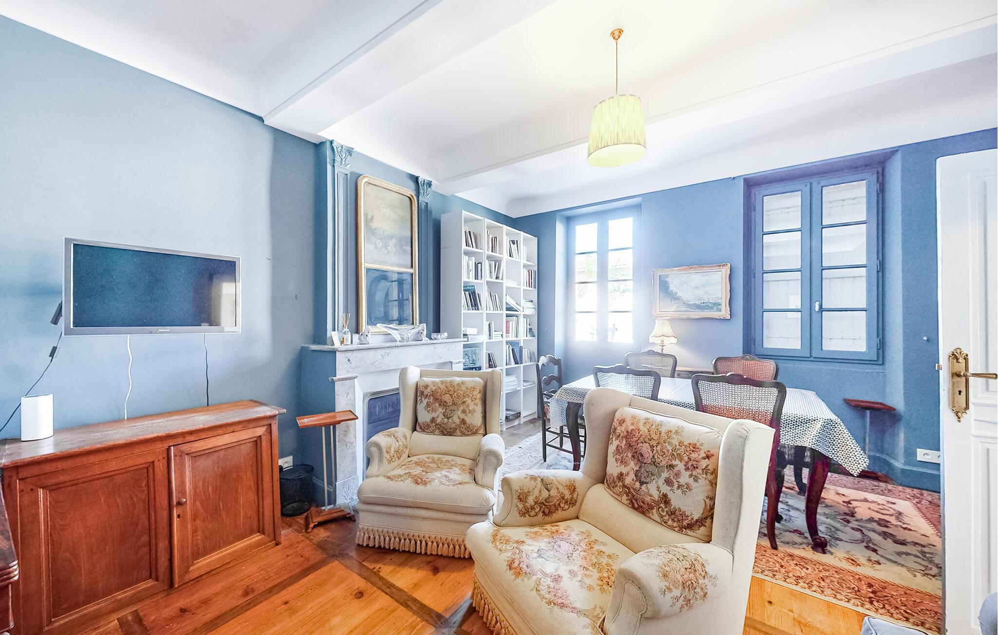 Den eleganta interiören i huset kombinerar traditionell stil med modern komfort. Slå dig ner i det rymliga vardagsrummet, som är möblerat med fina möbler och en mysig vedeldad spis. Njut av utsikten över trädgården genom de stora fönstren, som släpper in mycket ljus och skapar en mysig atmosfär. Tillaga läckra måltider i det charmiga lantköket, som du kan njuta av i den eleganta matsalen med rustika träbjälkar. Terrassen inbjuder till avkopplande kvällar utomhus medan du njuter av lugnet i trädgården och fågelkvittret.
