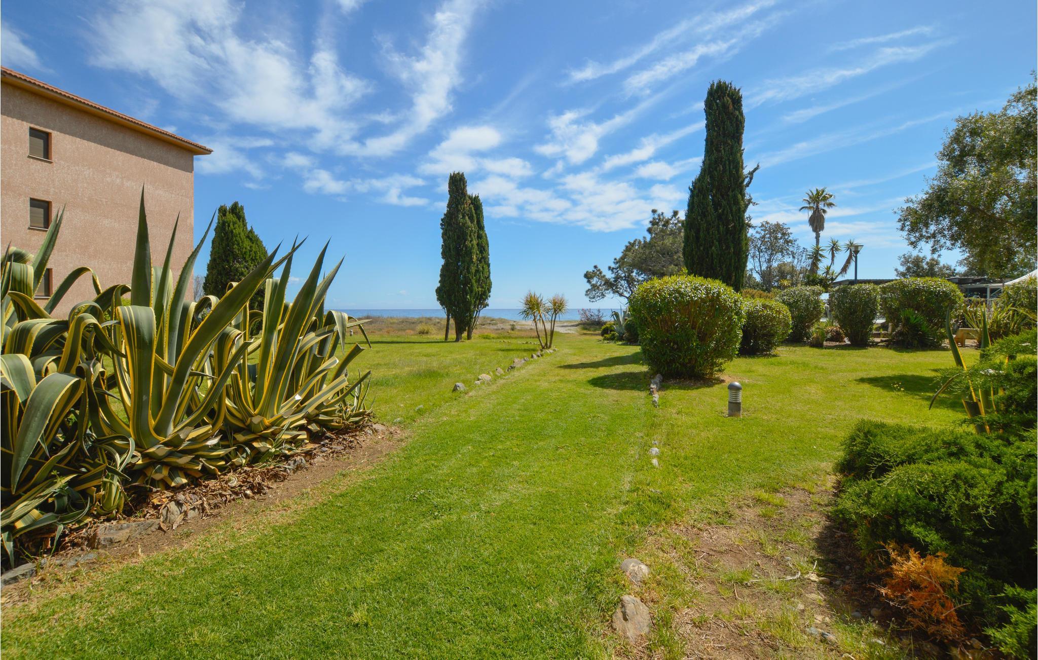 Den rymliga medelhavsträdgården med palmer och pinjeträd utstrålar en sydlig känsla och lockar med en stor gemensam pool där du kan svalka dig som du vill. Spela tennis eller använd den direkta tillgången till stranden för att ta ett dopp i det turkosblå Medelhavet.