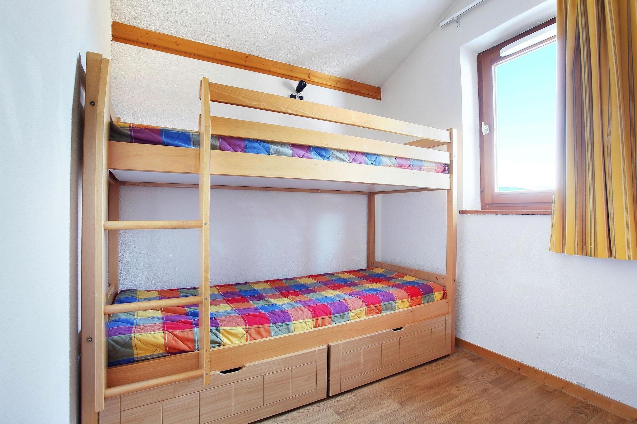 Öppet kök(spis(Spis med 4 kokplattor, elektrisk), kaffebryggare, mikrovågsugn, diskmaskin, kylskåp), ardags- och matrum(bäddsoffa), sovrum(dubbelsäng), sovrum(våningssäng), badrum(dusch eller badkar), WC, skidförvaring(gemensam entré), balkong, swimmingpool(delas med andra gäster , uppvärmd)