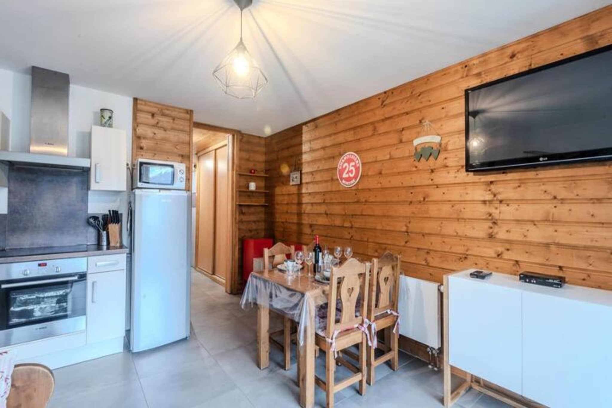 Denna ljusa 2-stjärniga studiostuga, belägen på 3:e våningen, erbjuder en bekväm och bekväm vistelse för 2-4 personer. Med en yta på 30 m² är studion idealiskt belägen bara 5 minuters promenad från byns centrum och backarna, med en pendelhållplats i närheten för enkel tillgång till skidområdena. Lägenheten ligger i sydostläge och ger gott om dagsljus och vacker utsikt. Det fullt utrustade köket har kylskåp, ugn, keramikhäll, mikrovågsugn, diskmaskin, kaffebryggare och fläkt. Vardagsrummet har en soffa och tillgång till en balkong. Ett bergshörn med våningssängar (130x190 cm) ger extra sovutrymme. Gästerna kan njuta av närliggande attraktioner som den livliga byns centrum, skidbackar och lokala butiker. Studion har också ett duschrum med WC, skidskåp, privat parkering under tak och en källare (tillgänglig på sommaren). Tjänster som badrumsprodukter, sängkläder, bäddade sängar vid ankomst och slutstädning ingår, med undantag för köket. Husdjur är inte tillåtna och lägenheten är rökfri. En deposition på 500 EURO krävs före ankomst. Turistskatten ska betalas före ankomst.