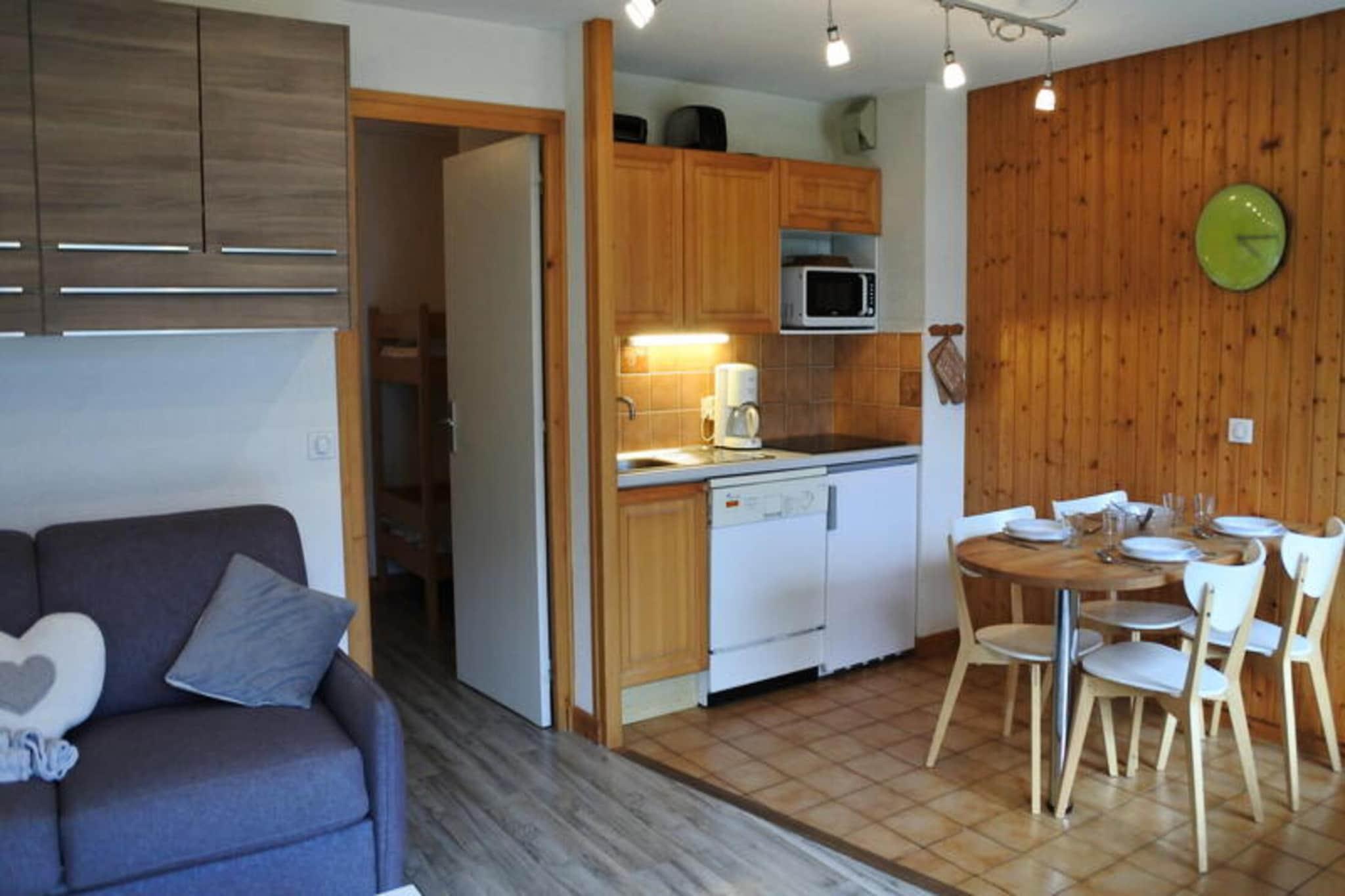 Denna mysiga studio på 25 m² ligger på första våningen i Residence Le Picaron, bara 200 meter från Morzines centrum och skidbackarna, vilket gör den till en idealisk bas för både vinter- och sommaräventyr. Med en sydostlig exponering har studion gott om naturligt ljus. Residenset ligger bara en kort promenad från Morzines livliga centrum, där du hittar en mängd olika butiker, restauranger och afterski-ställen. Under sommaren förvandlas området till ett nav för vandring, mountainbike och att utforska den omgivande naturen. Gästerna kan njuta av bekvämligheten med en icke-privat parkeringsplats och komforten med inkluderade tjänster som hushålls- och handdukar, bäddade sängar vid ankomst och slutstädning (exklusive köket). Utforska allt som Morzine har att erbjuda, från skidåkning på vintern till vandring under de varmare månaderna. Den rymmer bekvämt upp till 4 gäster, och har ett välutrustat pentry med induktionshäll, diskmaskin, mikrovågsugn, kylskåp och nödvändiga apparater som en kaffebryggare, raclettemaskin, fondueset, vattenkokare och brödrost. Vardagsrummet har en bäddsoffa och vetter mot en balkong eller terrass, perfekt för att njuta av den friska bergsluften. Ett särskilt bergsområde med våningssängar erbjuder extra sovutrymme. Lägenheten har även ett badrum, separat toalett och ett skidskåp för din bekvämlighet.