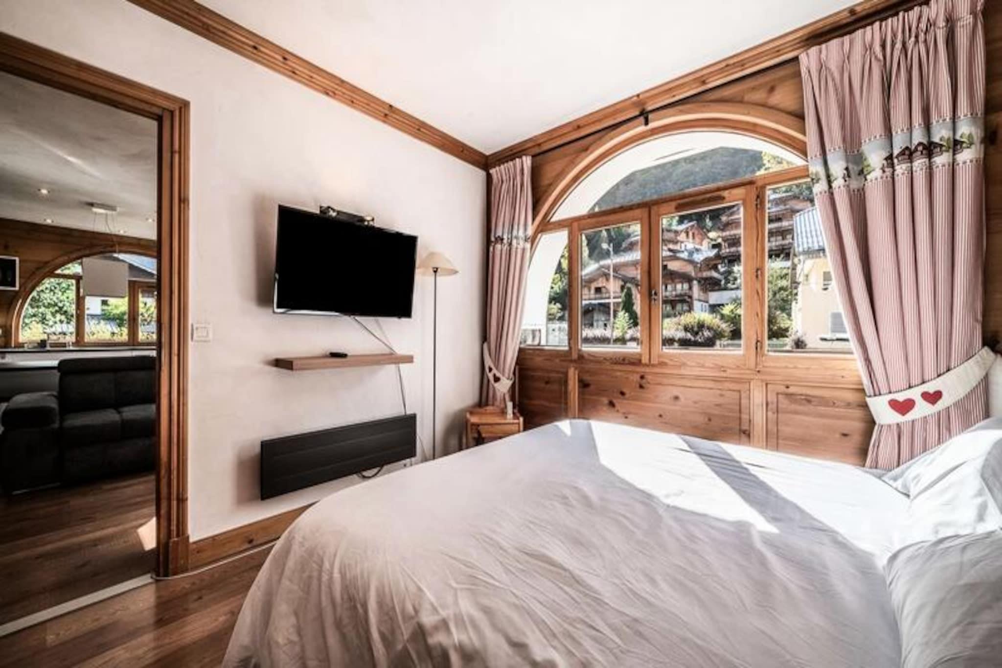Fastigheten tillsammans med en rymlig planlösning erbjuder en bekväm vistelse för upp till 6 gäster i en smakfullt renoverad lägenhet med två sovrum. Boendet har ett dubbelrum med eget badrum och toalett, samt ett andra sovrum med två våningssängar och en dubbelsäng, komplett med ett duschrum. Ytterligare bekvämligheter inkluderar ett vardagsrum med öppet kök, ett stort omklädningsrum och separat toalett. Gästerna kommer att uppskatta inkluderandet av linne (bäddade sängar vid ankomst), gratis slutstädning och tillgång till två utomhusparkeringsplatser. Detta boende är tillgängligt för personer med funktionshinder, även om husdjur inte är tillåtna, och cyklar/skidor kan inte förvaras inne i lägenheten. Boendet ligger i ett lugnt område och har ett bekvämt läge bredvid en hållplats för gratis pendelbuss, vilket ger enkel tillgång till Morzines centrum och de närliggande skidliftarna. Det centrala läget gör att gästerna kan utforska lokala attraktioner, butiker och restauranger, allt inom kort avstånd. Residenset är också medlem i Summer Multipass, vilket ger besökarna tillgång till olika aktiviteter under sommaren. Morzine är lättillgängligt med kollektivtrafik, med välanslutna busslinjer och tågstationer i närheten. De närmaste flygplatserna ligger också inom rimligt avstånd, vilket gör det till en idealisk destination för besökare året om. Lägenheten har ett fullt utrustat öppet kök, komplett med moderna apparater, som erbjuder ett praktiskt utrymme för att laga mat. Ett skidskåp och källare finns för förvaring, och boendet erbjuder uppvärmning för att garantera en bekväm vistelse. Fastighetens genomtänkta design och bekvämligheter, såsom inkluderandet av linne och städtjänster, gör det till ett bekvämt val för dem som vill utforska området samtidigt som de njuter av ett välskött och tillgängligt boende.
