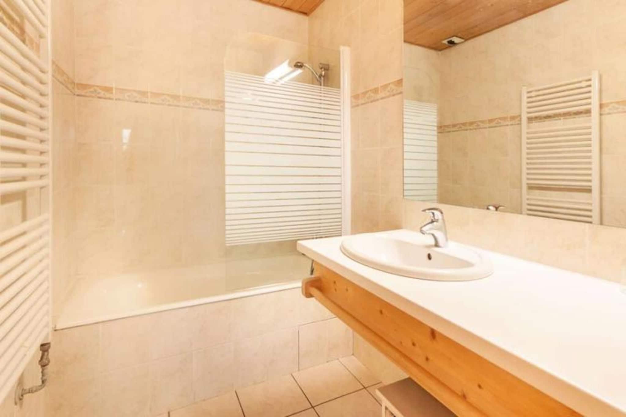 Lägenheten ligger på bottenvåningen i en privat stuga och erbjuder ett rymligt vardagsrum och matplats med tillgång till en balkong, perfekt för att njuta av utsikten. Det öppna köket är fullt utrustat med diskmaskin, ugn och mikrovågsugn, så att gästerna enkelt kan laga mat under sin vistelse. Lägenheten har ett sovrum med dubbelsäng, ett sovrum med två enkelsängar och ett annat sovrum med dubbelsäng som rymmer upp till 6 personer. Ett badrum och en separat toalett kompletterar inredningen. Utomhusparkering är tillgänglig för extra bekvämlighet, och lägenheten har även Wifi, TV och en tvättmaskin för en bekväm vistelse. Lägenheten ligger bara 5 minuter från byns centrum och erbjuder enkel tillgång till både backarna och lokala butiker, restauranger och afterski-ställen. Pleney-backarna är direkt åtkomliga, vilket gör den perfekt för dem som vill ta sig ut i skidbackarna med minimal ansträngning. På sommaren drar lägenheten nytta av sitt deltagande i Summer Multipass-programmet, vilket ger tillgång till en mängd olika utomhusaktiviteter. Medan turistskatten är en extra kostnad, erbjuder lägenheten alla nödvändiga bekvämligheter för en avkopplande och bekväm vistelse. Hyran inkluderar lakan, handdukar, påslakan och badmattor, vilket säkerställer att gästerna har allt de behöver för en bekväm vistelse.