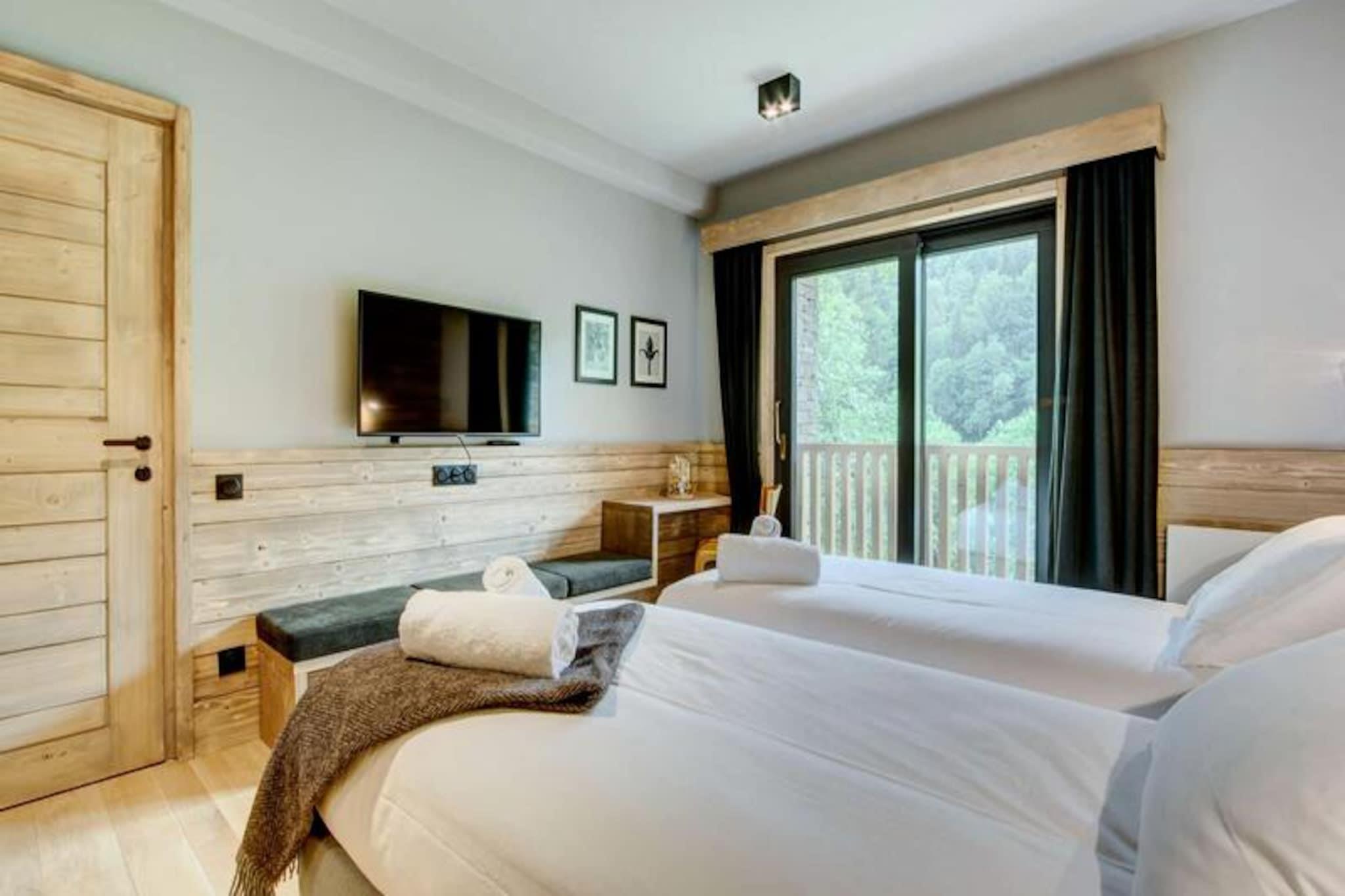Denna exceptionella nya lyxchalet ligger bara 5 minuter från stadens centrum och 500 meter från backarna och Nyons linbana, och erbjuder den perfekta miljön för en avkopplande men äventyrlig vistelse. Med en gratis pendelhållplats precis intill fastigheten har du enkel tillgång till allt resorten har att erbjuda. Stugan har också moderna bekvämligheter som ett utomhusspa, bastu, gym, skidrum och tvättstuga. För extra bekvämlighet finns utomhusparkering och sängarna är bäddade vid ankomsten med lakan och handdukar. Städning efter mitten av vistelsen och slutstädning ingår också, vilket gör din vistelse bekymmersfri. Beläget i närheten av backarna, butikerna och restaurangerna, är den här fastigheten idealisk för skidåkning på vintern och njuta av den fantastiska utsikten över bergen på sommaren, med ett Multipass-partnerskap för extra förmåner. Husdjur är inte tillåtna och cyklar eller skidor är inte tillåtna inne i stugan. Stugan sträcker sig över tre våningar och innehåller sex vackert inredda sovrum, alla med eget badrum. Bland höjdpunkterna finns ett rymligt vardagsrum med dubbelt högt tak och en mysig vedspis, ett öppet kök med en bardel och en matsal som mynnar ut i vardagsrummet.