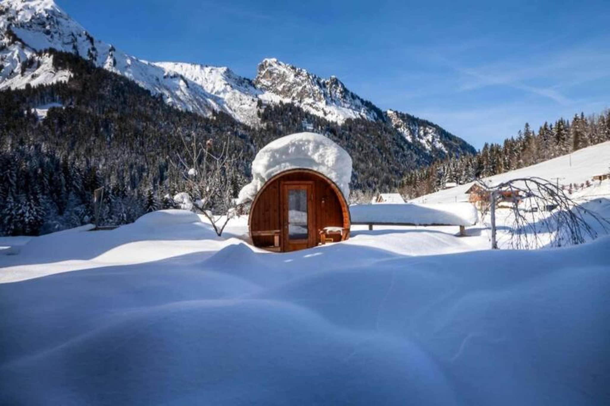 Fastigheten, tillsammans med sin rymliga layout, rymmer bekvämt upp till 8 gäster på tre våningar. Stugan har fyra sovrum, vart och ett möblerat med två enkelsängar, och tre välutrustade badrum med dusch och toalett. Det inbjudande vardagsrummet har en mysig lounge med vedspis och tillgång till en balkong med vacker utsikt över bergen. Ytterligare bekvämligheter inkluderar ett garage för skidor och cyklar, en tvättstuga med tvättmaskin och torktumlare samt en trädgård med bastu, matbord utomhus och en grill. Boendet erbjuder höghastighetsfiber-Wi-Fi, och viktiga tjänster som lakan och handdukar ingår, tillsammans med slutstädning. Inbäddat i den fridfulla och soldränkta Vallée de la Manche, har stugan ett lugnt läge med hisnande utsikt över bergen. Det är bekvämt beläget bredvid en gratis pendelhållplats, och erbjuder enkel tillgång till resortens skidbackar och närliggande attraktioner. Två lokala restauranger ligger inom gångavstånd och erbjuder matställen. Området är en del av Summer Multipass-programmet, som ger tillgång till en rad utomhusaktiviteter som vandring och cykling. De närmaste transportförbindelserna inkluderar lokalbuss och tillgång till resortens främsta bekvämligheter. Stugans kök är fullt utrustat med moderna apparater, inklusive en ugn, spis och alla nödvändiga redskap för att enkelt laga mat. Gästerna kan njuta av den öppna planlösningen som sömlöst förbinder köket med vardagsrum och matsal. Fastighetens värmesystem garanterar en bekväm vistelse året runt, och den medföljande trädgården, komplett med bastu och grill, erbjuder ett perfekt utrymme för avkoppling efter en dag av att utforska bergen.
