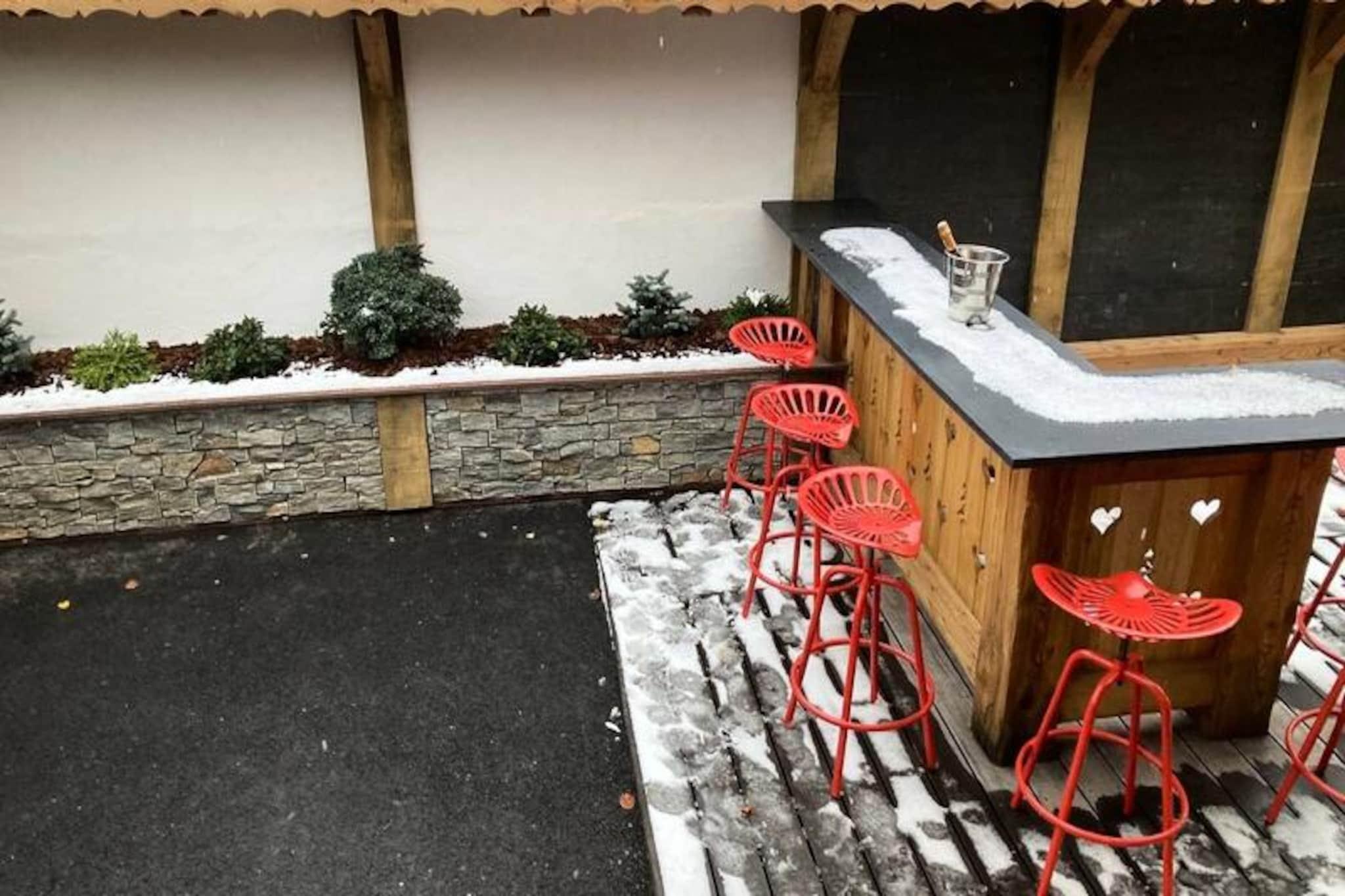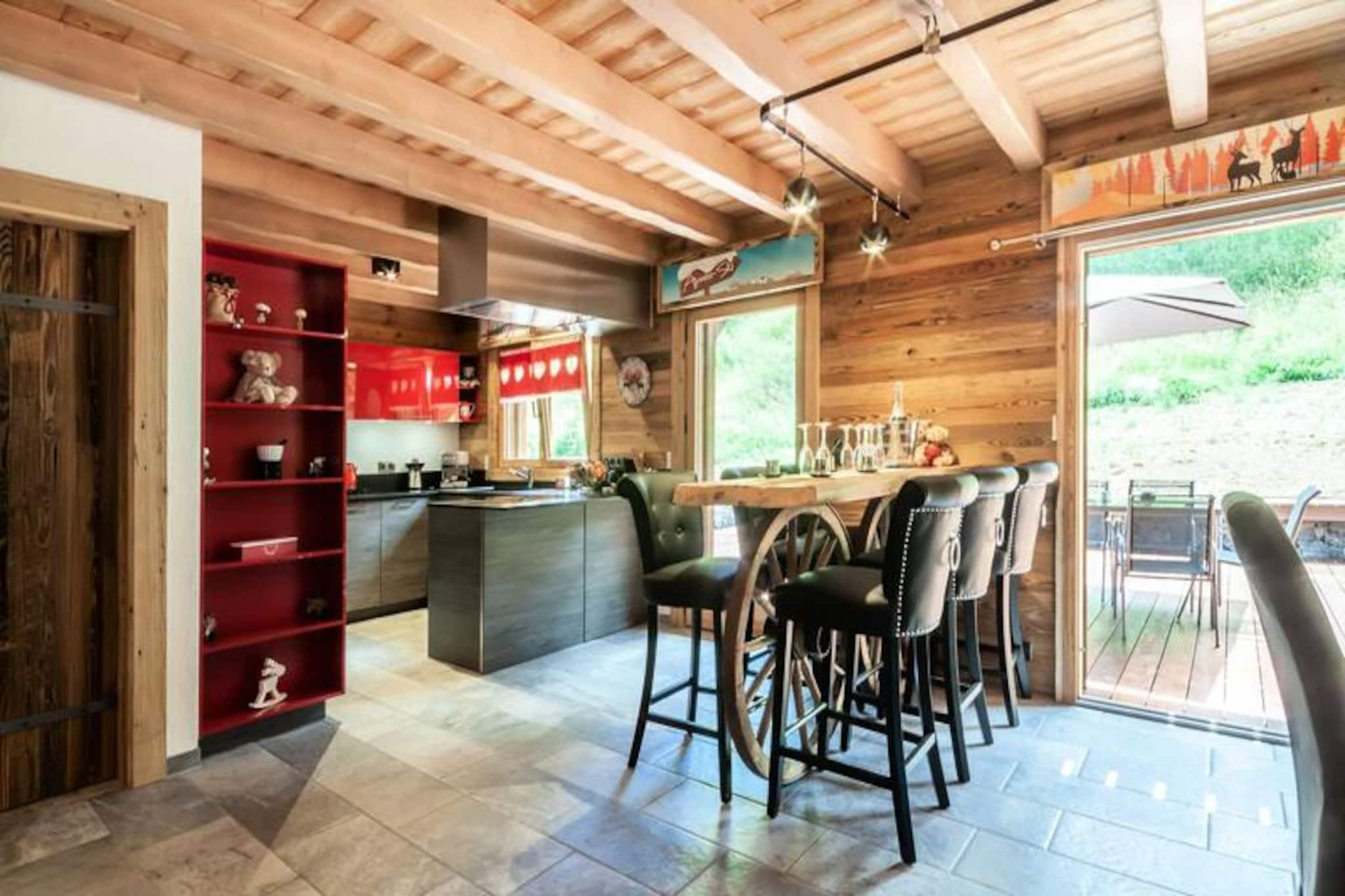 Denna magnifika nya, exklusiva chalet erbjuder rymligt och lyxigt boende, perfekt för upp till 10 personer. Fastigheten har fem sovrum, med en blandning av dubbelsängar och enkla våningssängar, varje rum utrustade med en TV för extra bekvämlighet. Det finns också två extra sovplatser, en i en mezzanin och den andra i ett dubbelrum med eget badrum. Stugan erbjuder en rad bekvämligheter, såsom en stor terrass med tillgång till jacuzzi, ett skidrum med pjäxtork och en relaxlounge med bastu. Gratis Wi-Fi, kabel, satellit och Netflix finns tillgängliga för underhållning, och vardagsrummet värms upp av en pelletskamin. Fastigheten är husdjursvänlig och erbjuder ett utomhusutrymme där husdjur kan ströva fritt, även om rökning inte är tillåten inomhus. Stugan är bekvämt belägen längs vägen till La Plagne, bara en kort 10-minuters promenad från affärerna och med enkel tillgång till centrum och skidliftarna. Det ligger också på den kostnadsfria pendelbussen som förbinder gästerna till Super Morzine och Pleney, vilket gör det lätt att nå populära skidområden. Stugan är idealisk för vinter- och sommarsemester, med Summer Multipass som erbjuder rabatter på lokala aktiviteter. Besökare kan också njuta av närliggande attraktioner, och med gott om parkeringsplatser kan gästerna enkelt utforska den omgivande regionen med bil. Det välutrustade köket vetter mot en rymlig matplats, med moderna apparater som en raclettemaskin, fondueset och en stengrill för matlagning. Dessutom finns en grillplats för matlagning utomhus under de varmare månaderna.