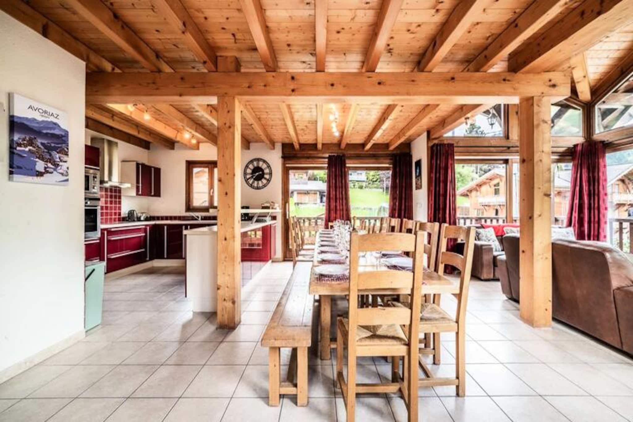 Denna rymliga chalet, som ligger på Route de la Plagne, erbjuder enkel tillgång till Morzines centrum och skidliftarna, bara 10 minuters promenad från butikerna. Den kostnadsfria pendellinjen trafikerar bekvämt Super Morzine och Pleney, vilket gör det enkelt att utforska området. Stugan är perfekt för stora grupper, med en bifogad lägenhet och flera våningar med boyta. Med tre utomhusparkeringsplatser, Wi-Fi och alla nödvändiga bekvämligheter är denna stuga perfekt för en avkopplande eller actionfylld semester. Närliggande attraktioner inkluderar skidbackarna, vandringslederna och Morzines livliga stadskärna, som erbjuder shopping, restauranger och livliga afterski-alternativ. Som Summer Multipass Partner ger stugan också tillgång till rabatterade sommaraktiviteter i området. På bottenvåningen kan du njuta av ett garage med pingisbord, skid- och cykelförråd, tvättstuga med tvättmaskin och torktumlare och en skotork. På första och andra våningen finns fem bekväma sovrum, alla med eget duschrum och ett rymligt vardagsrum med vardagsrum, öppen spis och modernt kök. Matsalen har utsikt över bergen och sittplatser för upp till 17 gäster, perfekt för stora måltider. Stugan har även ett TV-rum och spelrum på andra våningen och ett kontorsområde på tredje våningen. Annexlägenheten erbjuder extra utrymme, med vardagsrum, kök och sovrum med eget duschrum.