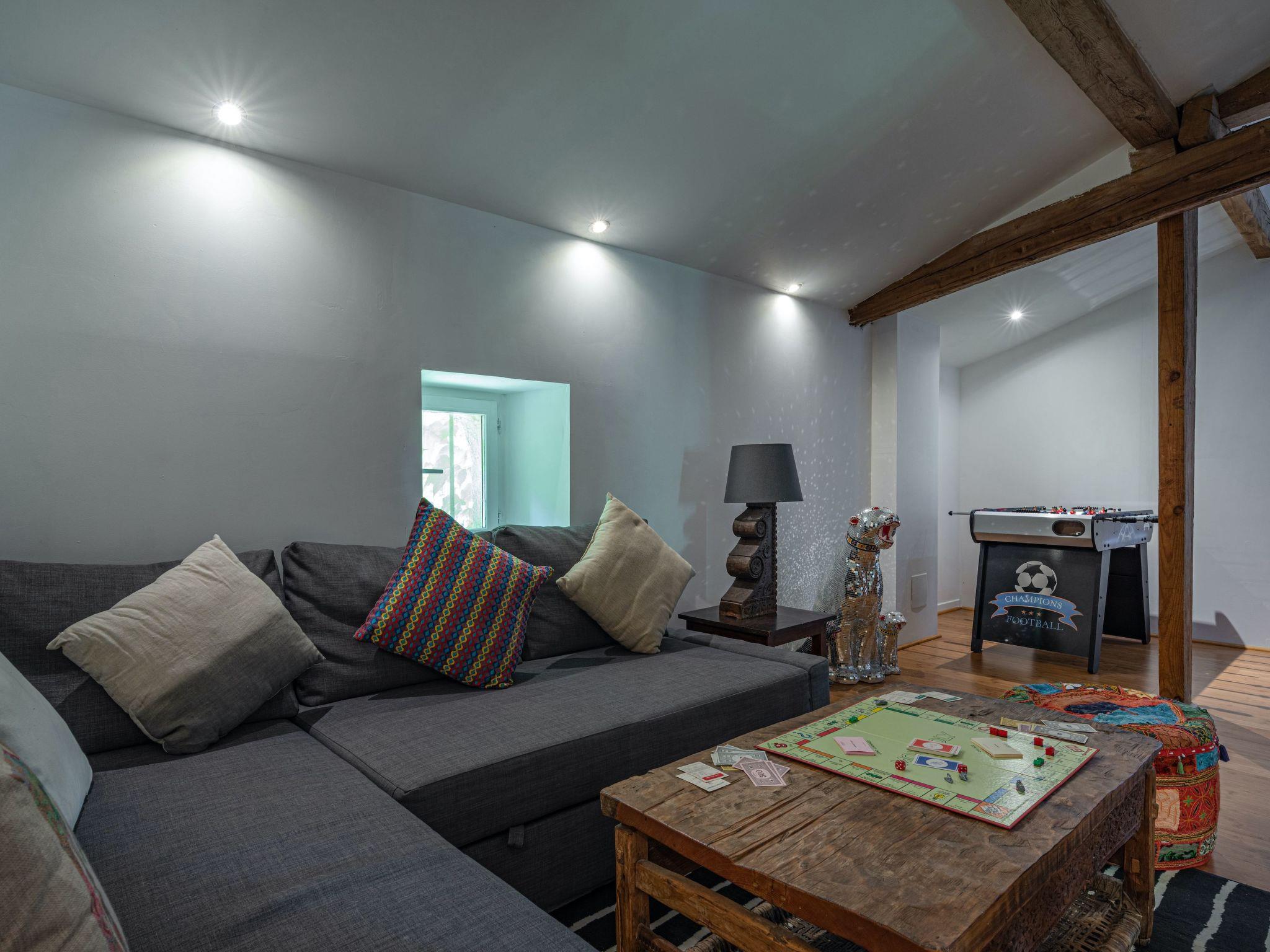Inside, L'Airial Moustey boasts a well-equipped modern kitchen with all the appliances you could need, including an American fridge-freezer. On the ground floor, two welcoming double bedrooms and a bathroom set the tone for a comfortable stay. The heart of the home features a cozy dining room with an open working fireplace and a large living room with a woodburner, perfect for gathering. Upstairs, three generously sized bedrooms, a games room or central hallway with a sofa bed, and two additional bathrooms offer ample space for relaxation and play.