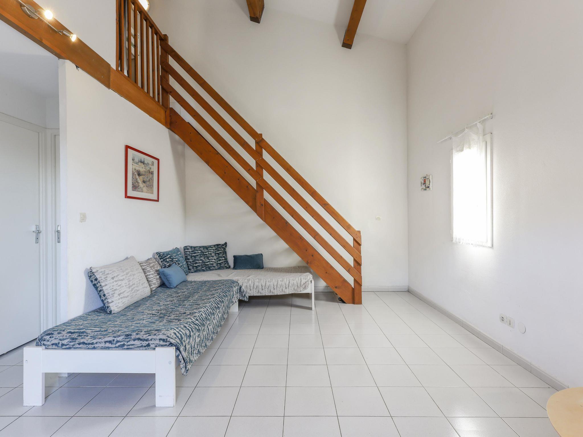 2-room apartment 48 m2 on 2 levels. Living/dining room with 2 beds (90 cm, length 190 cm), TV (flat screen). Exit to the terrace. Kitchenette (oven, 4 ceramic glass hob hotplates, microwave, freezer, electric coffee machine). Shower, sep. WC. Upper floor: open gallery with 1 x 2 bunk beds (90 cm, length 190 cm). 1 room with 1 french bed (160 cm, length 190 cm). Electric heating, air-conditioning. Terrace 11 m2. Balcony furniture. Facilities: washing machine, baby cot. Internet (WiFi, extra). Parking. Please note: maximum 1 pet/ dog allowed. Smoke alarm. Instead of an enclosed bedroom, some sleeping areas are located in an open-plan area (gallery, alcove, etc.). Offer by a private individual according to Art. 155, IV of CGI. FR6639.145.1