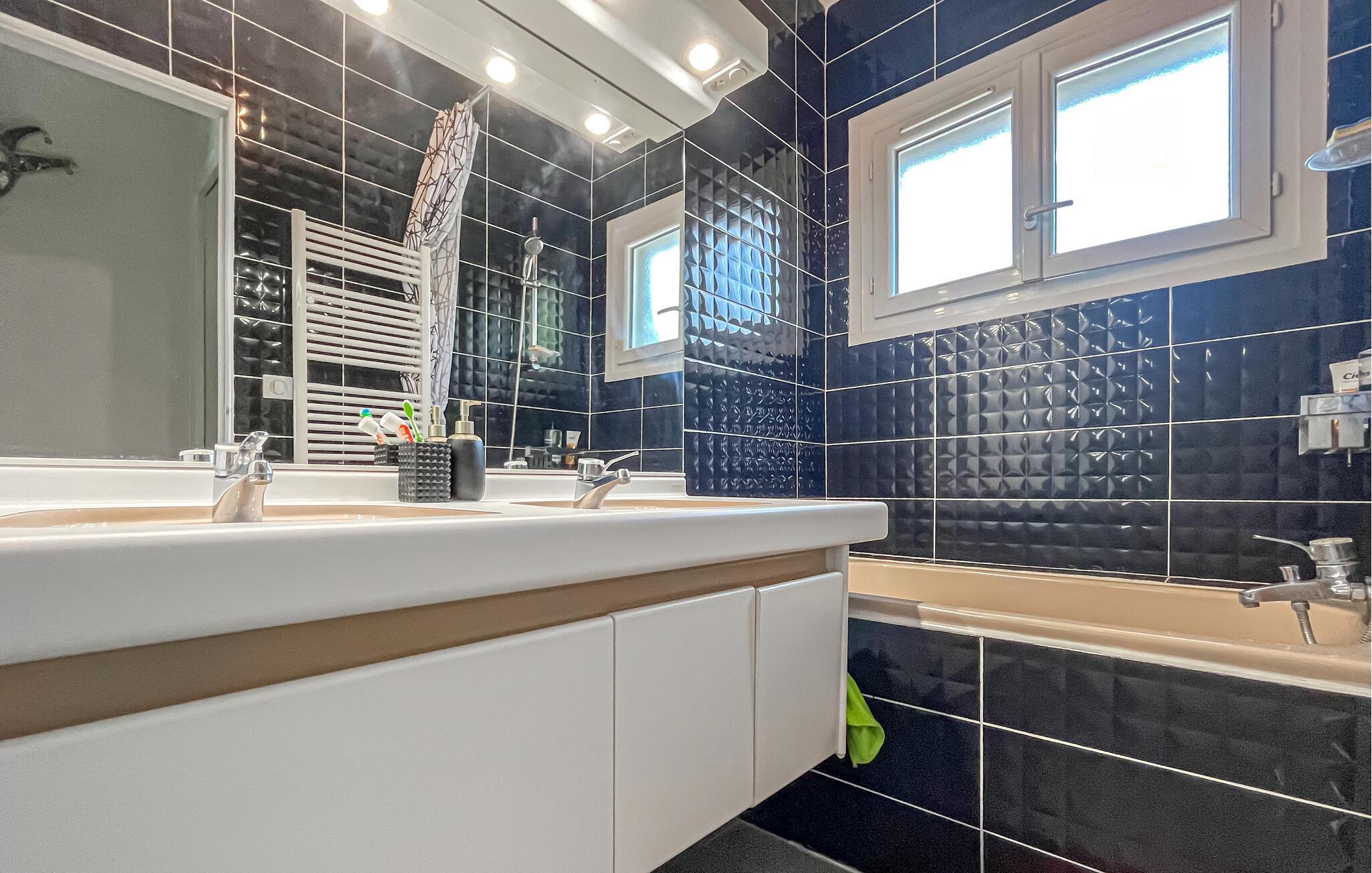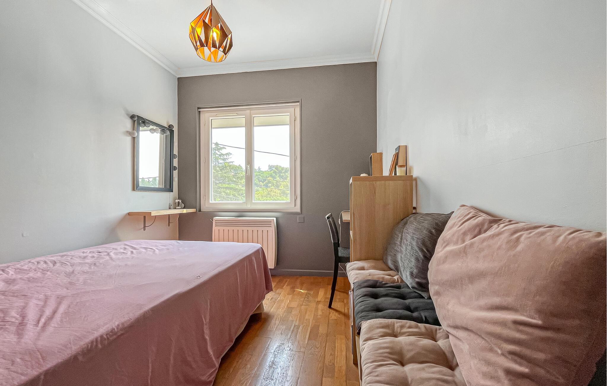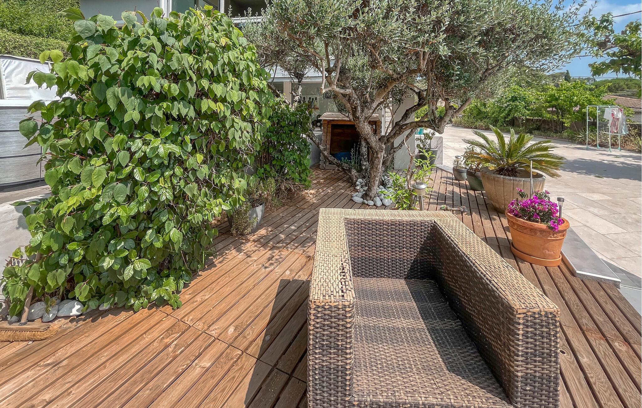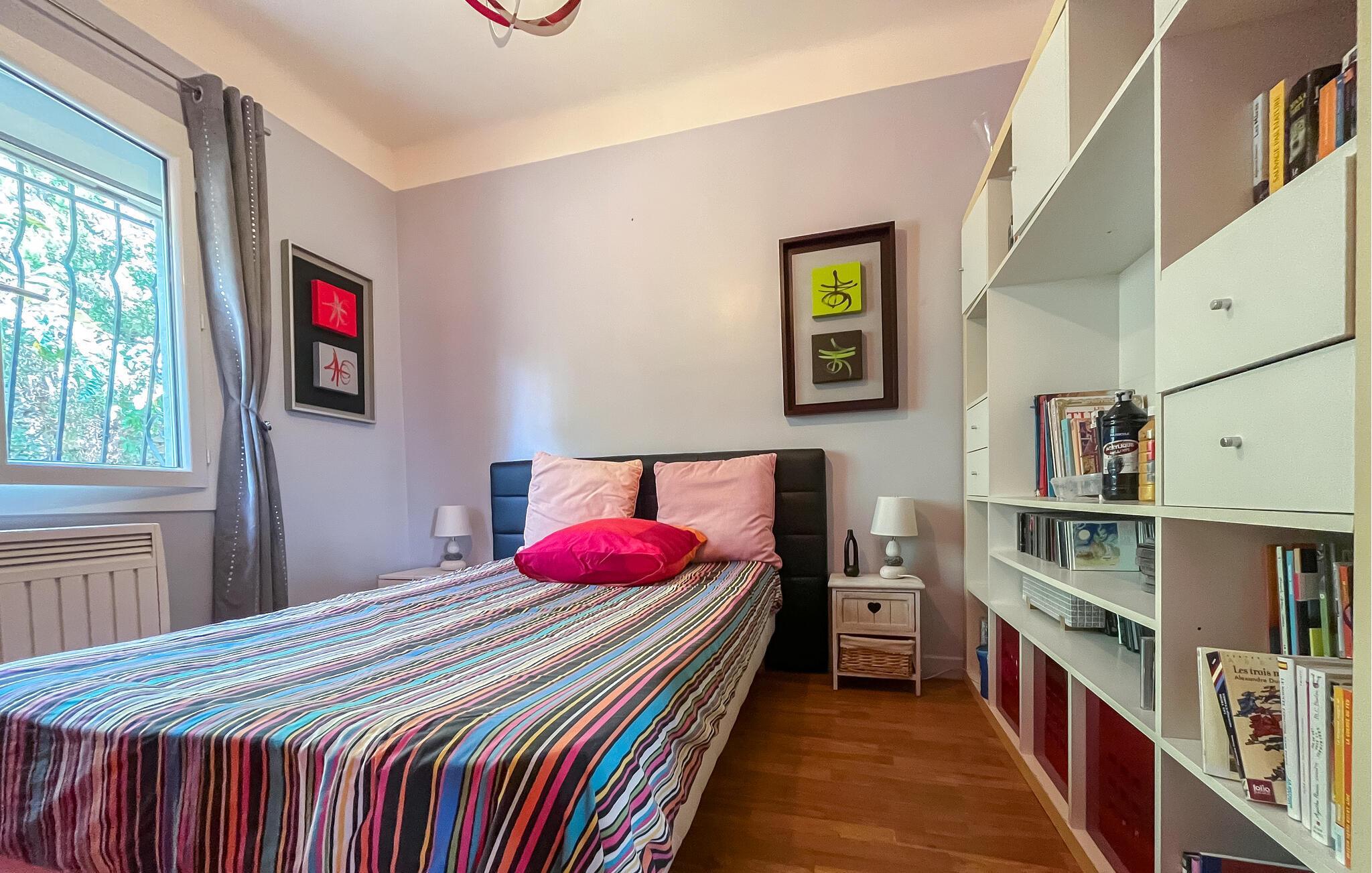 Detta rymliga och smakfullt moderniserade semesterhus ligger på höjderna av Nîmes och erbjuder dig den perfekta utgångspunkten för en mängd olika aktiviteter. Tillaga kulinariska höjdpunkter med färska produkter från veckomarknaden och slå dig ner i den ljusa matplatsen med panoramafönster. Använd den rymliga soffgruppen för mysiga läsesessioner eller sällskapliga spelkvällar.