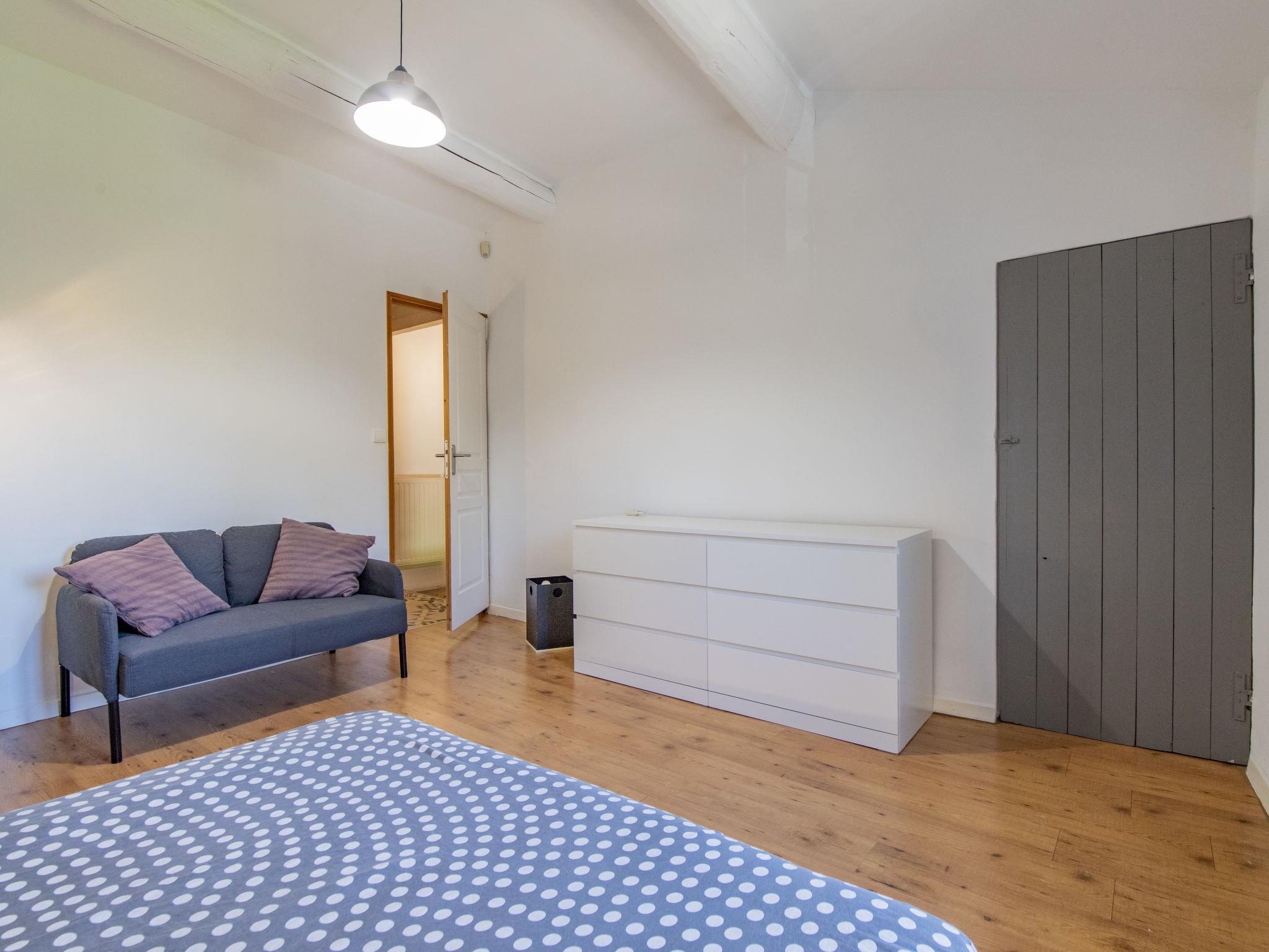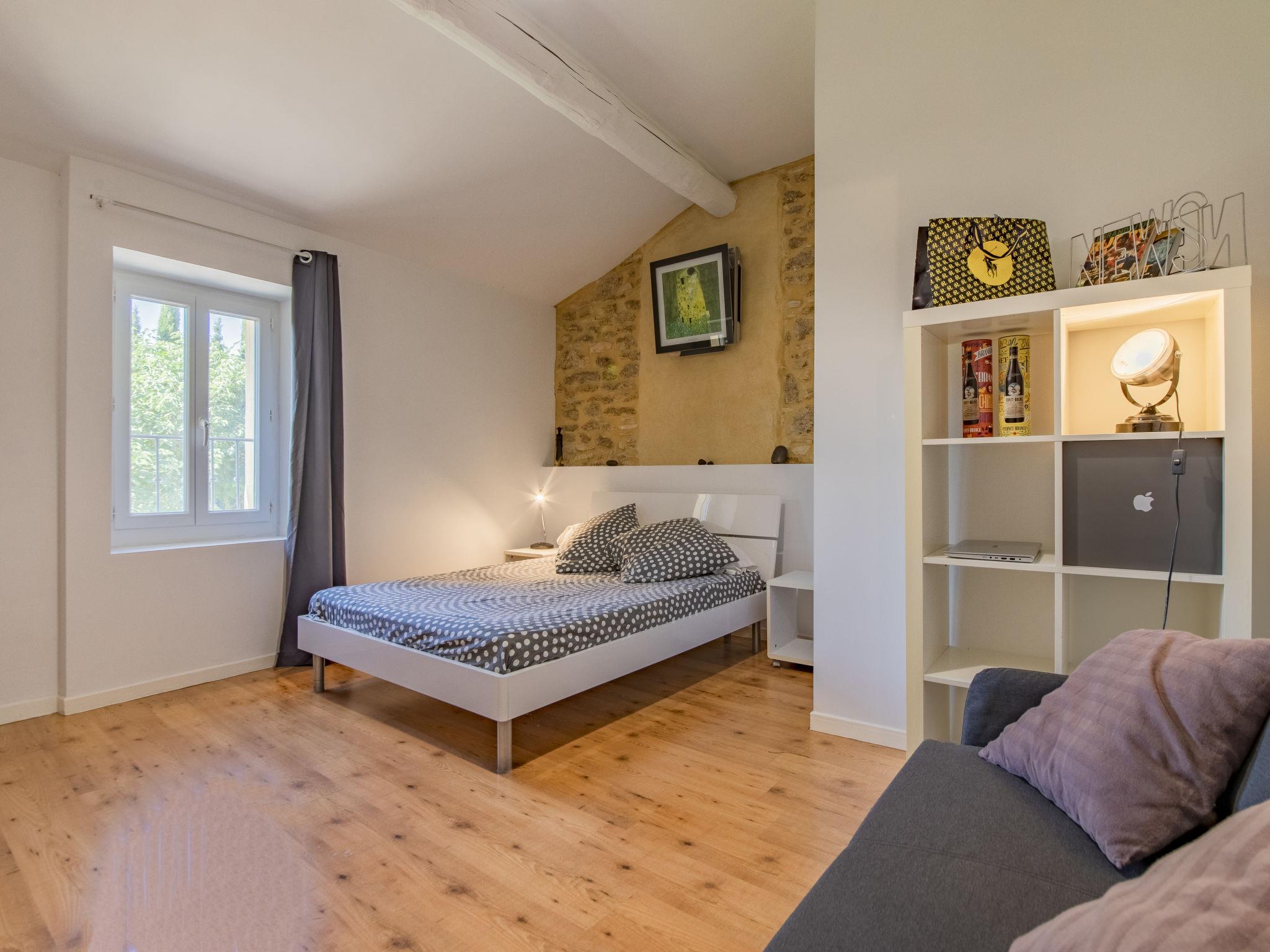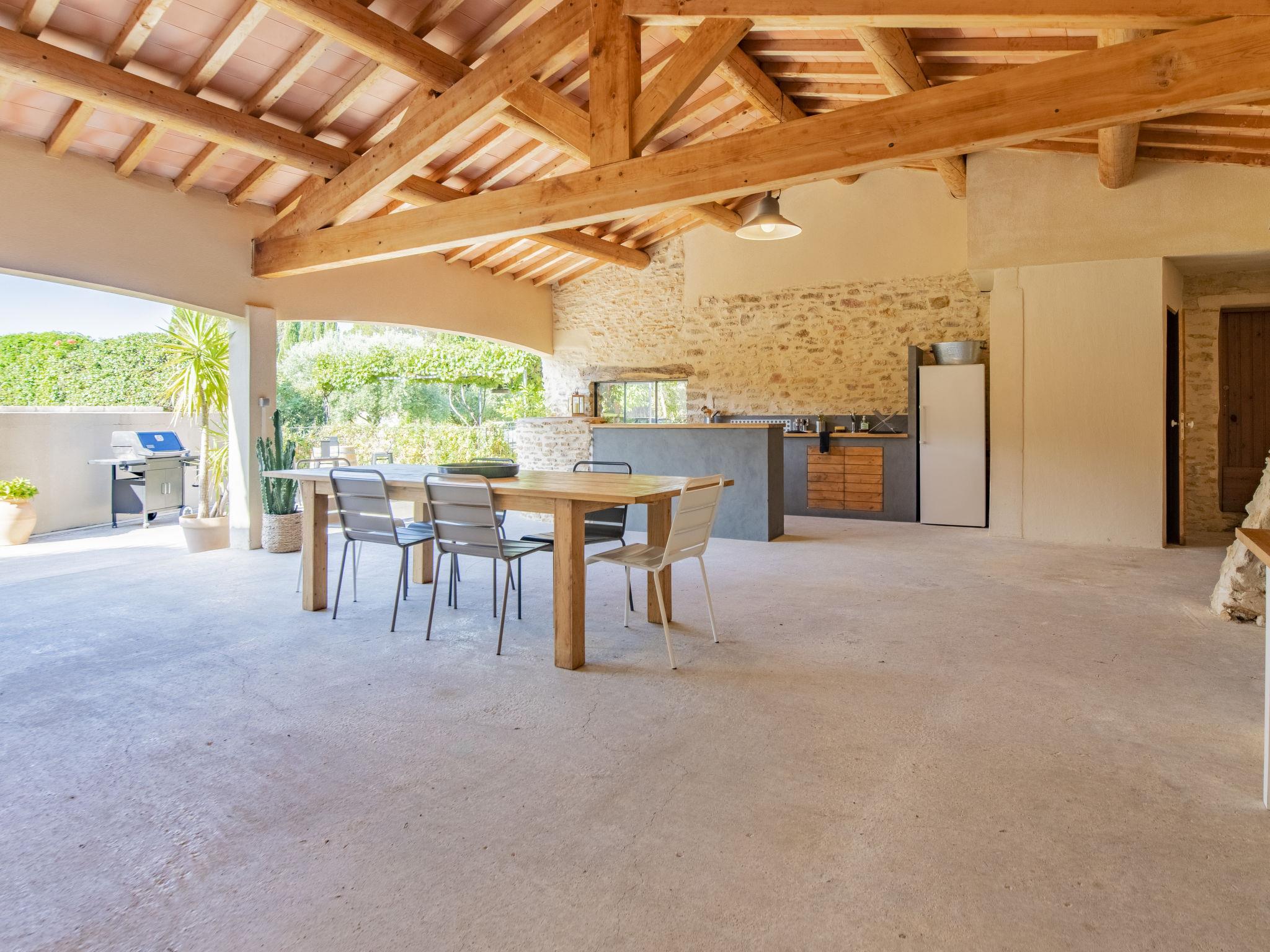 Pool house 80mq with full summer kitchen (fridge, hotplates, barbecue) and WC. Mas "Le Mas des Buis", renovated in 2016. In the resort 1.5 km from the centre of Uchaux. Private: property 4'500 m2 (fenced), swimming pool (10 x 5 m, depth 140 - 140 cm, seasonal availability: 01.Jun. - 30.Sep.). Linen change weekly. Towel change weekly. Room cleaning weekly (included). Parking on the premises. Shop 1.5 km, supermarket 5 km, restaurant 500 m, bakery 150 m, bus stop "Centre Serignan du Comtat" 4.3 km. Nearby attractions: Orange 8 km, Vaison la Romaine 32 km, Avignon 41 km, Mont Ventoux 62 km. Please note: car recommended. Suitable for families.