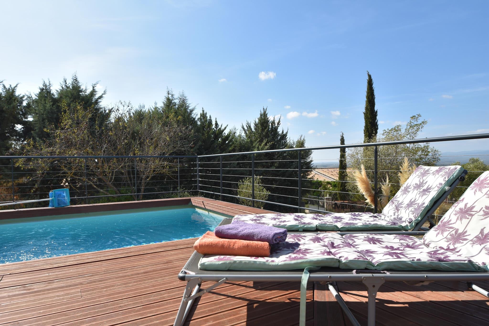 Bo i detta vackra semesterhus med privat pool, helt luftkonditionerat och beläget i ett lugnt område nära byn Oupia. Boendet ligger vid foten av en kulle, mindre än en timme från Medelhavets stränder. Perfekt för semester med familj eller vänner! Oupia är en idealisk bas för att utforska denna vackra region. Du hittar flera restauranger och kaféer inom en radie på 8 km. Upplev en guidad cykel- eller mountainbiketur till Narbonne (23 km), hyr en båt på Canal du Midi (30 km) och besök fantastiska Carcassonne. Flera vandringsleder startar från byn. Lac de Jouarès, med en vacker strand och vattensporter på sommaren (vindsurfing, segling), ligger 6 km bort. Byar som Minerve och Olonzac är också väl värda ett besök. Cirka 30 km från den vackra medeltida staden Carcassonne hittar du denna moderna och ljusa villa med stora burspråk. Det är omgivet av en vacker träterrass med utsikt över gröna omgivningar. Köket och badrummen är mycket moderna och huset är elegant inrett.