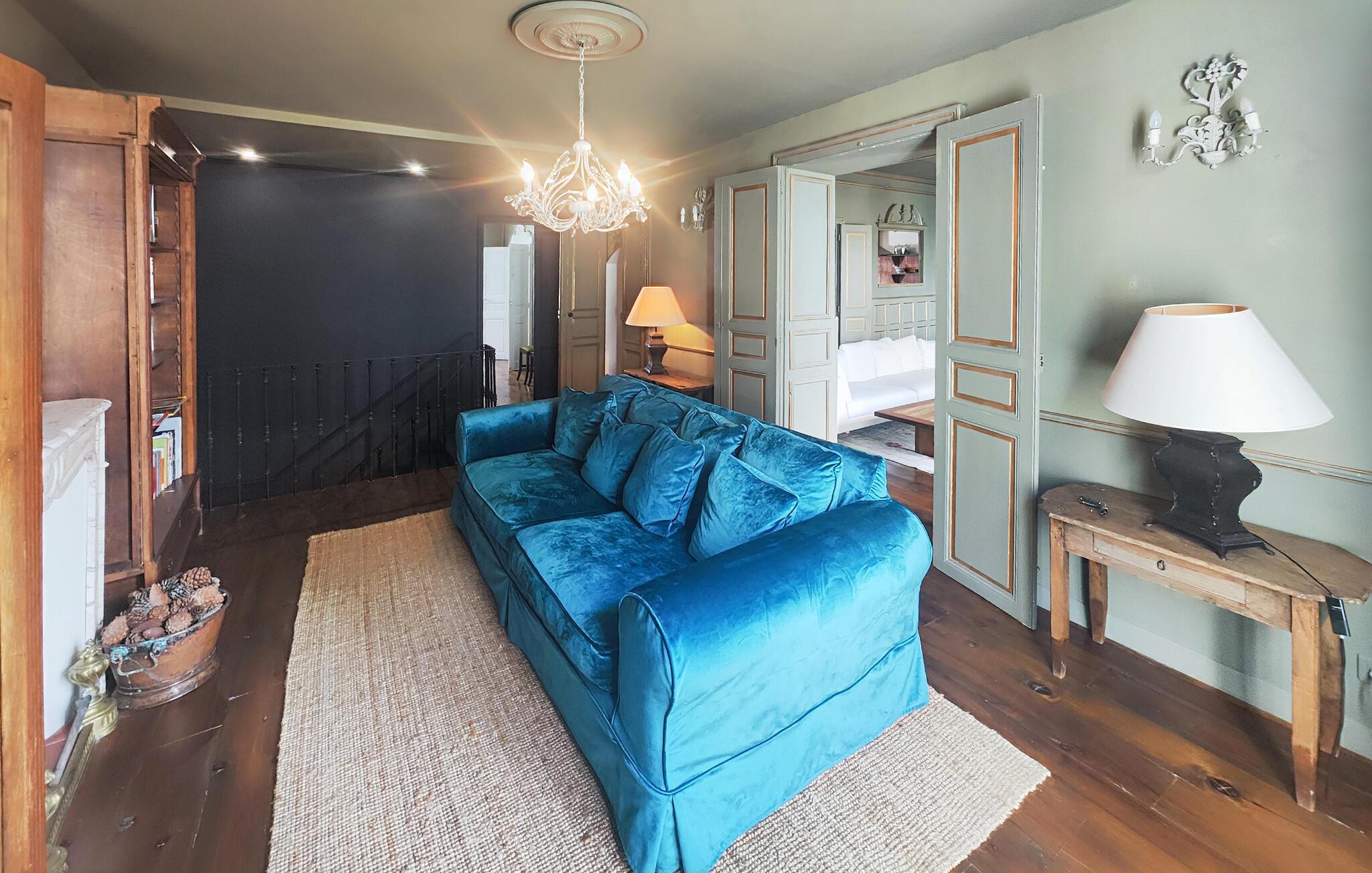 Detta charmiga hus är fullt av karaktär och historia. I vardagsrummet skapar högt i tak, elegant stuckatur och flygeln framför den öppna spisen en stilfull atmosfär medan du kopplar av i den stora vita soffan med en kopp te. På övervåningen finns ett charmigt bibliotek med väl tilltagna hyllor och mysiga fåtöljer som inbjuder till läsning och umgänge.