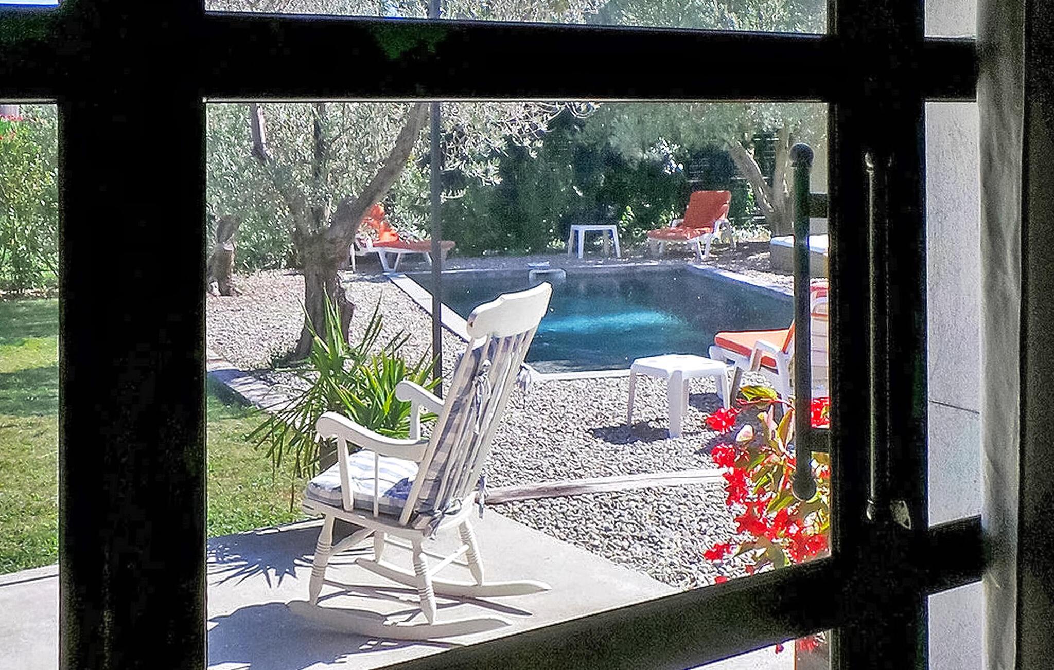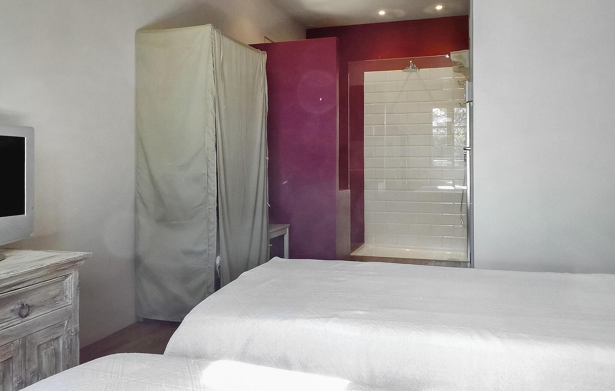 Denna villa ligger i Paradou, Alpilles, Provence, och erbjuder en fridfull semesterplats och boende i en lugn miljö inom gångavstånd från Paradous bycentrum och livsmedelsbutiker. Bottenvåningen i denna semesterlägenhet har ett välutrustat kök, en matplats, en mysig sittgrupp med soffor, en TV, en dekorativ öppen spis och ett skrivbord. På första våningen hittar du sovrummen. Utanför erbjuder fastigheten en skuggig terrass med pergola, matbord och grill för middagar utomhus. Villan har en privat, uppvärmd pool som mäter 7 x 3,60 meter, kompletterad med solstolar och solstolar för avkoppling. Huset ligger 10 minuters promenad från byns centrum med bageri, slaktare och snabbköp. Frukt- och grönsaksmarknad på onsdag morgon. Njut av din semester i Bouches-du-Rhône i Provence. Observera att även om det finns en ledstång utgör den öppna trappan en risk för små barn. Dessutom finns golvkyla på bottenvåningen, medan sovrummen på övervåningen är luftkonditionerade.