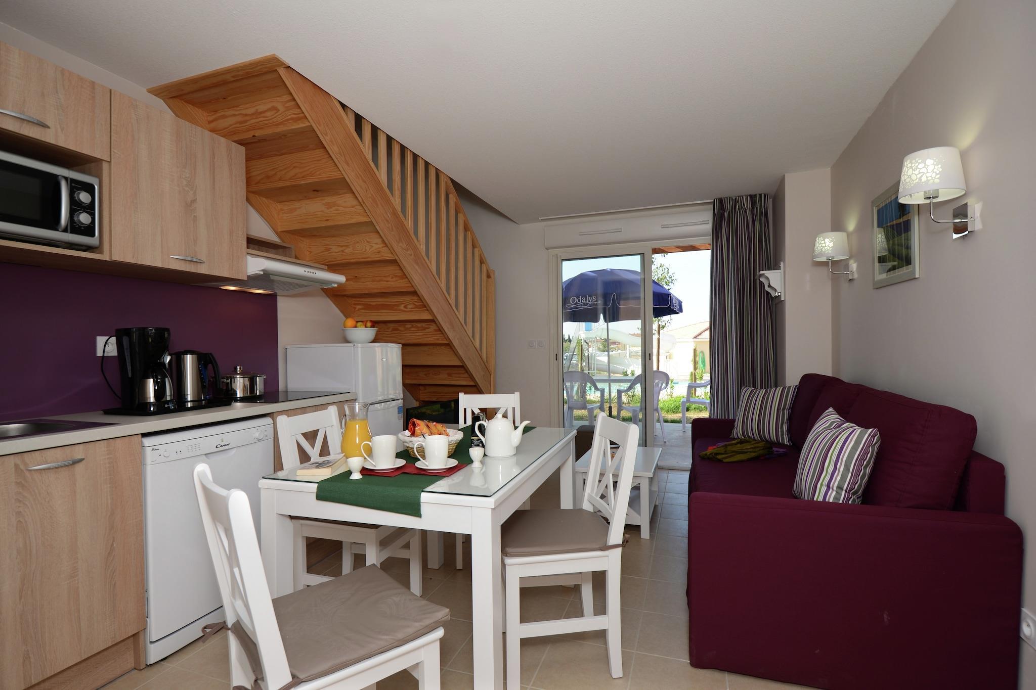 Bottenvåningen: (Öppet kök(spis(Spis med 4 kokplattor, keramisk), kaffebryggare, kombi ugn/mikro, diskmaskin, kylskåp), Vardags- och sovrum(bäddsoffa), sovrum(2x enkelsäng(90 x 190 cm)), badrum(dusch, toalett ), terrass, trädgårdsmöbler) På våning 1: (sovrum(dubbelsäng(160 x 190 cm)), badrum(badkar), WC) parkering, swimmingpool(delas med andra gäster , utanför, opened from Apr upto and including Sep), swimmingpool(delas med andra gäster , uppvärmd, tak)