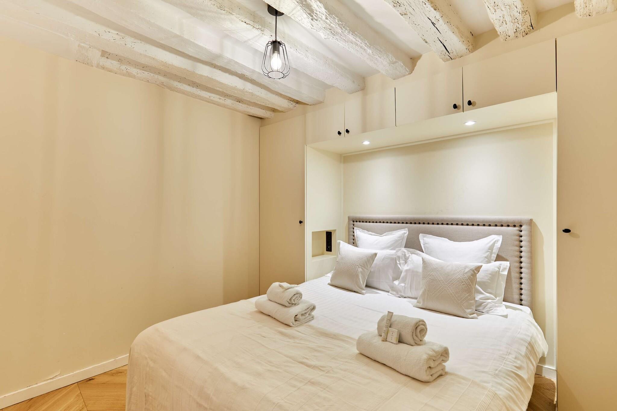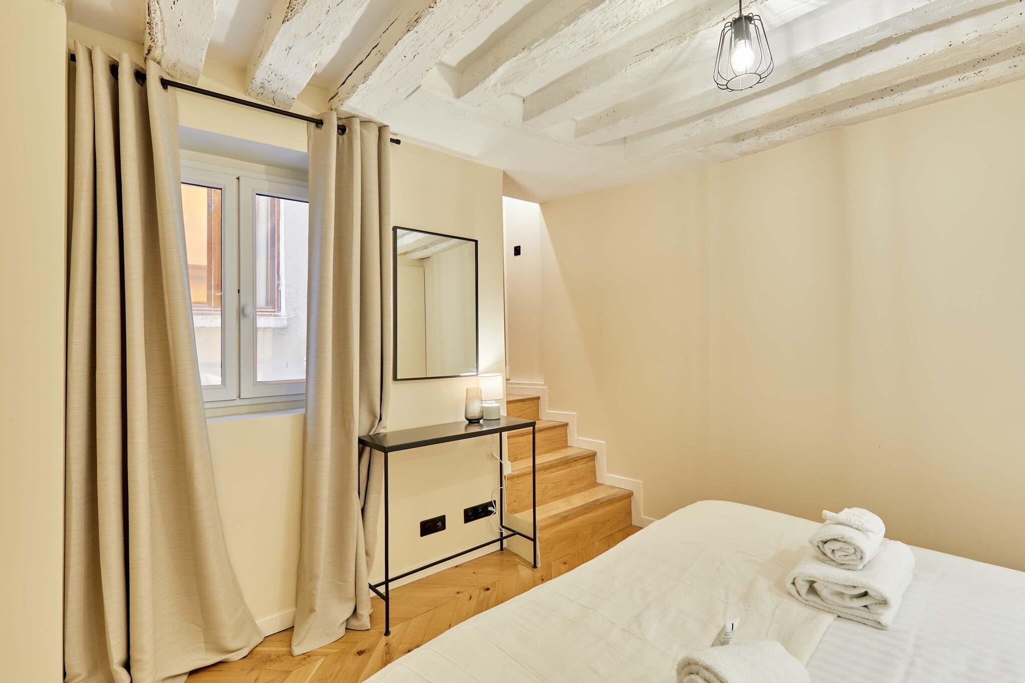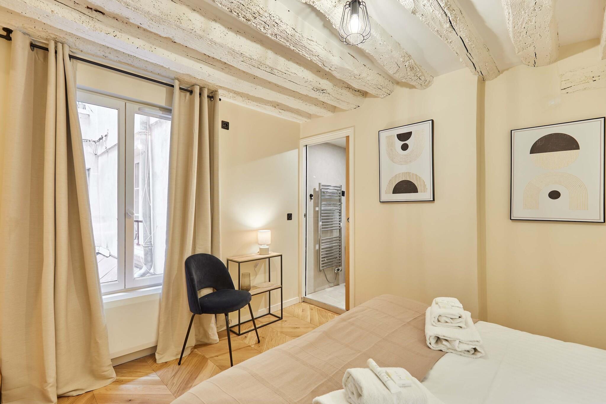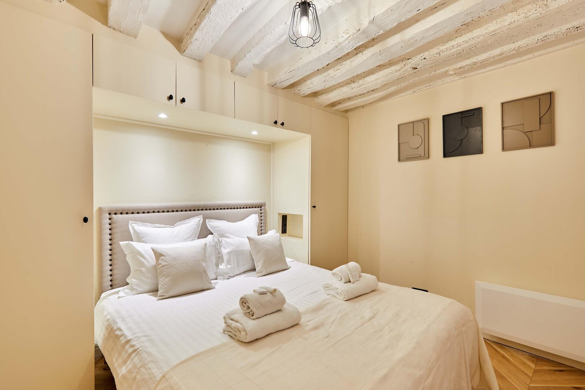 Upptäck denna lyxiga, luftkonditionerade lägenhet med 3 sovrum och 3 badrum, idealiskt belägen i hjärtat av Paris. Elegant, rymlig, omsorgsfullt möblerad och utrustad med kvalitetsmaterial, erbjuder den komfort och ett perfekt läge. Belägen mellan Marais, Beaubourg, Rue Montorgueil, Grands Boulevards och Place des Victoires, kommer du att vara omgiven av trendiga kaféer, restauranger, butiker och affärer. Det är den perfekta platsen för en minnesvärd vistelse med familj eller vänner.