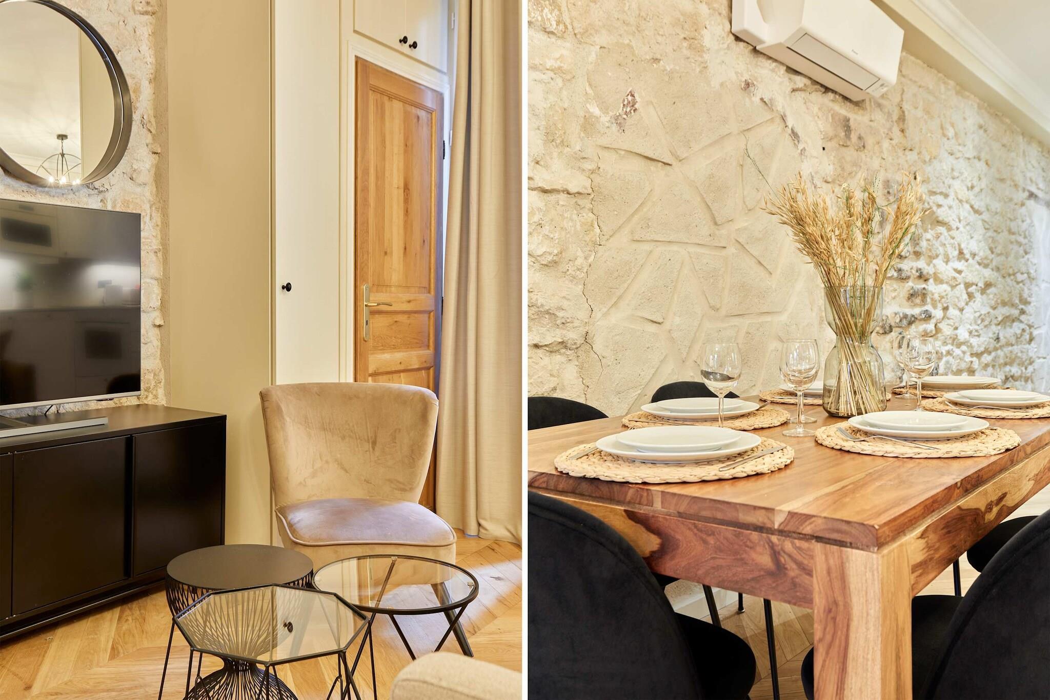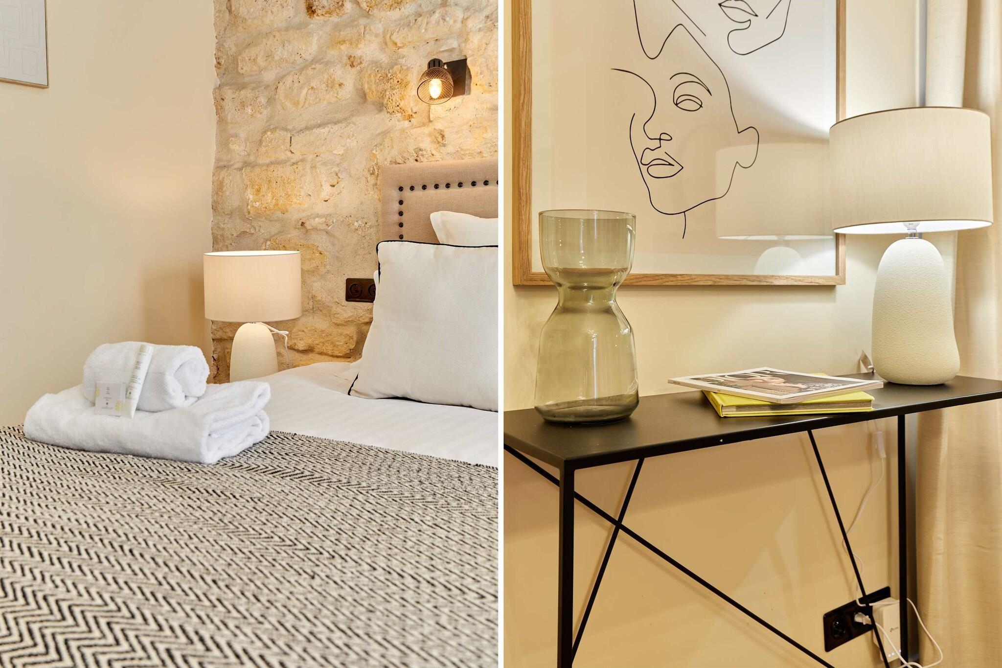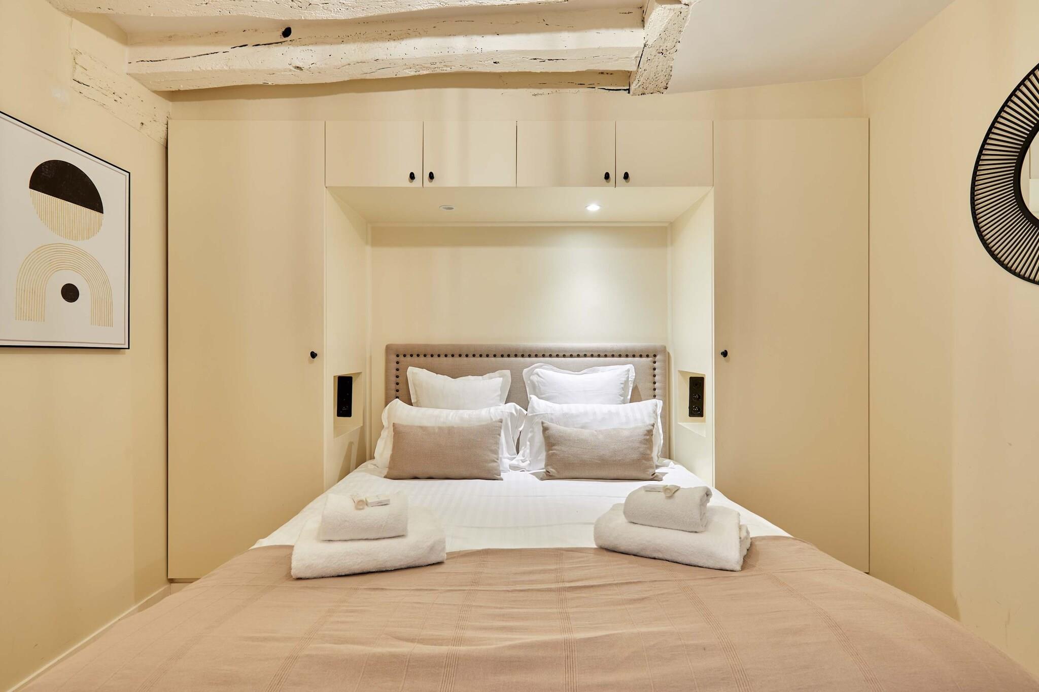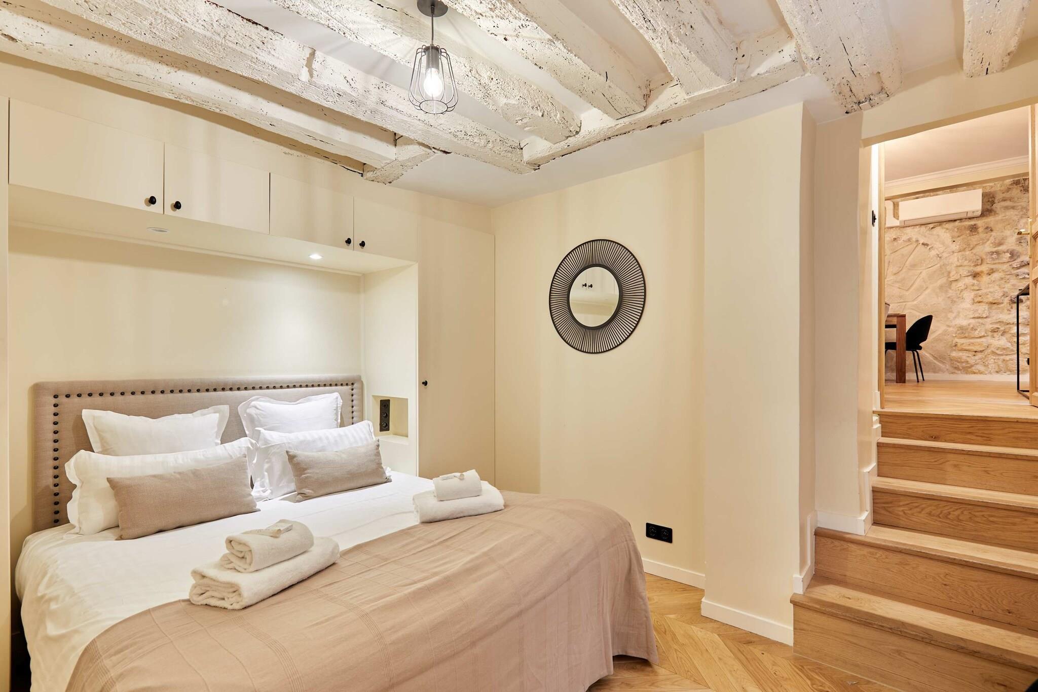 Upptäck denna lyxiga, luftkonditionerade lägenhet med 3 sovrum och 3 badrum, idealiskt belägen i hjärtat av Paris. Elegant, rymlig, omsorgsfullt möblerad och utrustad med kvalitetsmaterial, erbjuder den komfort och ett perfekt läge. Belägen mellan Marais, Beaubourg, Rue Montorgueil, Grands Boulevards och Place des Victoires, kommer du att vara omgiven av trendiga kaféer, restauranger, butiker och affärer. Det är den perfekta platsen för en minnesvärd vistelse med familj eller vänner.