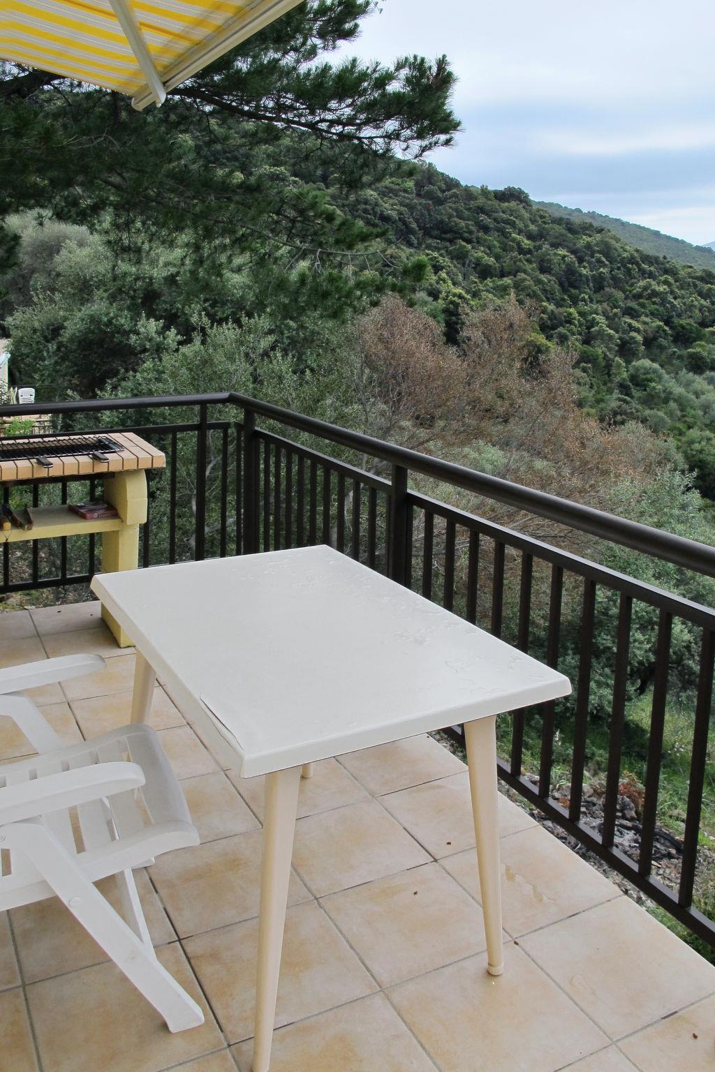 Small, cosy residence "Les Asphodeles", surrounded by trees. 6 houses in the residence. 18 apartments in the residence. 700 m from the centre of Partinello, 14 km from the centre of Porto, 150 km from the centre of Bastia, in a sunny, elevated position on a slope, 4 km from the sea, in the countryside. For shared use: terraced garden (fenced) with 2'000 m2, plants and trees, natural garden. Arbour, garden furniture. In the complex: internet access. Parking on the premises. Supermarket 14 km, bus stop 1 km, pebble beach "Caspiu" 4 km. Please note: car recommended. Residence with electric gates. The photograph shows a typical example.