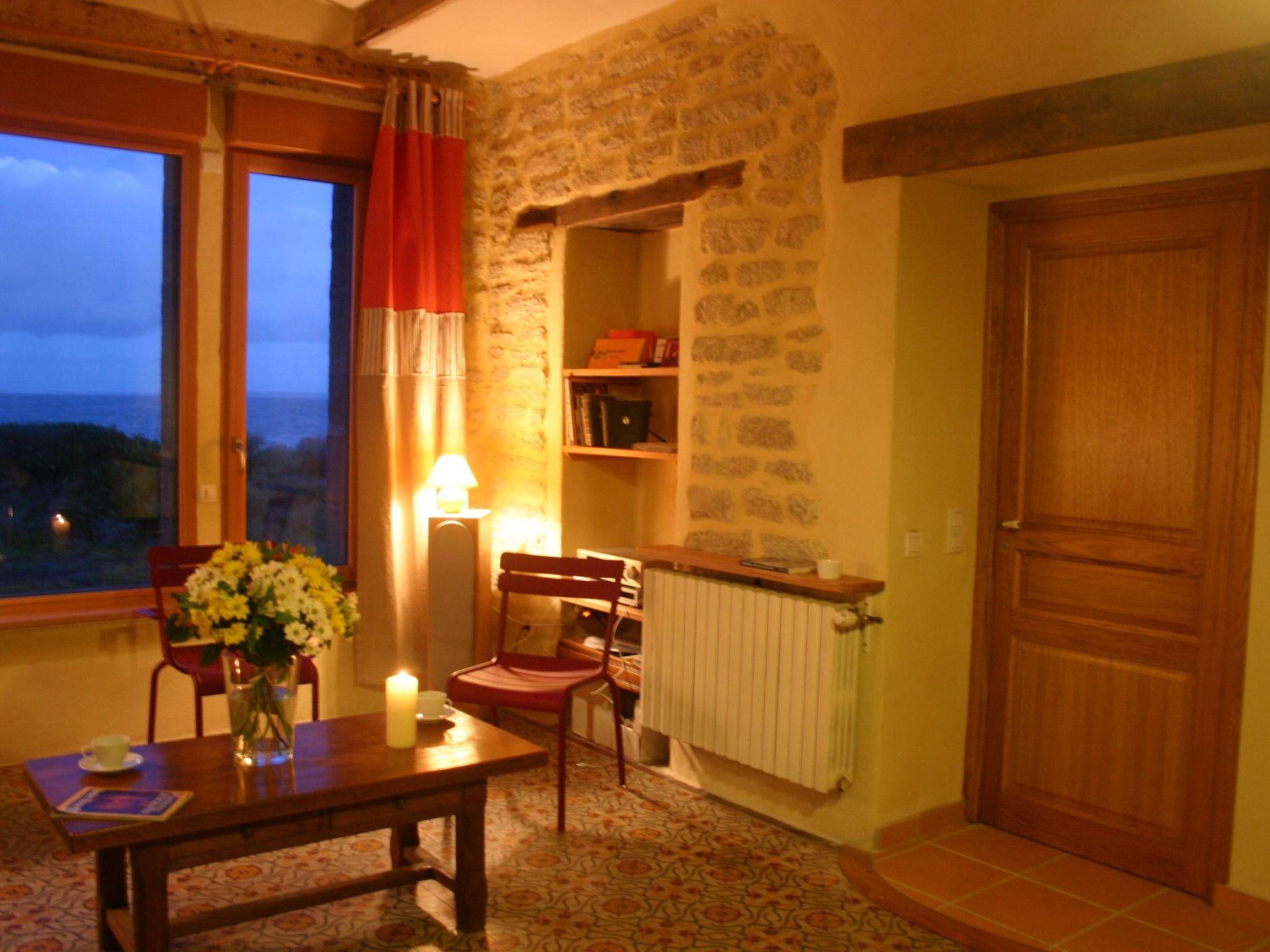The high-quality materials used in the renovation, such as lime, exposed beams and oak floors, create a bright and comfortable atmosphere. The large 32 m² living room includes a fully equipped kitchen and a sitting area with leather sofa, stereo and TV. Enjoy the magnificent view over Audierne Bay through the large bay window. This is particularly attractive at dawn, when the fishermen go out to sea. The kitchen area with dining table for two is equipped with four flame burners, dishwasher, microwave, fridge and freezer, coffee maker and toaster. Various other kitchen utensils are also available. You'll find a good night's sleep in the bedroom, with its 1.60 m-wide double bed. The bathroom, with bath and shower, is also accessible to disabled guests. There is a separate toilet.