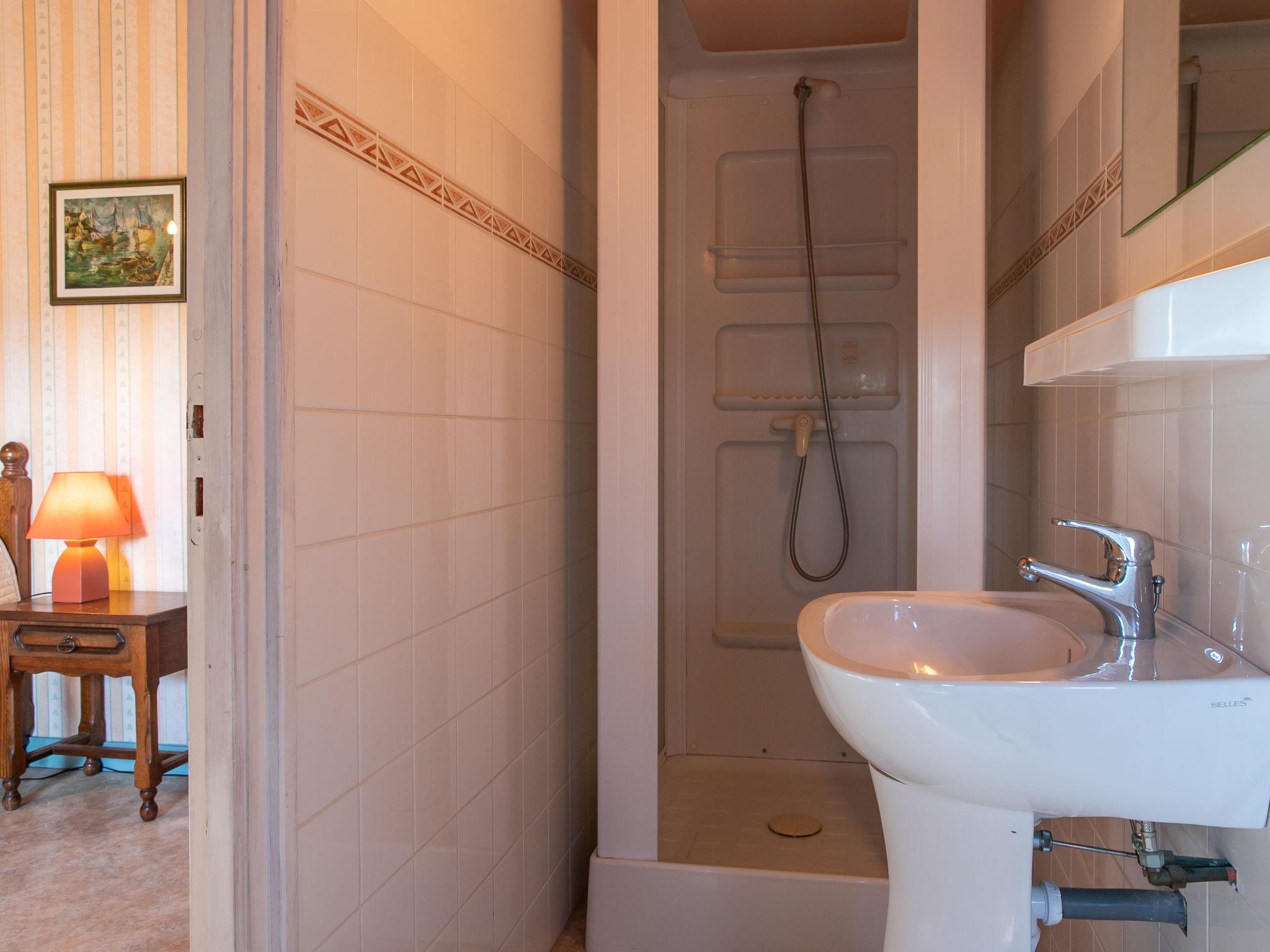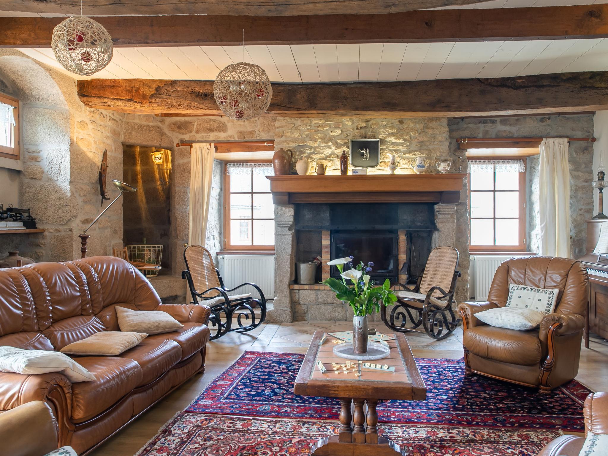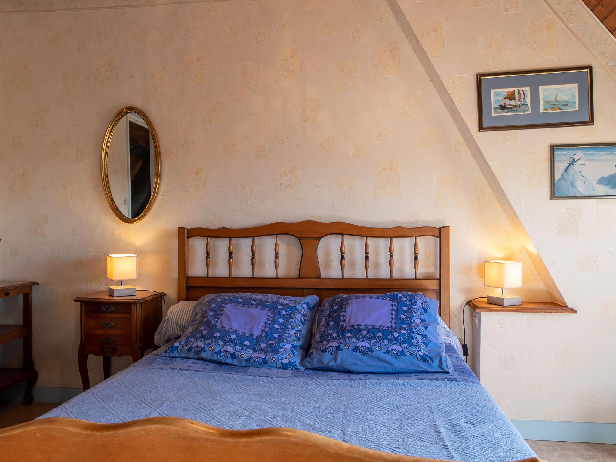 "Manoir des Halles", 4-room house 110 m2 on 2 levels, on the upper ground floor. Beautiful and rustic furnishings: upper floor: living/dining room with open-hearth fireplace, dining table, TV, international TV channels, radio, CD-player and DVD. Open kitchen (1 hot plate, oven, dishwasher, 3 gas rings, toaster, kettle, microwave, freezer, electric coffee machine) with small dining table. Sep. WC. Gas heating. 2nd upper floor: (spiral staircase), 1 room with 1 french bed (140 cm, length 190 cm), bath/WC. 2 rooms, each room with 1 french bed (140 cm, length 190 cm), shower/WC. Balcony, south facing position and west facing position. Terrace furniture, barbecue (portable), deck chairs (2). Facilities: washing machine, dryer, iron, children's high chair, baby cot. Internet (WiFi, free). Please note: non-smoking house. Maximum 1 pet/ dog allowed. If the additional bed is not reserved, the room with the single bed remains closed. 29185 000058B1