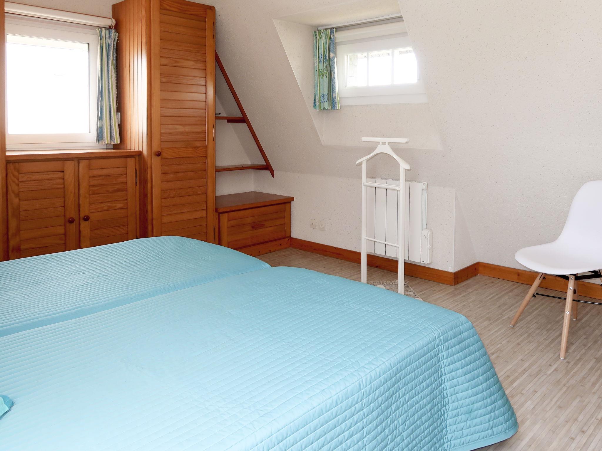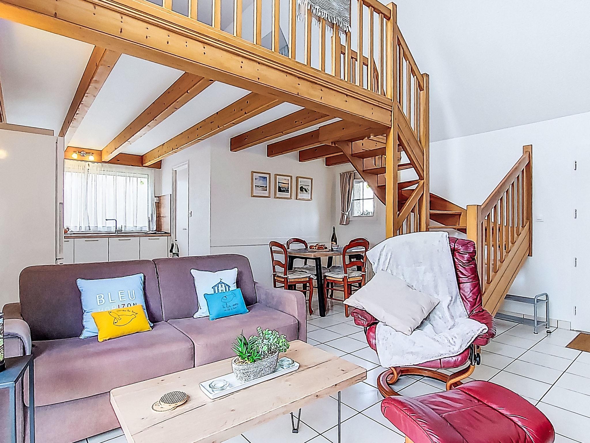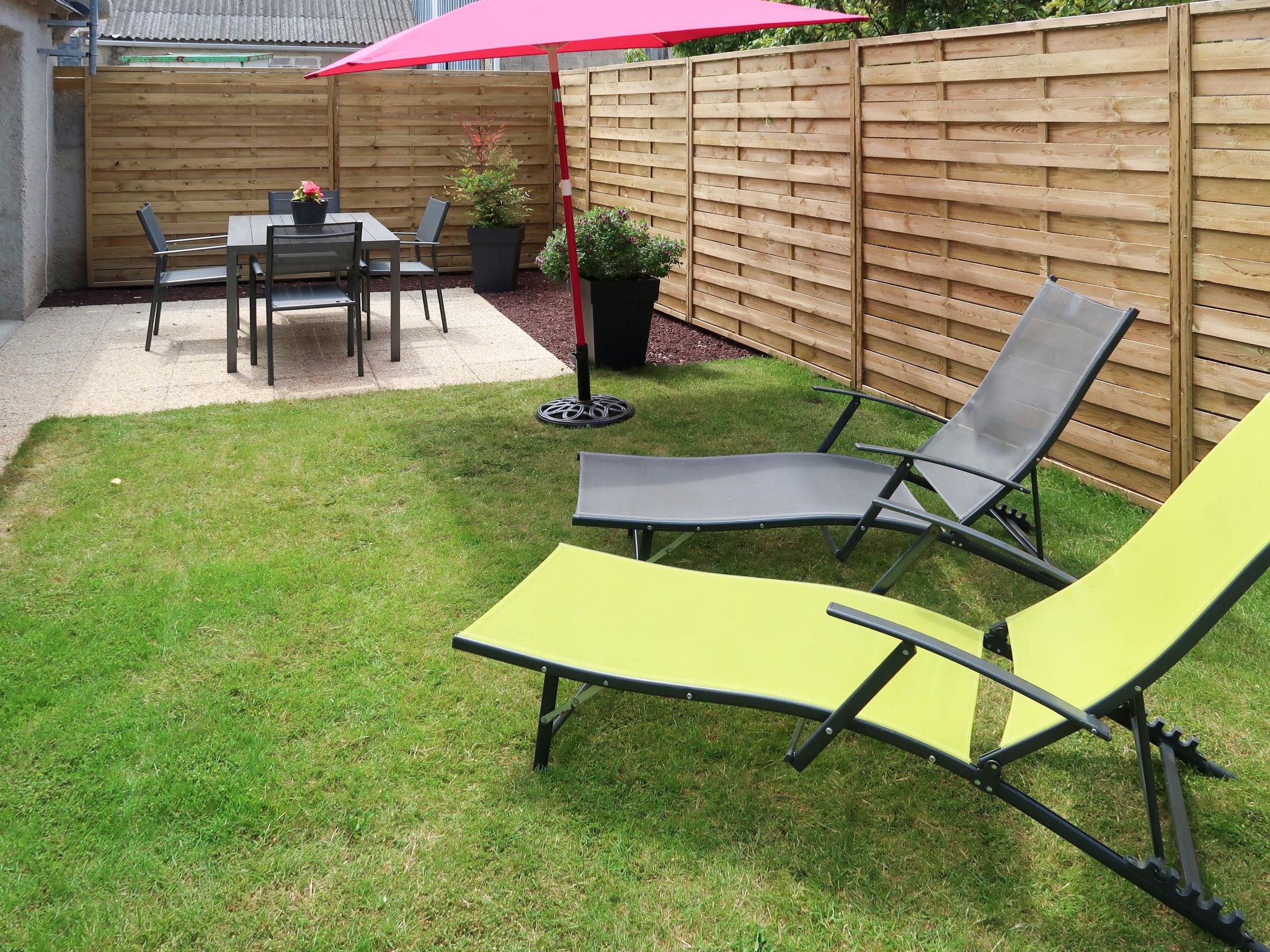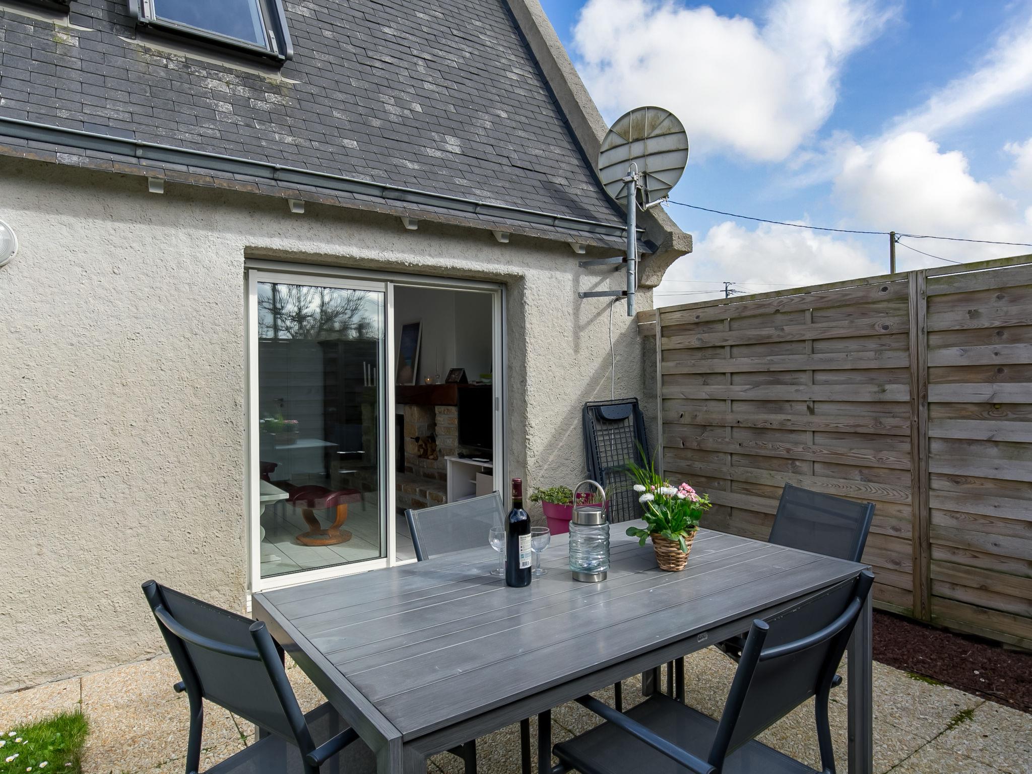 "Tal Ar Mor", 1-room house 55 m2 on 2 levels. Bright, cosy furnishings: living/dining room with Scandinavian wood stove, dining table and satellite TV. Exit to the garden. Open kitchen (oven, 3 induction hot plates, toaster, kettle, microwave, freezer, electric coffee machine). Shower/WC. Upper floor: open gallery with sloping ceilings with 2 beds (90 cm, length 200 cm). Electric heating. Terrace. Terrace furniture, barbecue (portable), deck chairs (2). Facilities: washing machine, iron, children's high chair, baby cot, hair dryer. Internet (WiFi, free). Please note: non-smoking house. Maximum 1 pet/ dog allowed. Smoke alarm. 29206 000019 HU