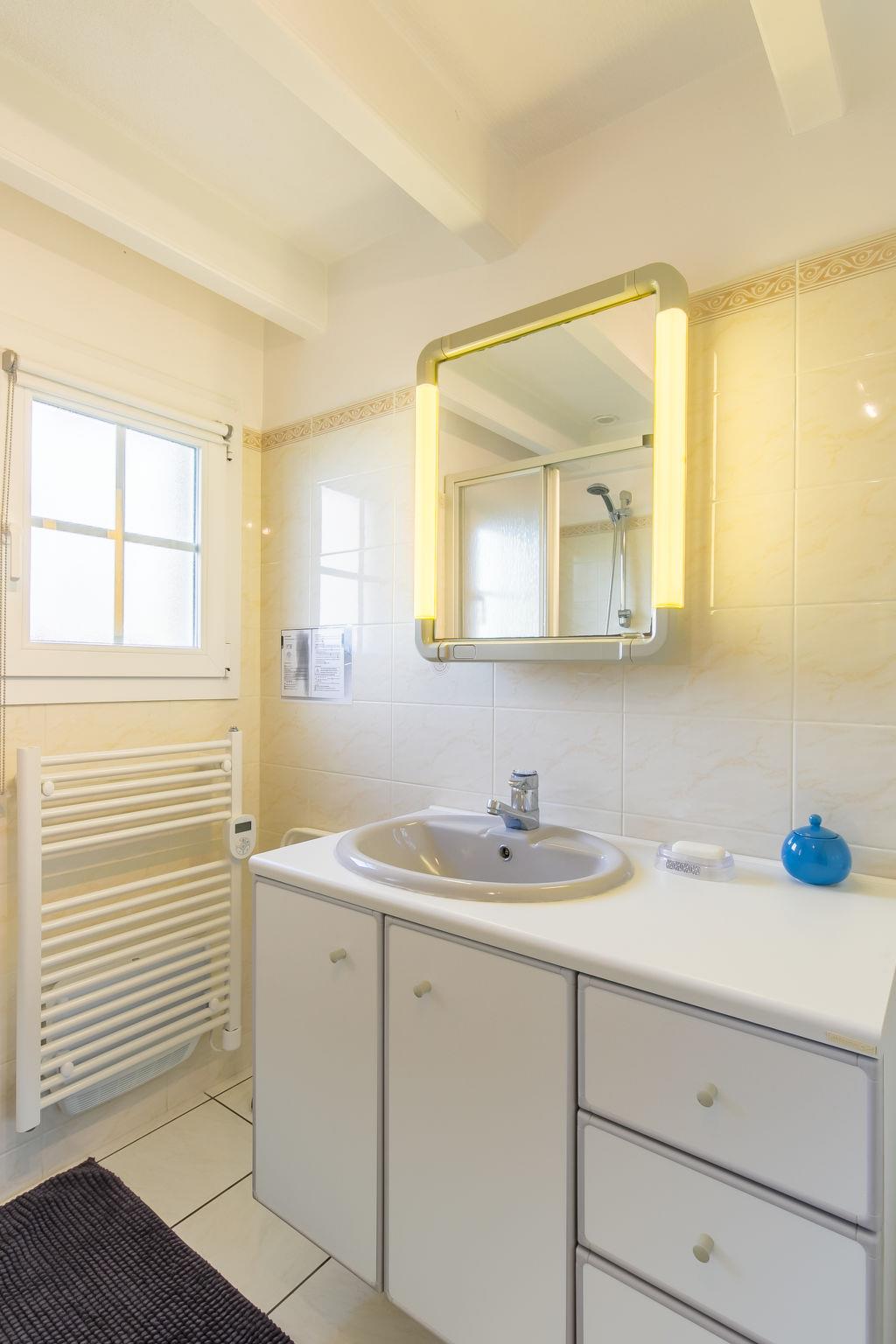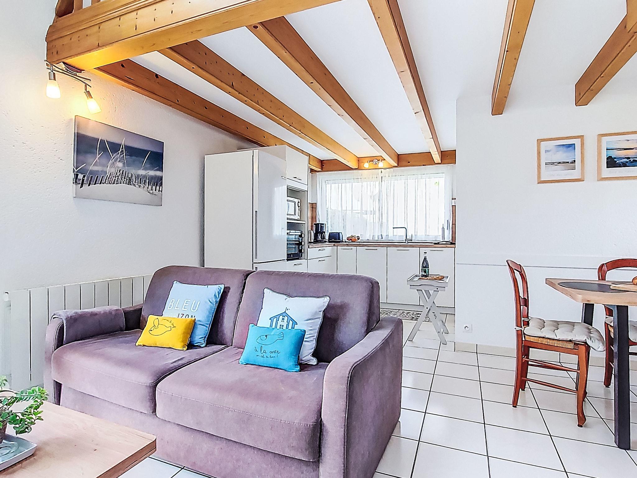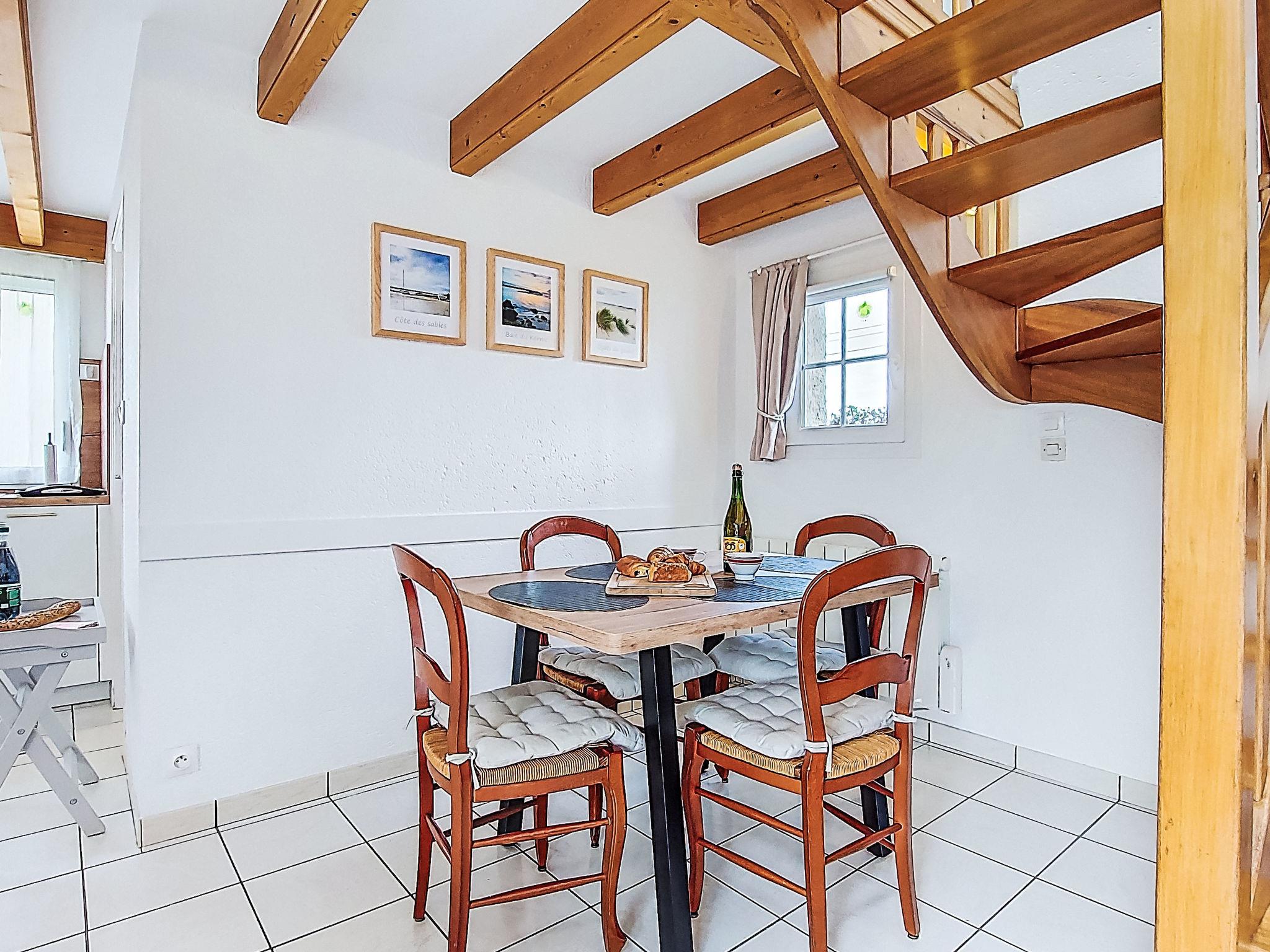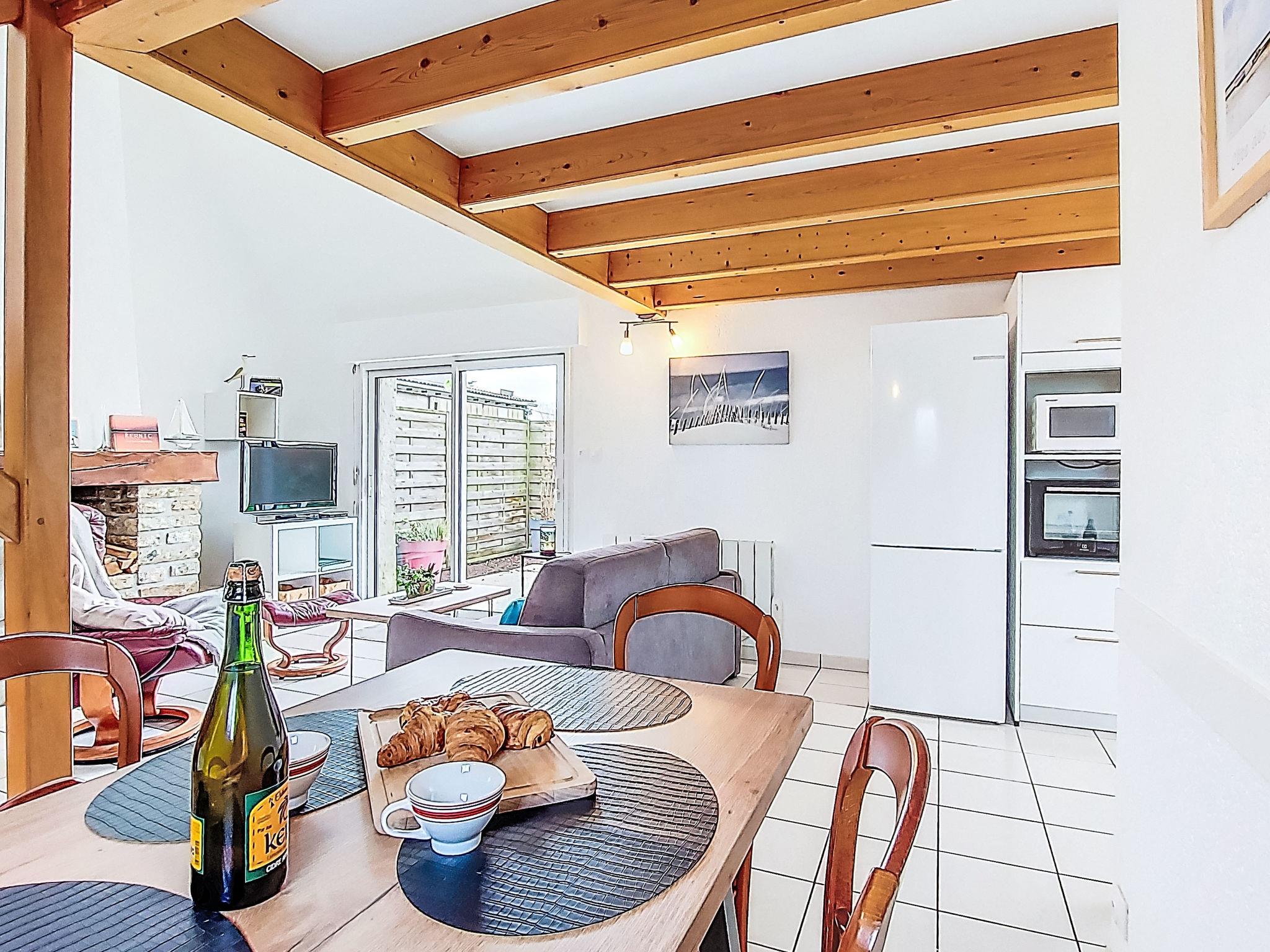"Tal Ar Mor", 1-room house 55 m2 on 2 levels. Bright, cosy furnishings: living/dining room with Scandinavian wood stove, dining table and satellite TV. Exit to the garden. Open kitchen (oven, 3 induction hot plates, toaster, kettle, microwave, freezer, electric coffee machine). Shower/WC. Upper floor: open gallery with sloping ceilings with 2 beds (90 cm, length 200 cm). Electric heating. Terrace. Terrace furniture, barbecue (portable), deck chairs (2). Facilities: washing machine, iron, children's high chair, baby cot, hair dryer. Internet (WiFi, free). Please note: non-smoking house. Maximum 1 pet/ dog allowed. Smoke alarm. 29206 000019 HU