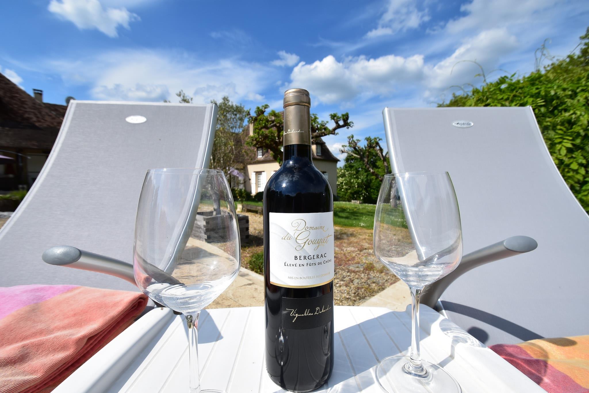 Denna mer än 200 år gamla bondgård har omvandlats till en lyxvilla som rymmer upp till 16 vuxna, men är också perfekt utrustad för flera barnfamiljer. Villan består av två sammanhängande flyglar, båda med vardagsrum och kök. Huset ligger på en 10 hektar (100 000 m²) stor egendom med skog och gräsmark, vilket erbjuder fullständig avskildhet och möjlighet till en aktiv promenad på din egen privata tomt. Du kan plocka frukt från ett av de många fruktträden och se vilda djur i din trädgård. Om du föredrar att njuta av ett glas vin på den soliga terrassen är det naturligtvis också möjligt. Dessutom är denna villa utrustad med all lyx. Till exempel har du en stor pool med en grund (1,0 m) och en djup (2,0 m) del, olika sittgrupper och solstolar i den vackra trädgården, en stor grill och en jeu-de-boule-bana. Barnen behöver inte heller ha tråkigt, för bredvid poolen finns det gott om leksaker, ett pingisbord och en oändlig trädgård att spela fotboll i. Den vackra medeltida byn Sainte-Foy-la-Grande ligger 5 minuters bilresa bort. Den muromgärdade byn grundades 1255 vid Dordognes strand och har sedan dess varit värd för en stor marknad varje lördag där man säljer färska lokala produkter. Dordognefloden är idealisk för en mängd olika vattensporter, inklusive paddling, båtturer och simning. Villan ligger 30 minuters bilresa från Saint-Émilion och Bergerac, omgiven av oändliga vinslott, varav de flesta anordnar roliga vinprovningar.